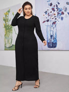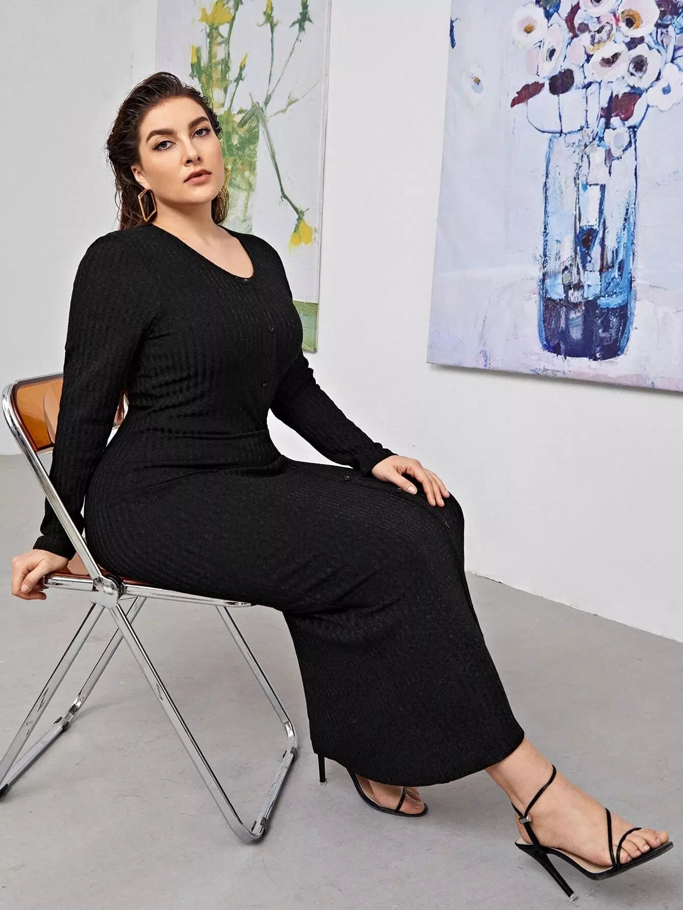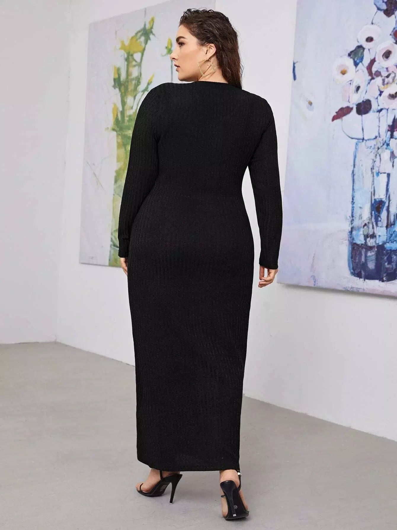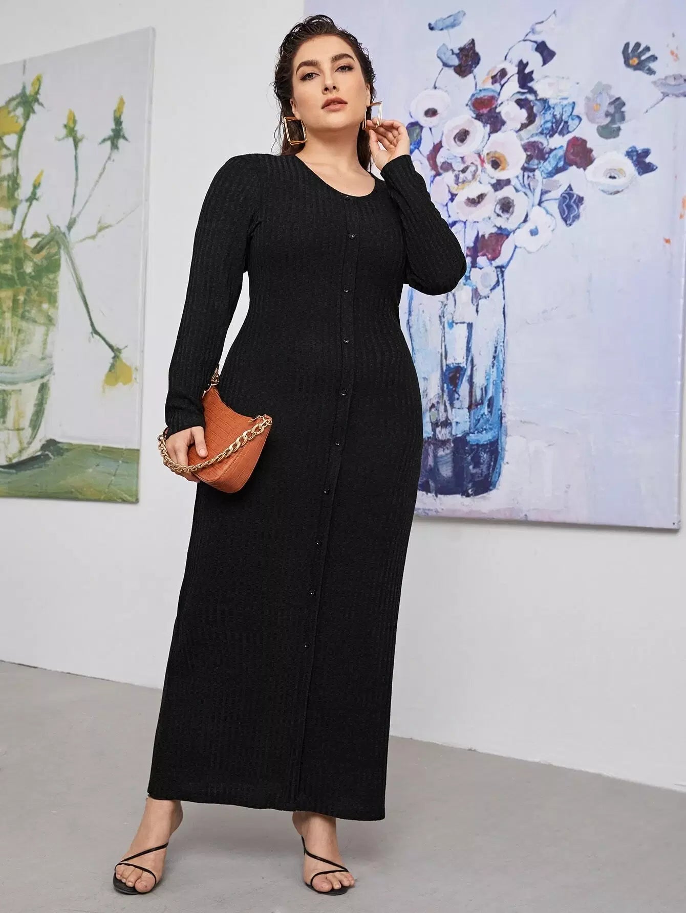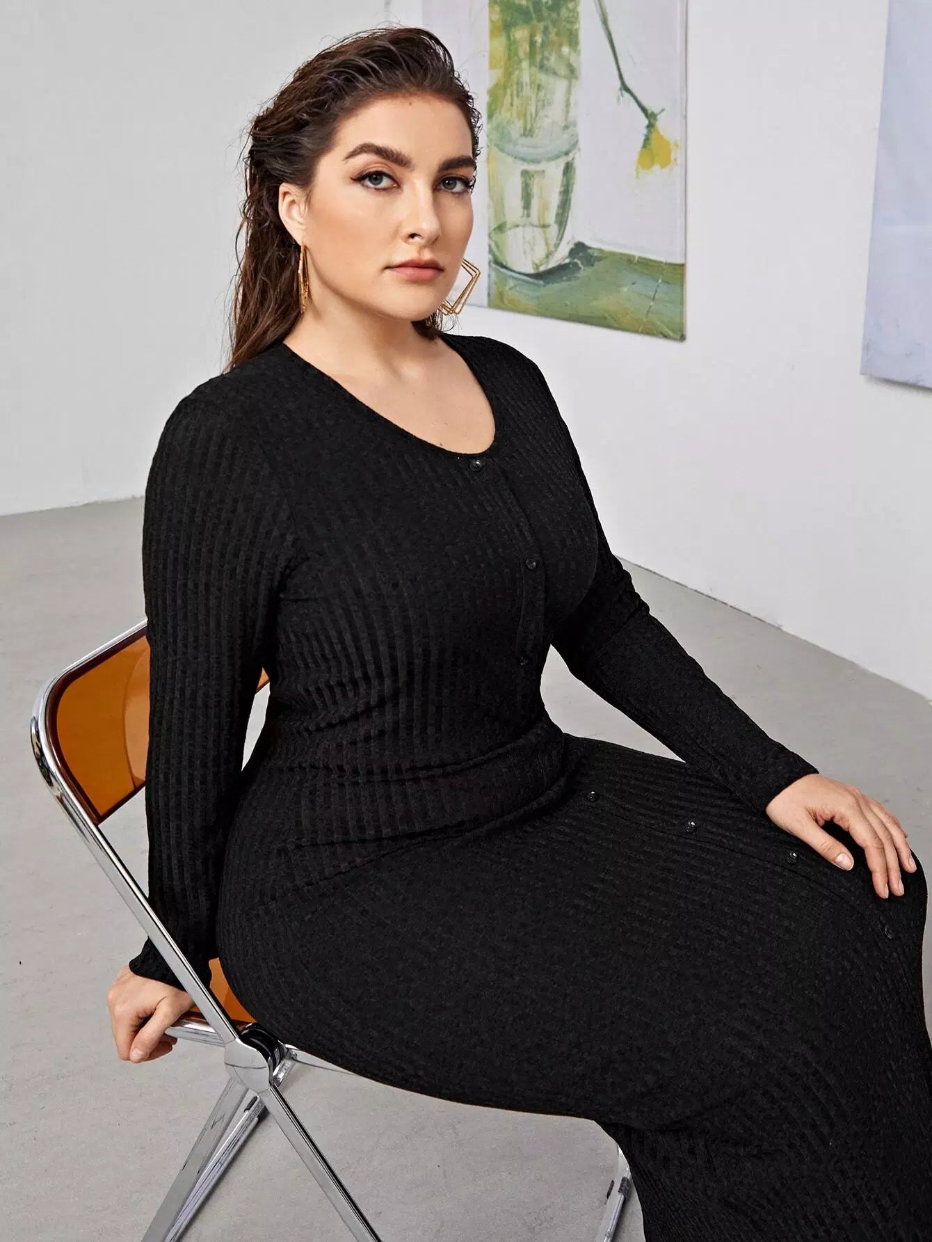 فستان ضيق محبوك بأزرار أمامية سادة بأزرار أمامية زائد