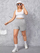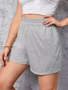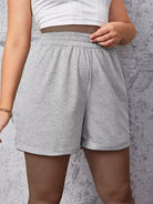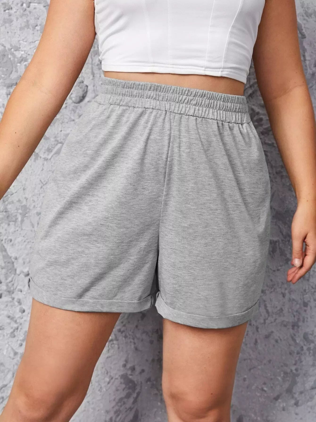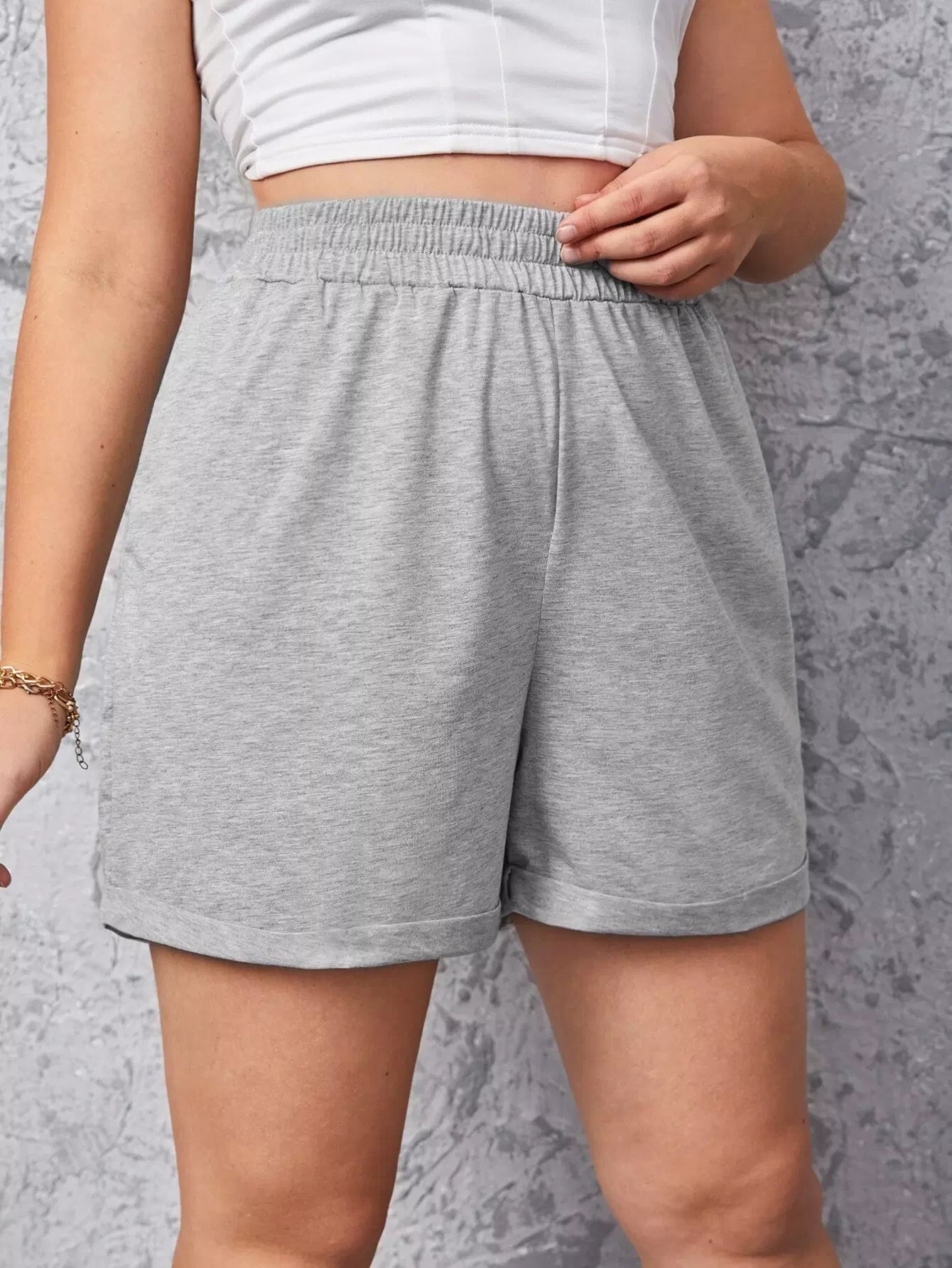 شورت قصير بخصر مطاطي مستقيم وخصر مستقيم سادة بلاس