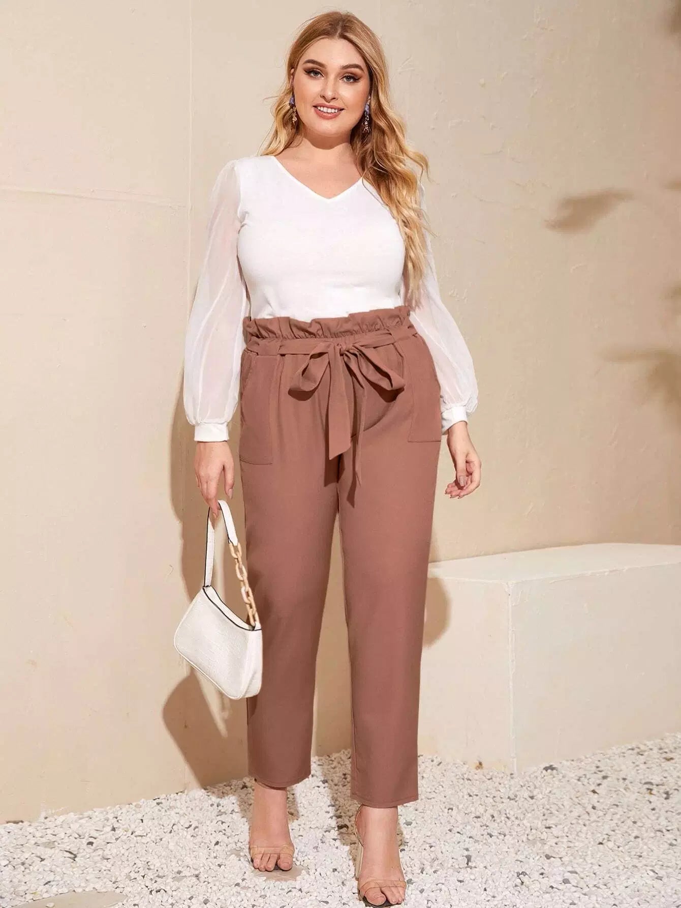 بالإضافة إلى سروال الخصر ذو الحقيبة الورقية الصلبة بدون حزام
