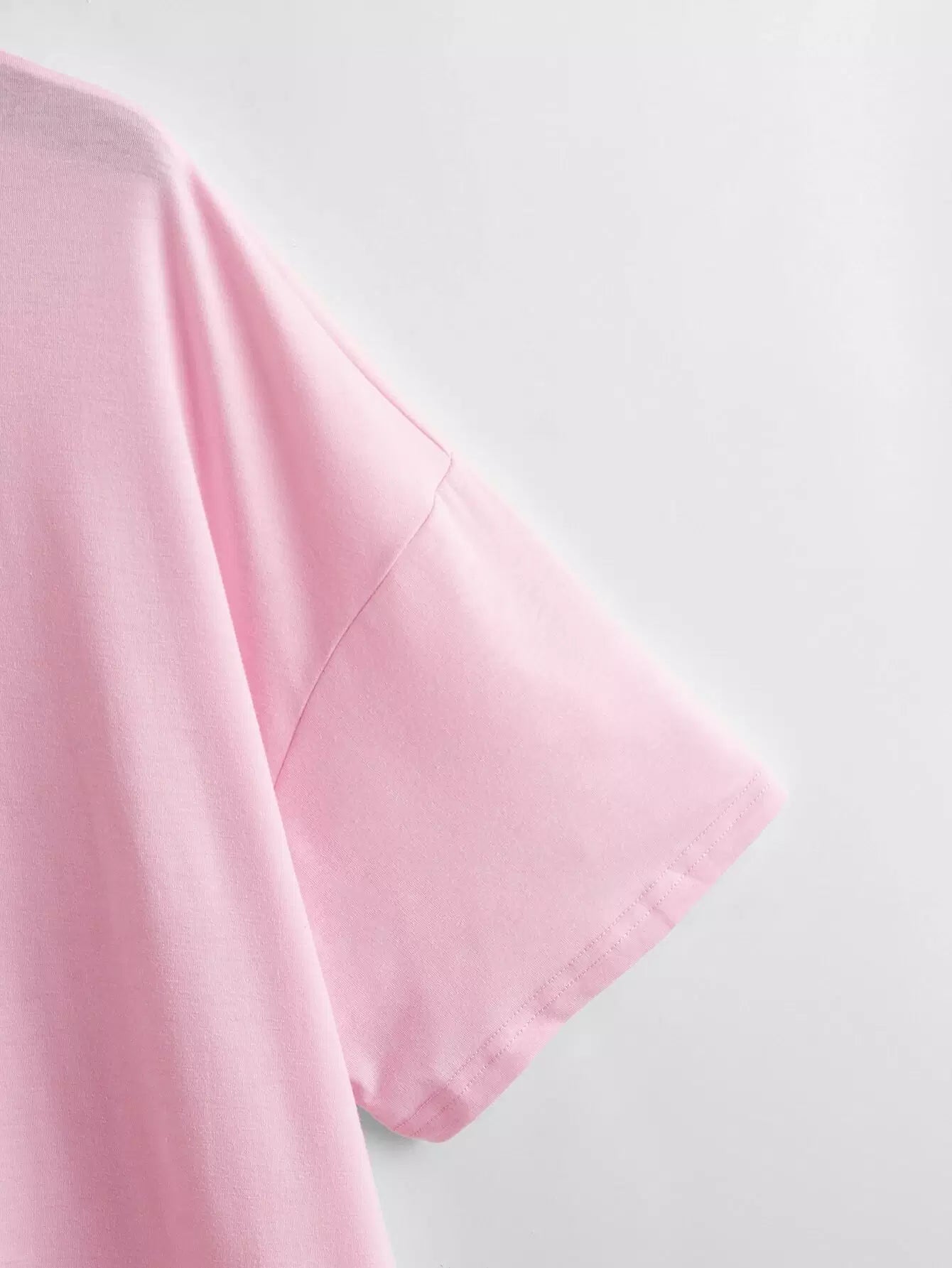 تي شيرت برقبة مستديرة منسدلة الكتفين برقبة مستديرة منسدلة