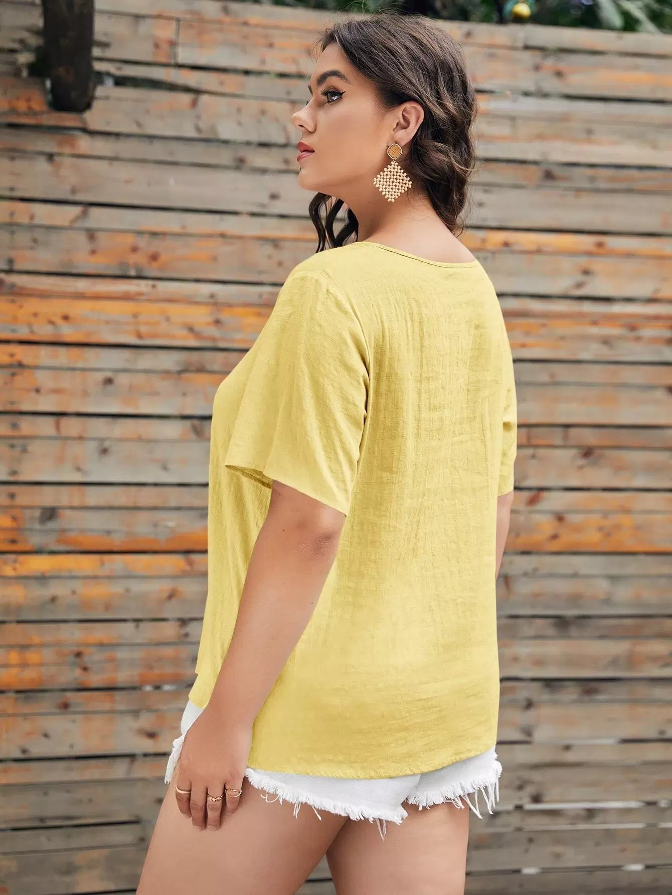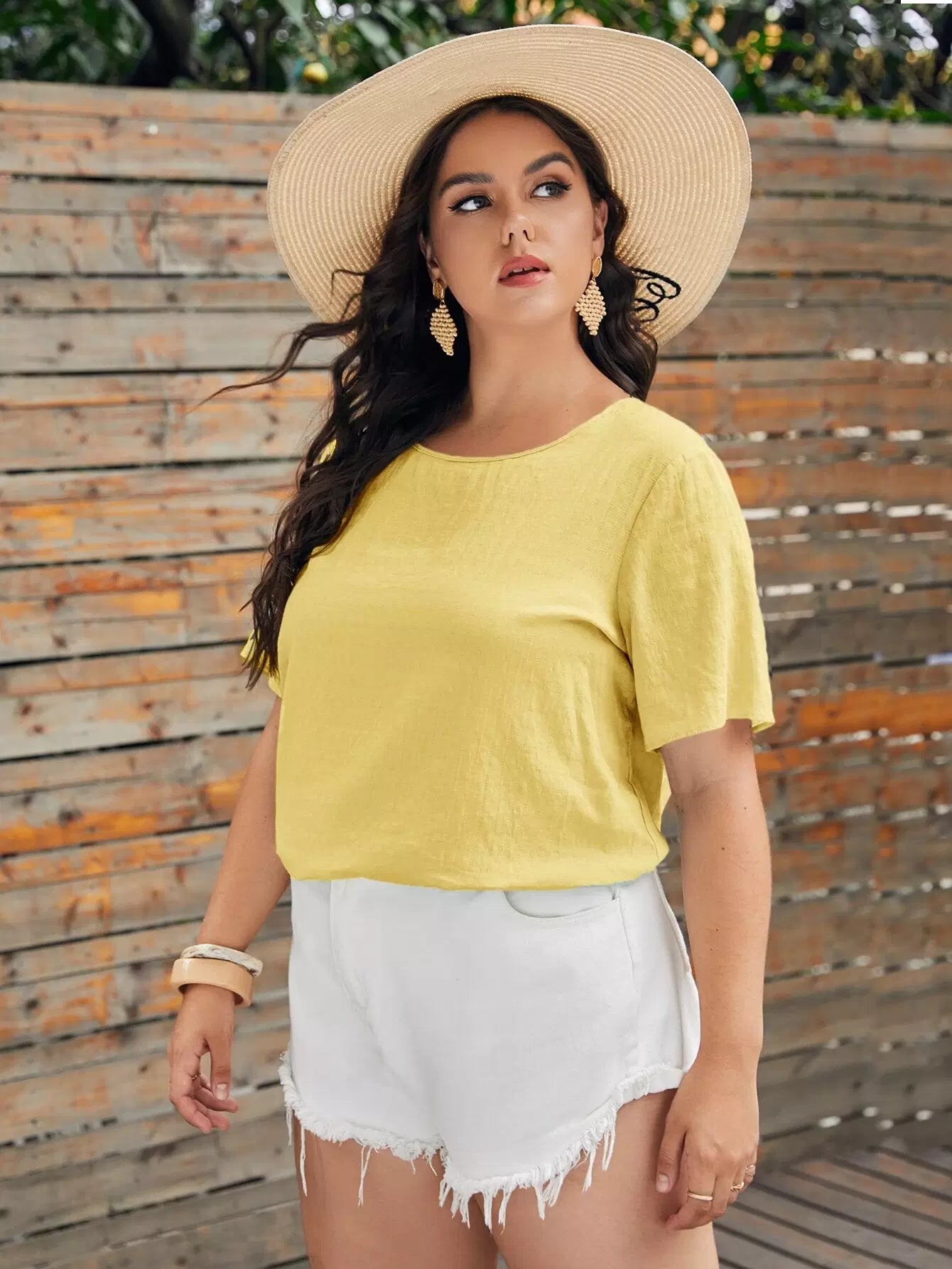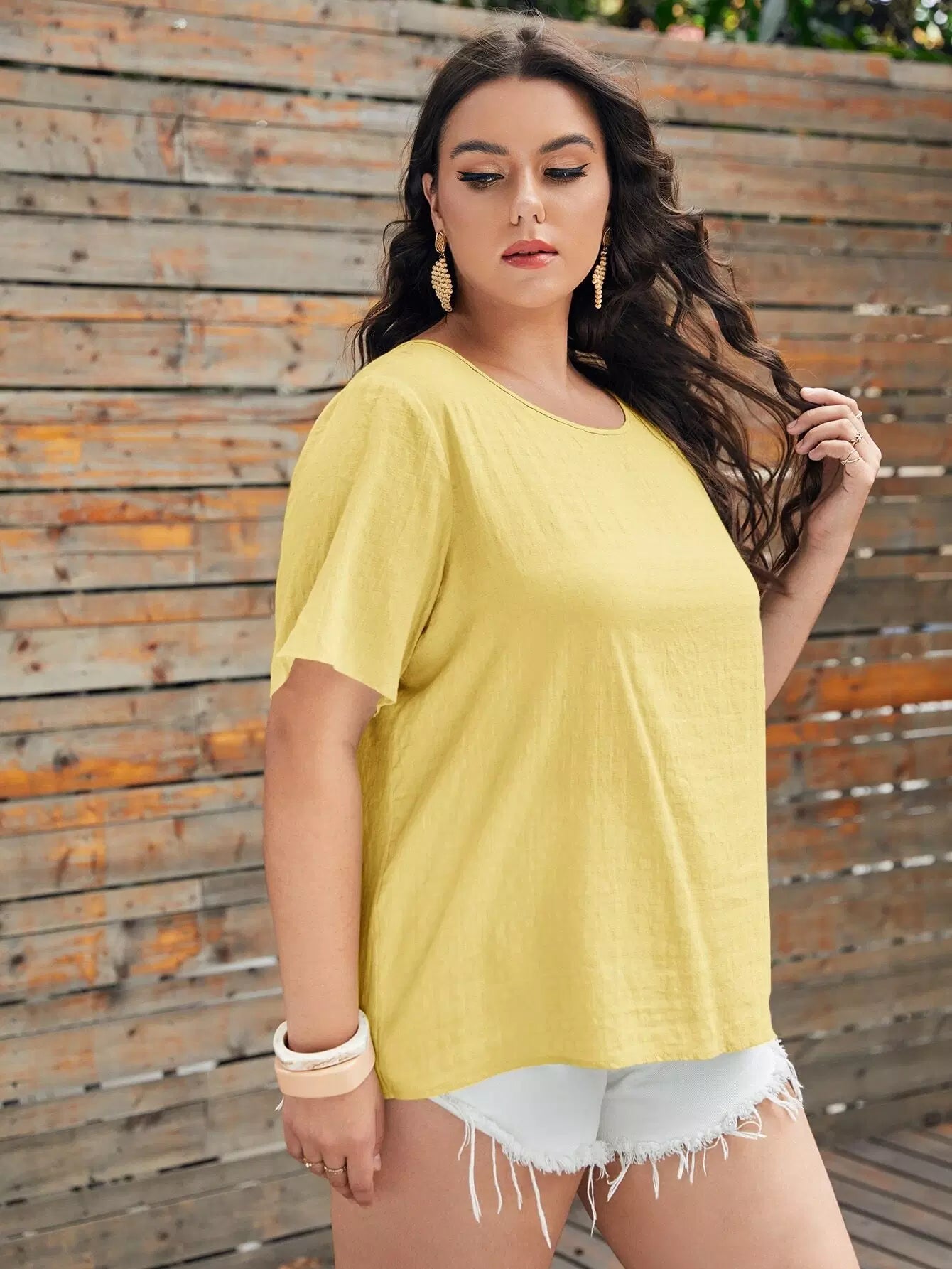 بلوزة برقبة دائرية مستديرة سادة بلس