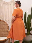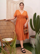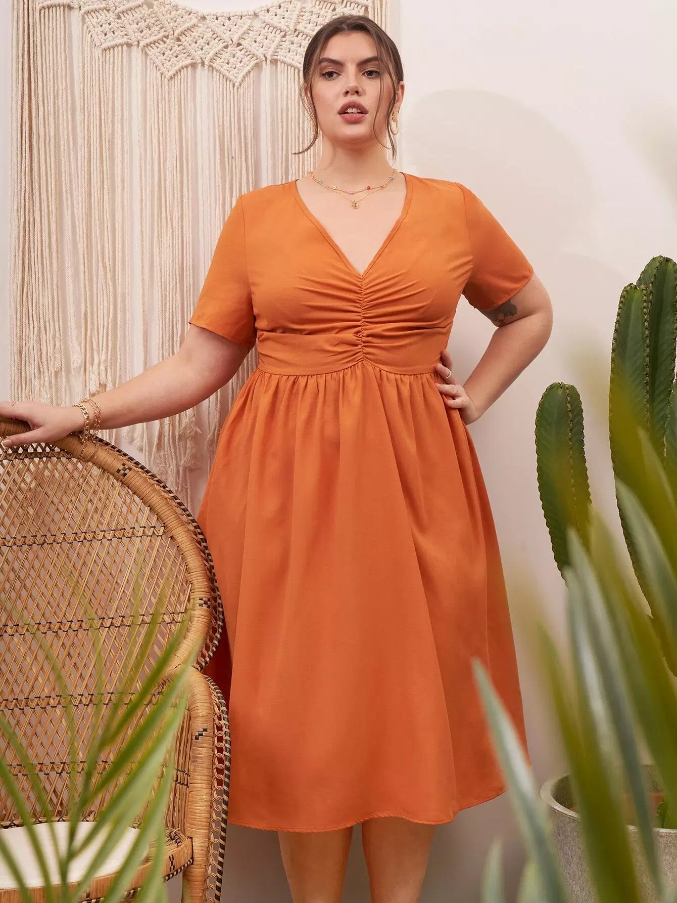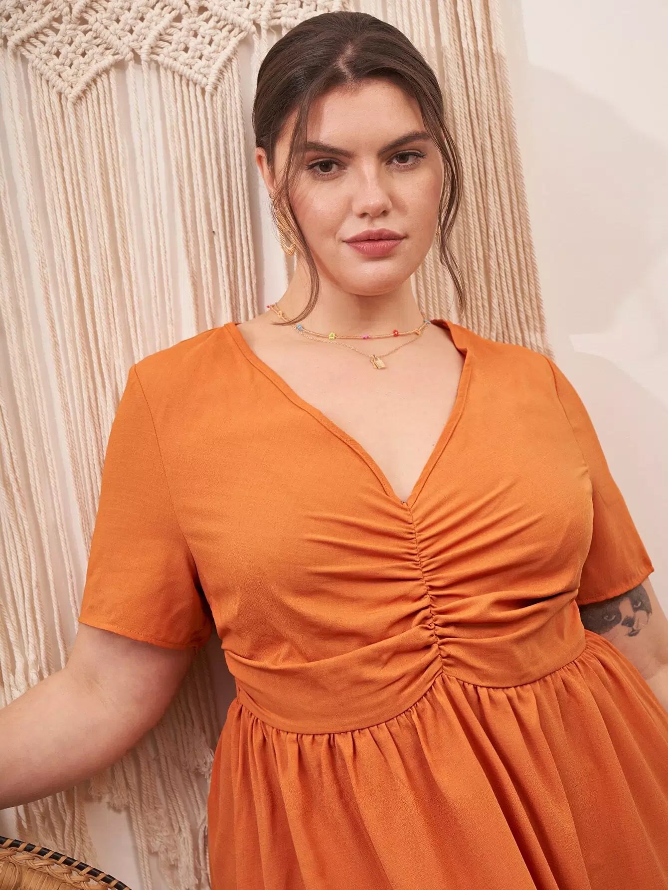 فستان مكشكش ذو تفاصيل مكشكشة سادة بلس