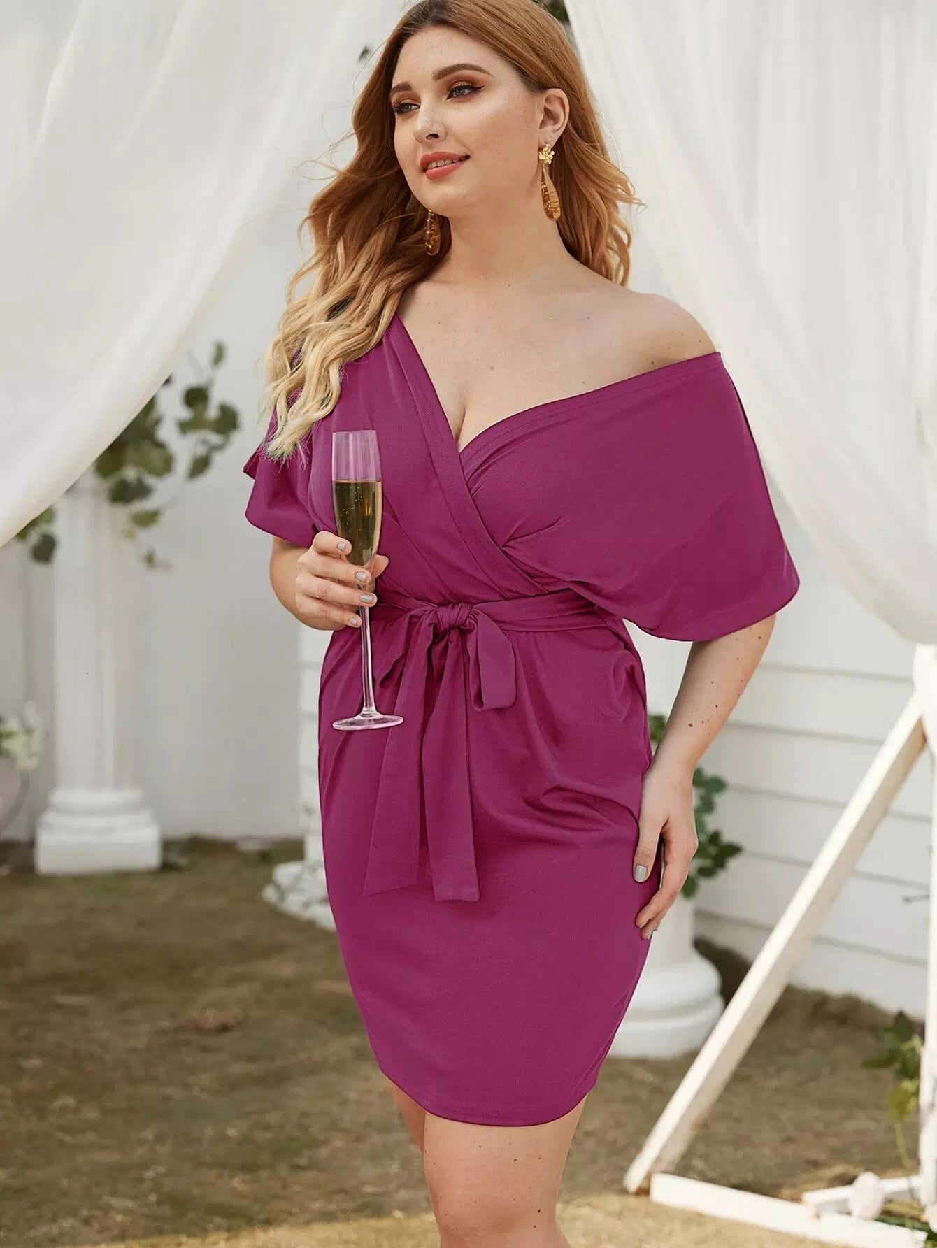 بالإضافة إلى فستان بياقة سفلية صلبة بدون حزام