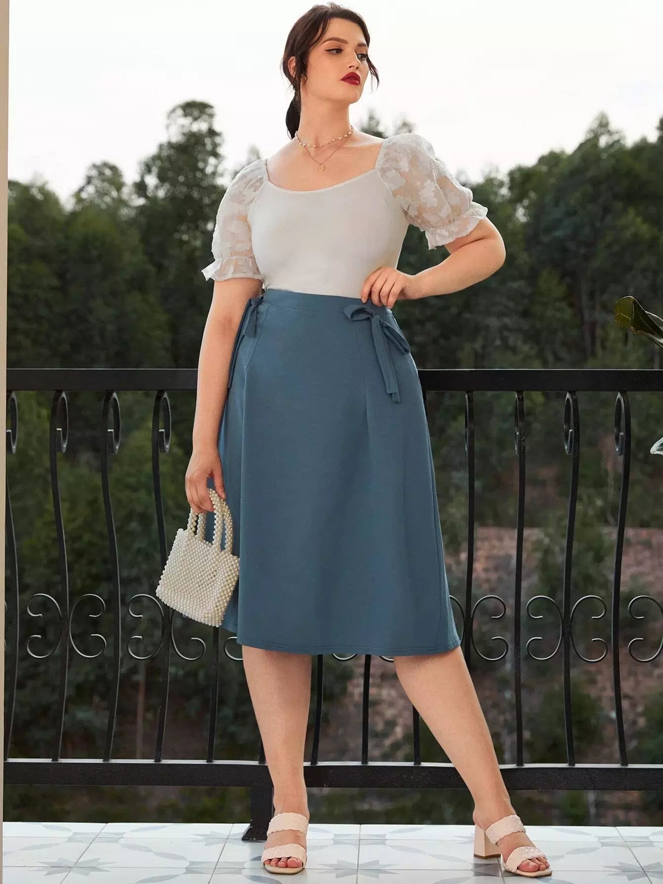 تنورة جانبية بربطة عنق سادة بلاس سادة
