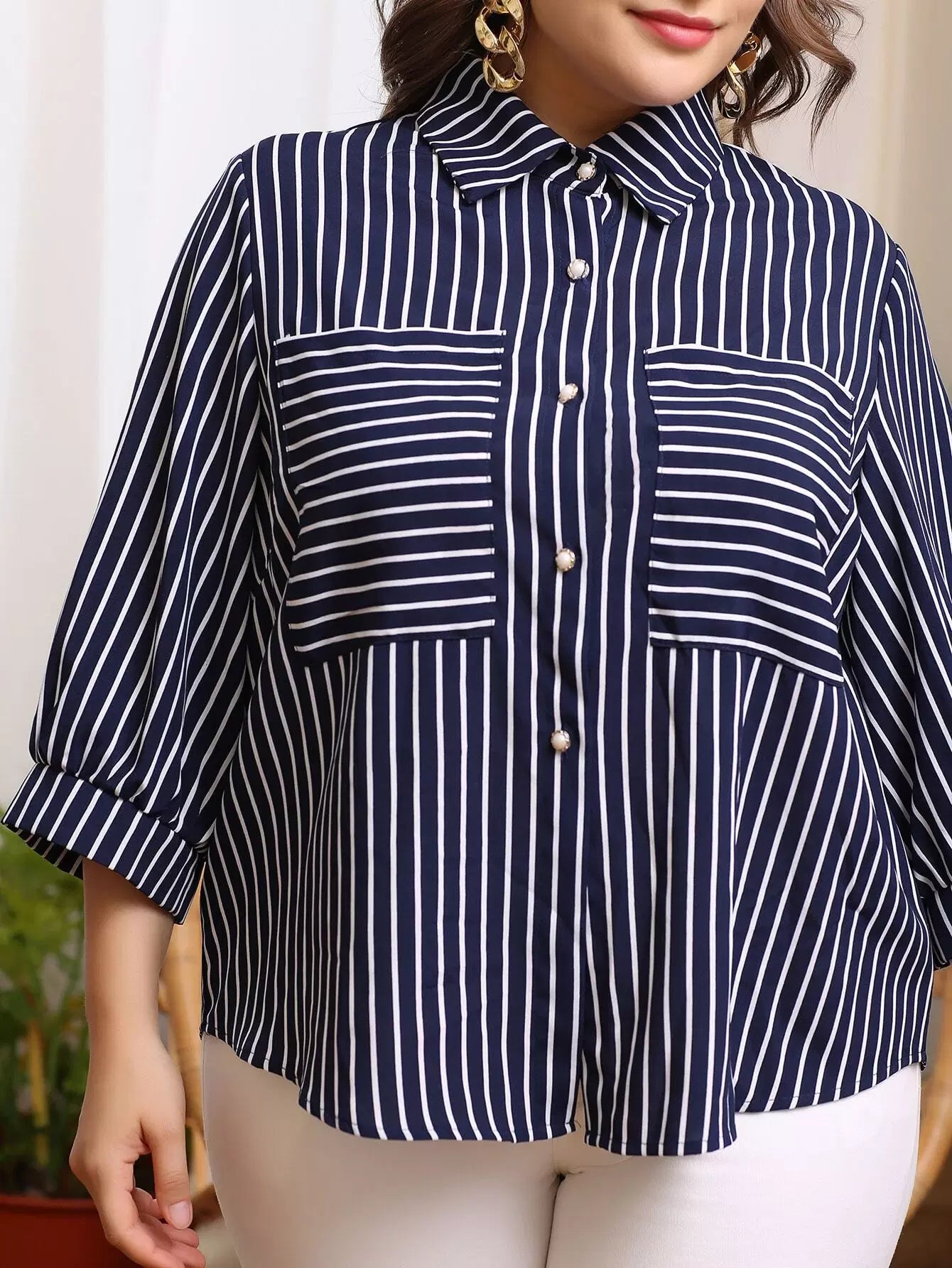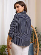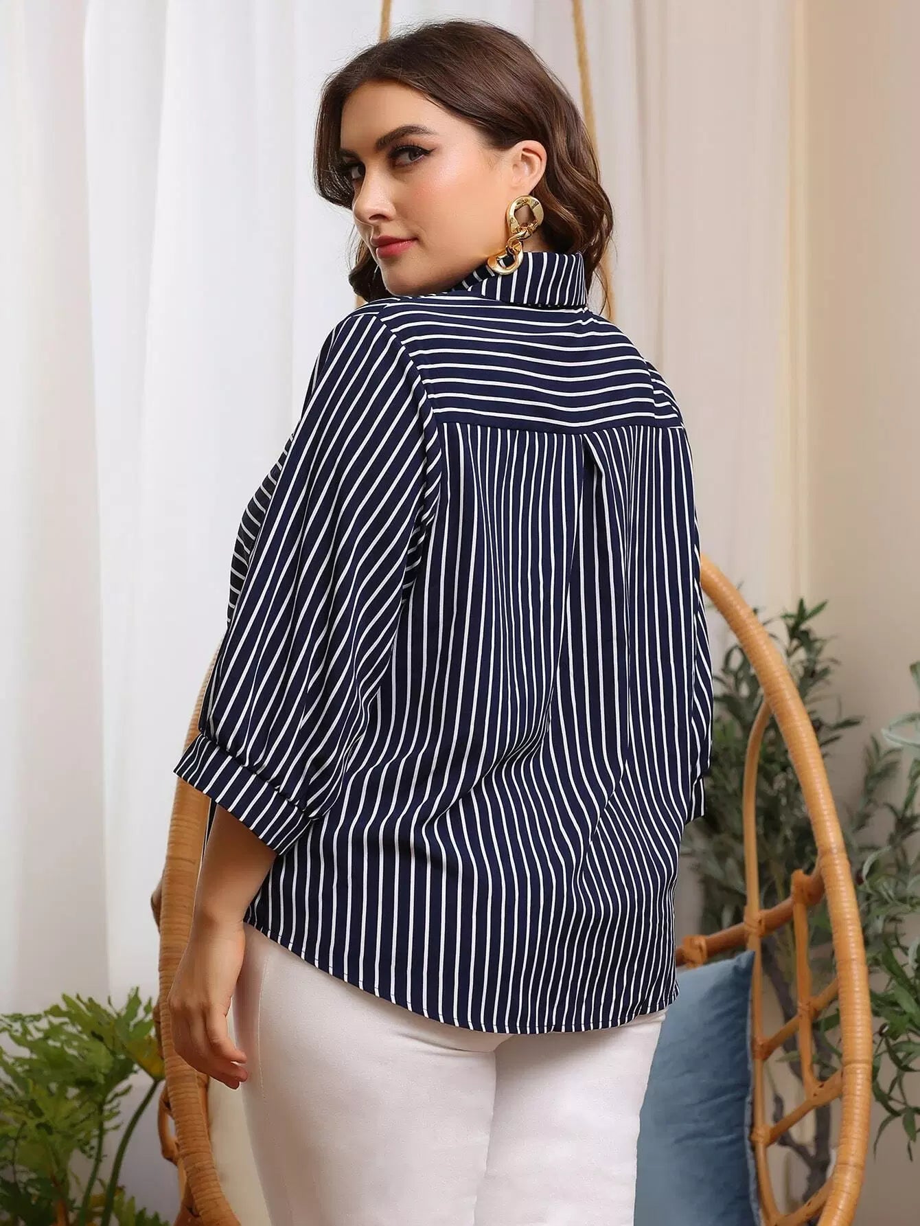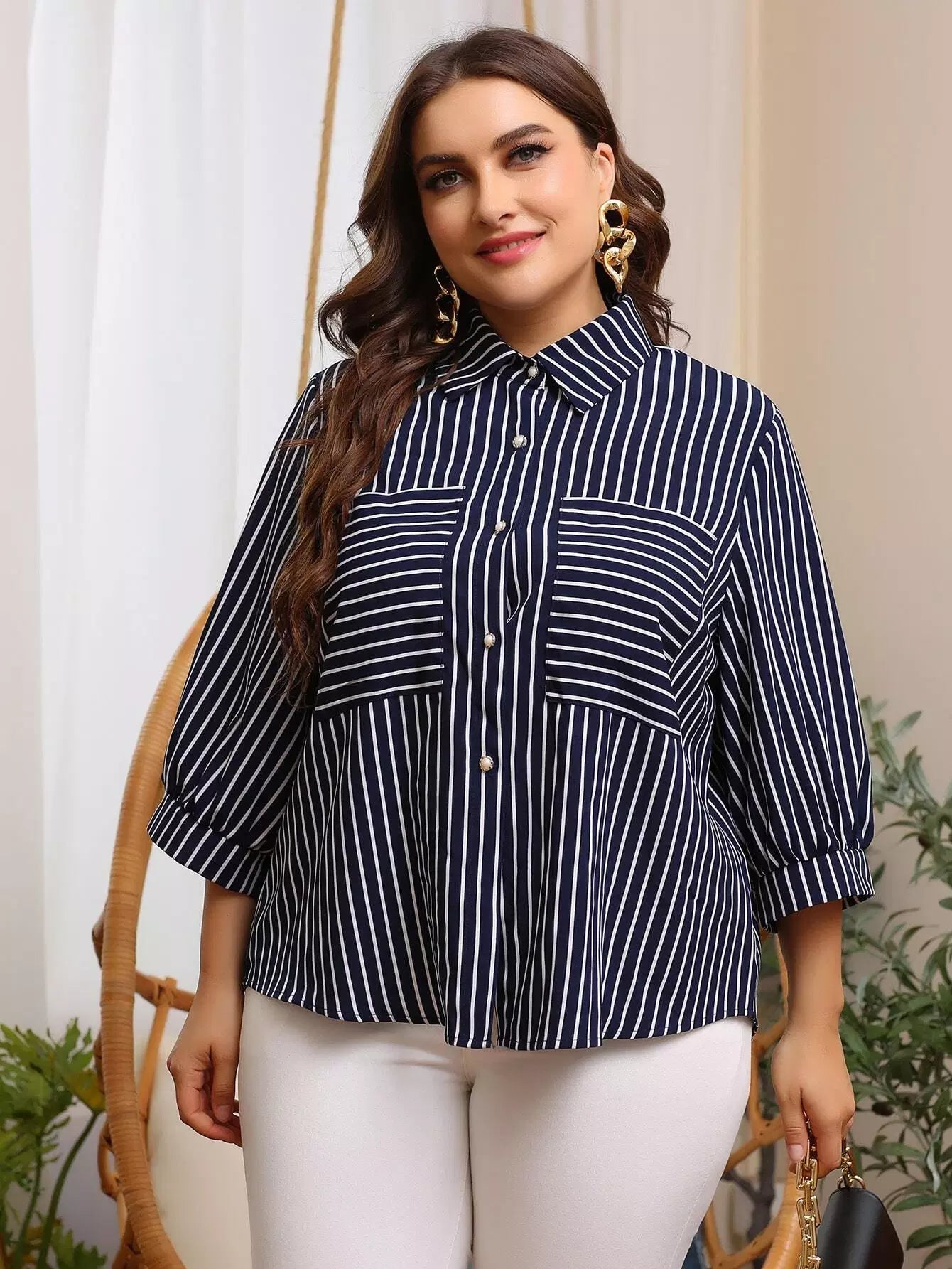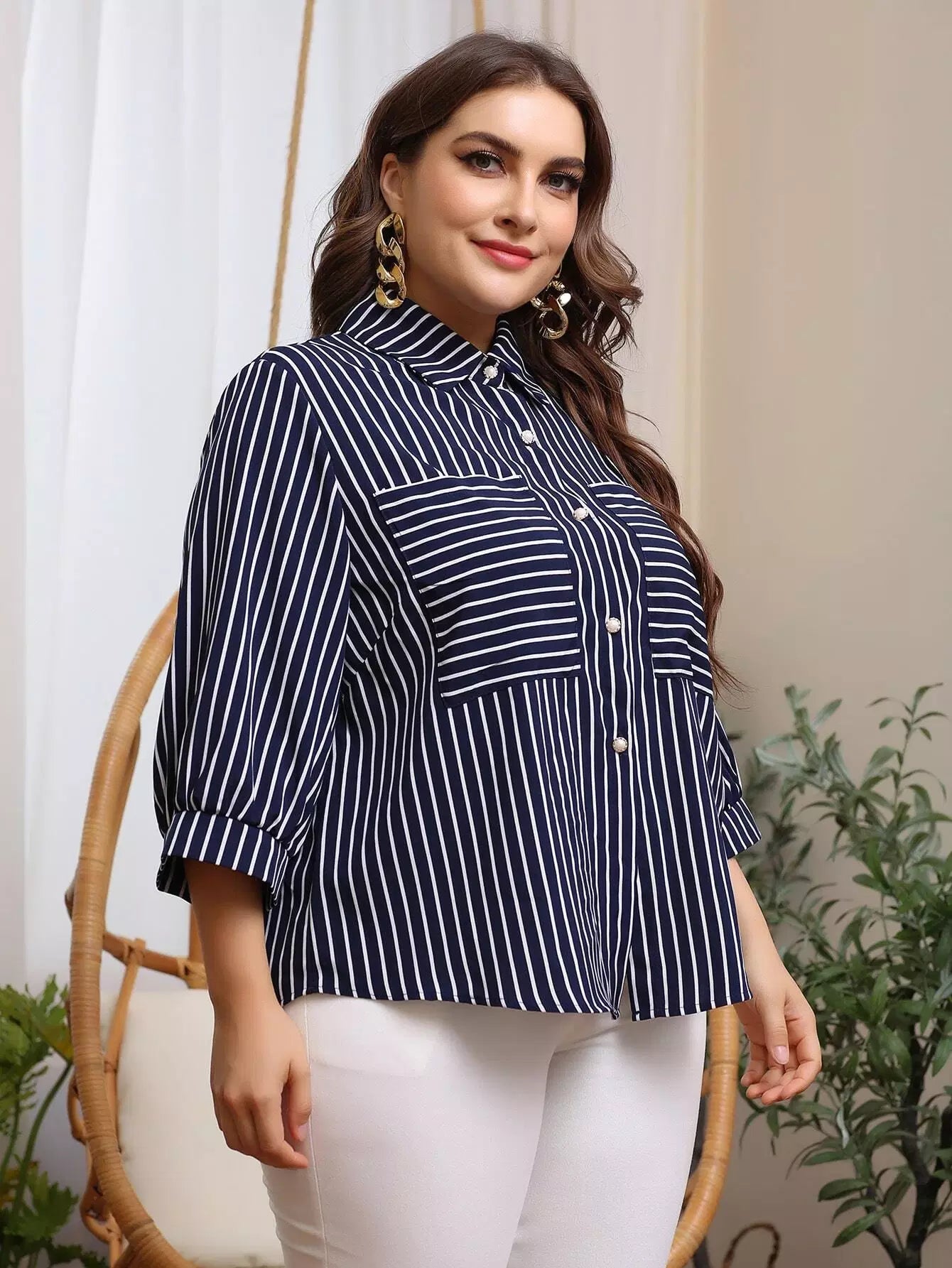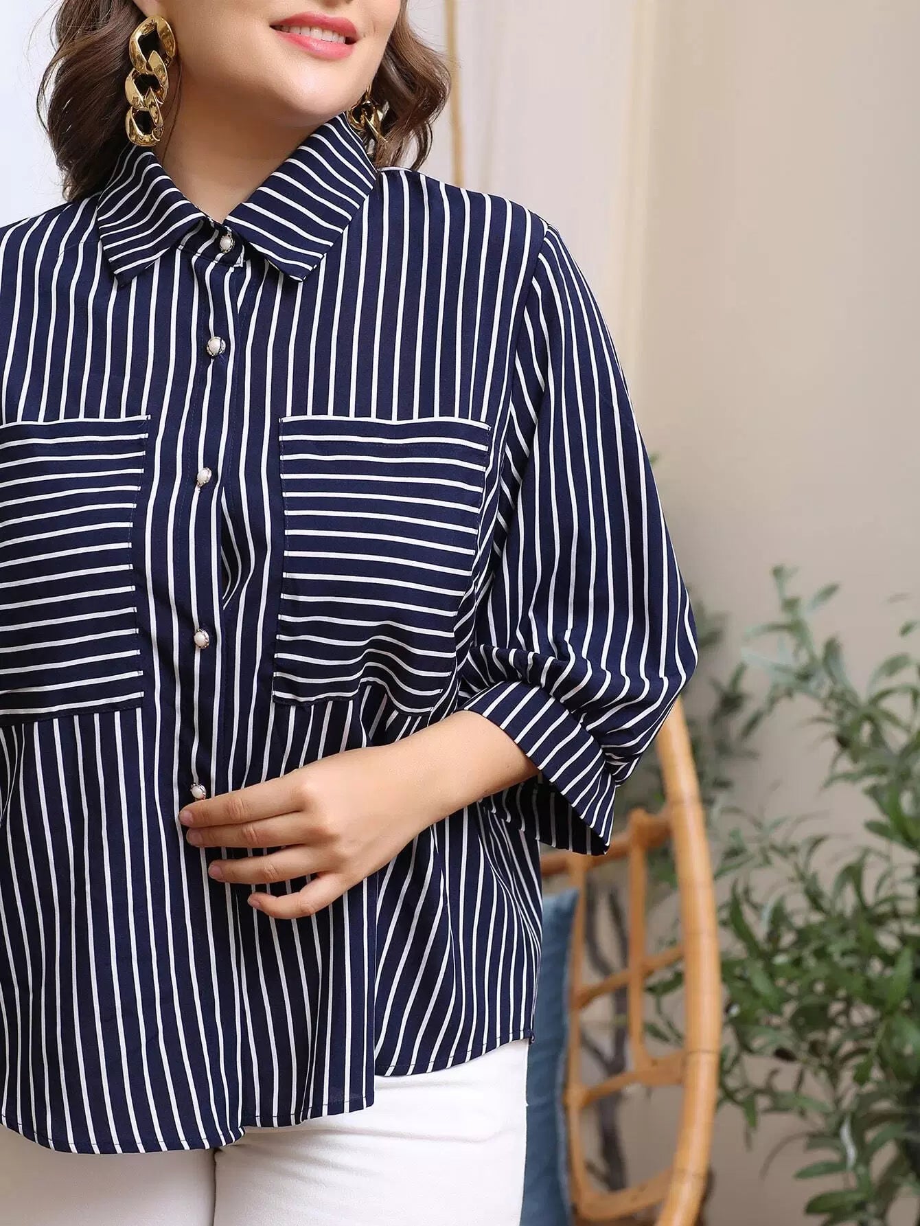 قميص مخطط بأزرار أمامي بأزرار زائد