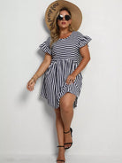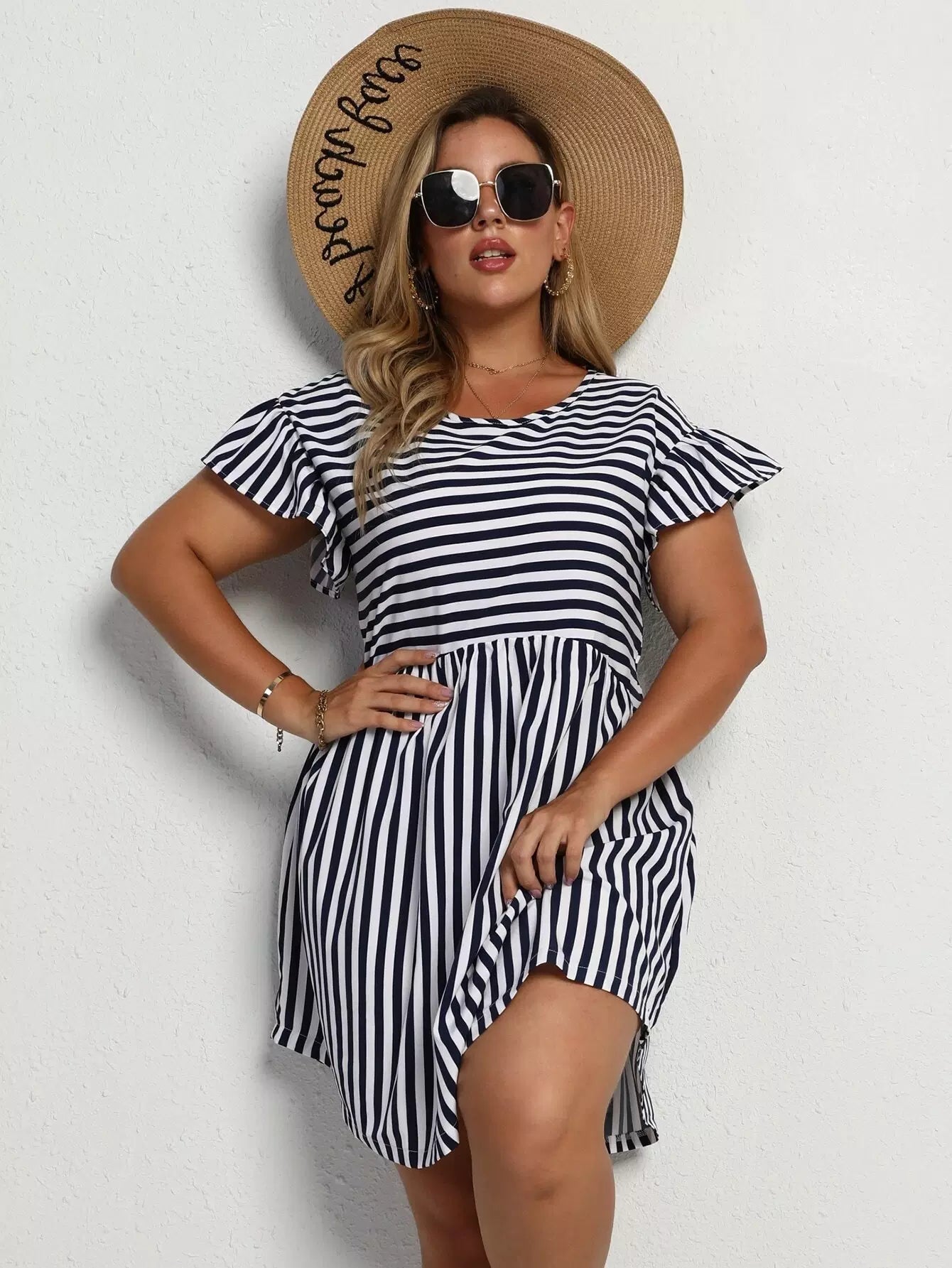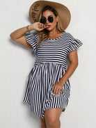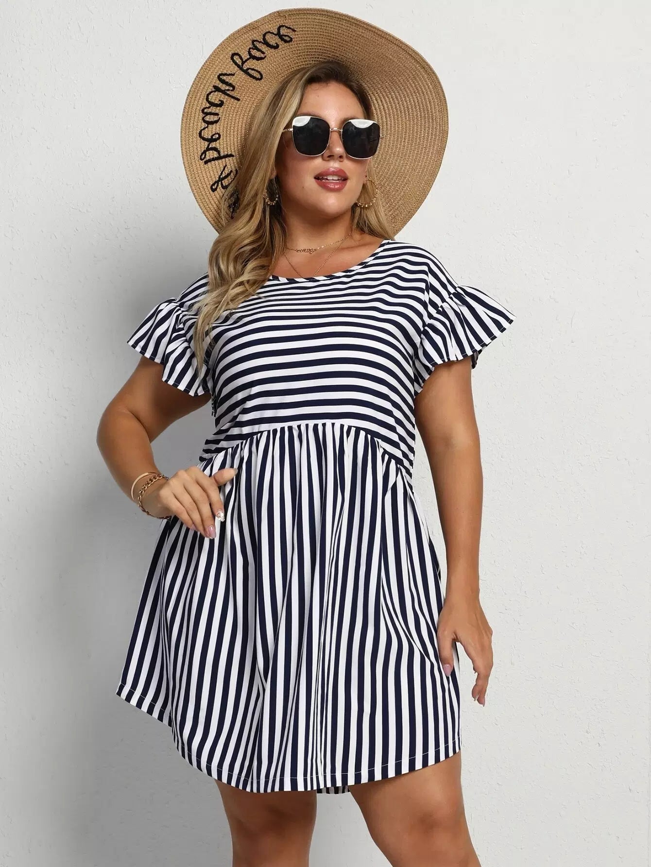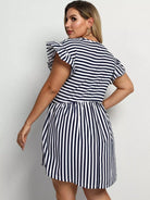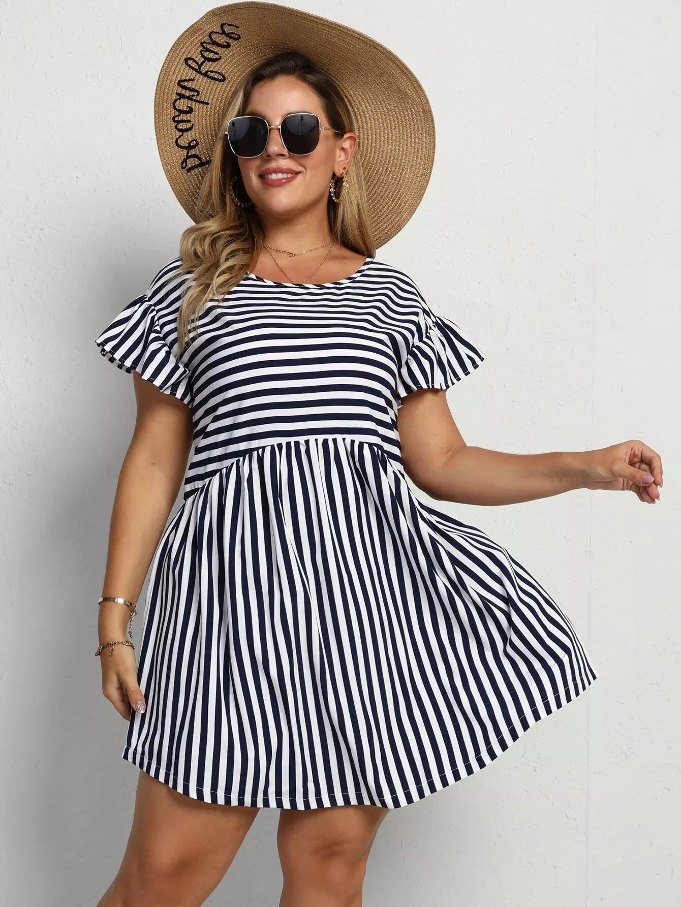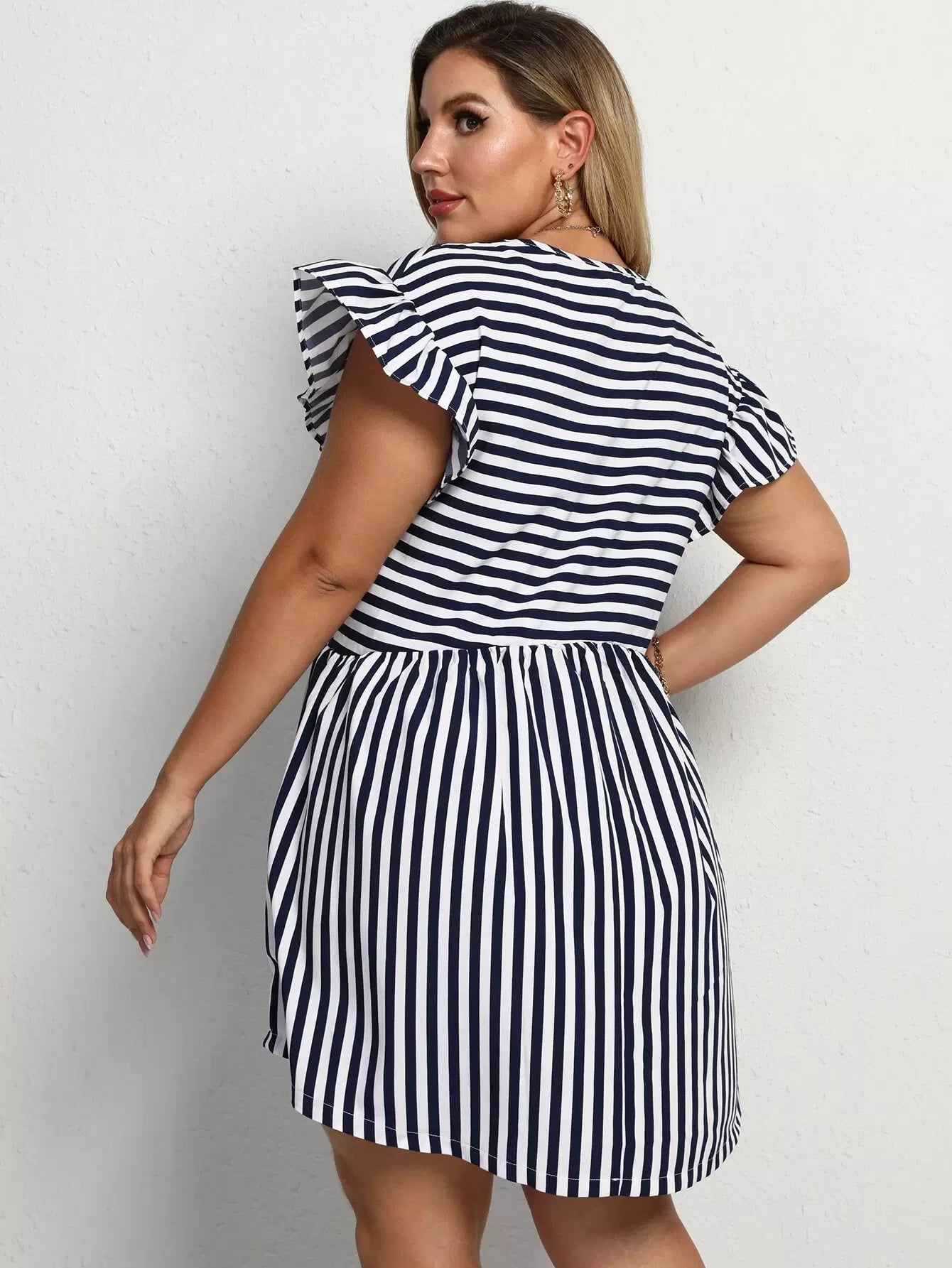 فستان سموك بأكمام فراشة بأكمام مخططة زائد