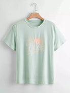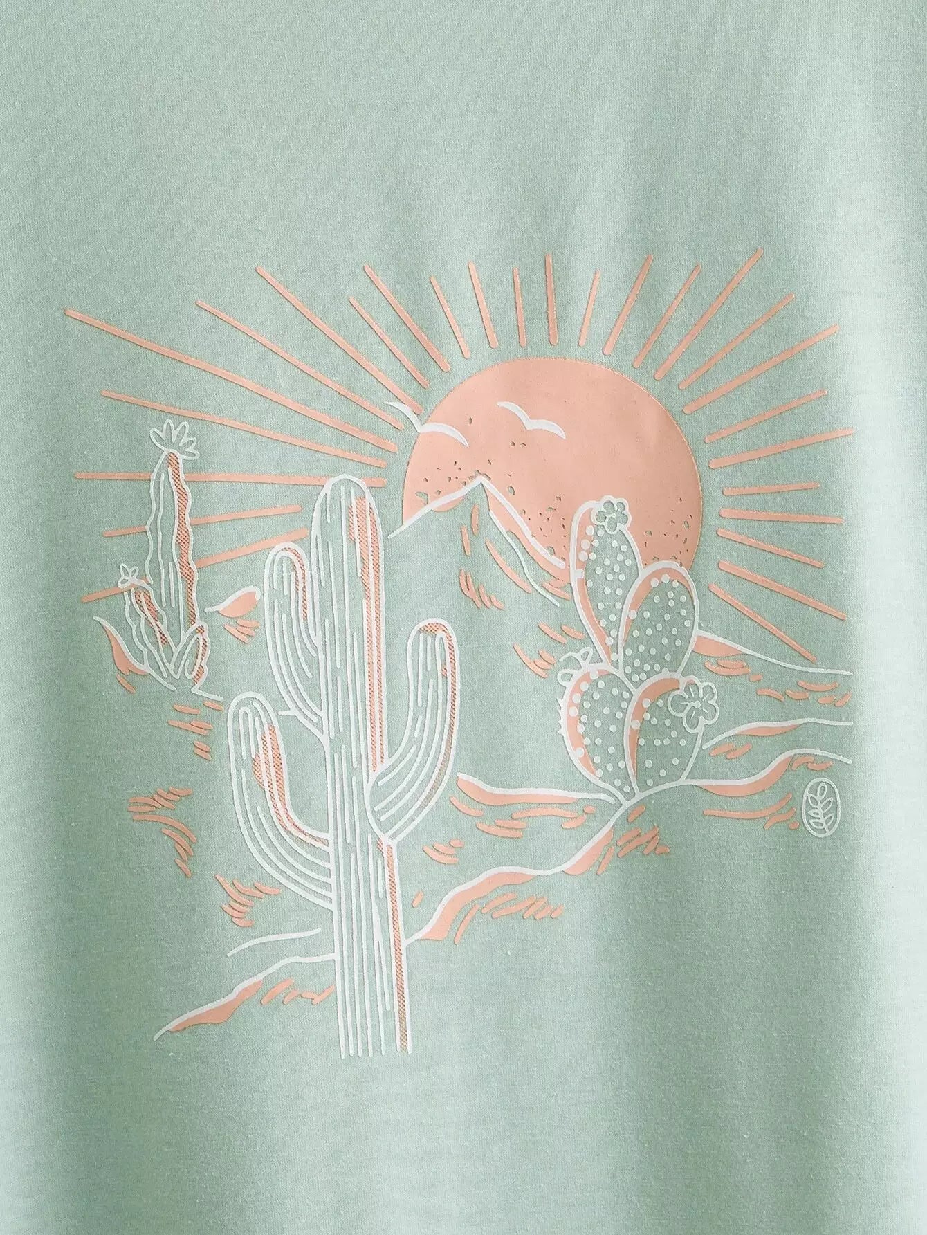 نحيف - مقاس كبير تي شيرت بطبعة الشمس والصبار
