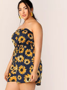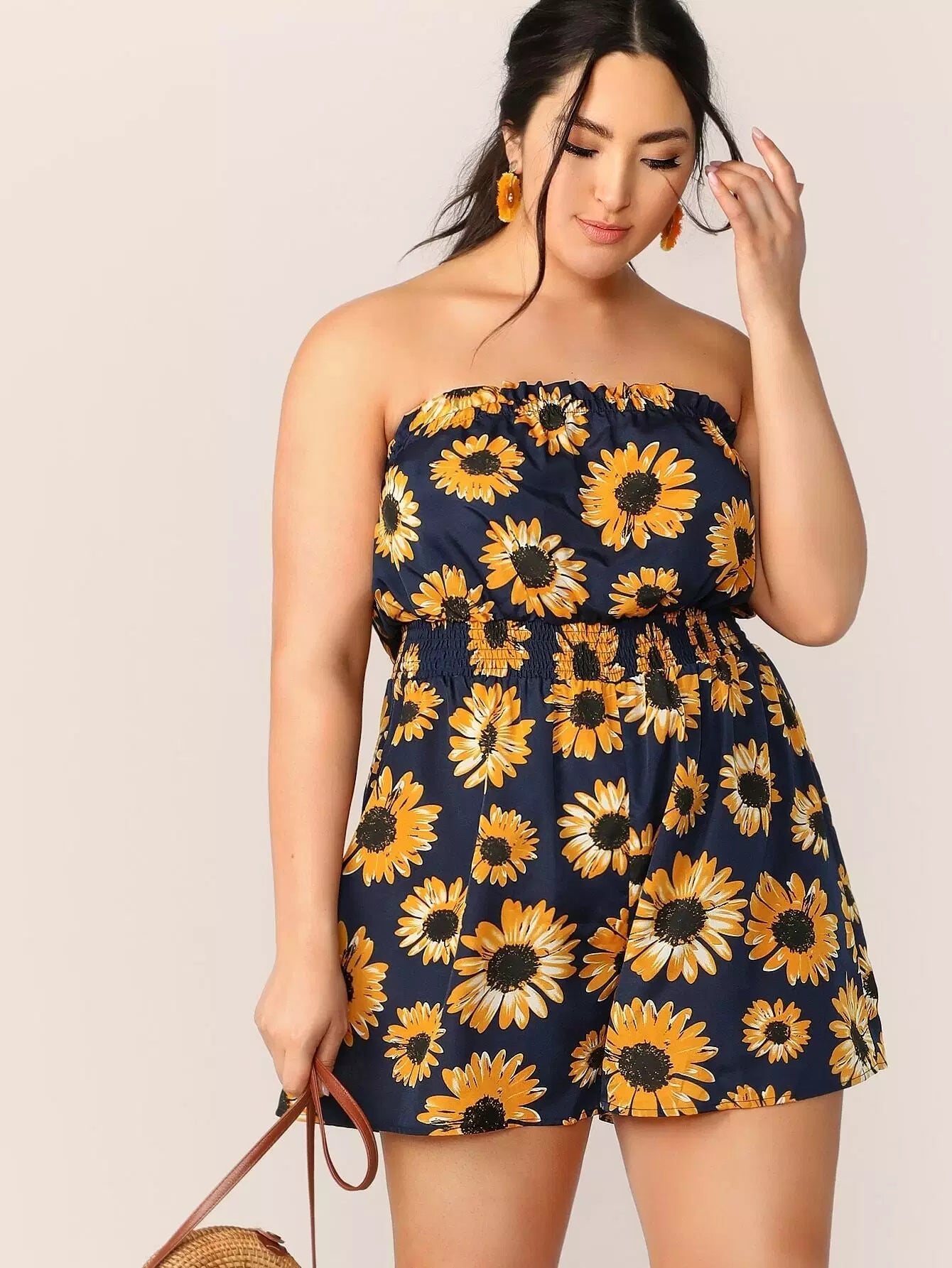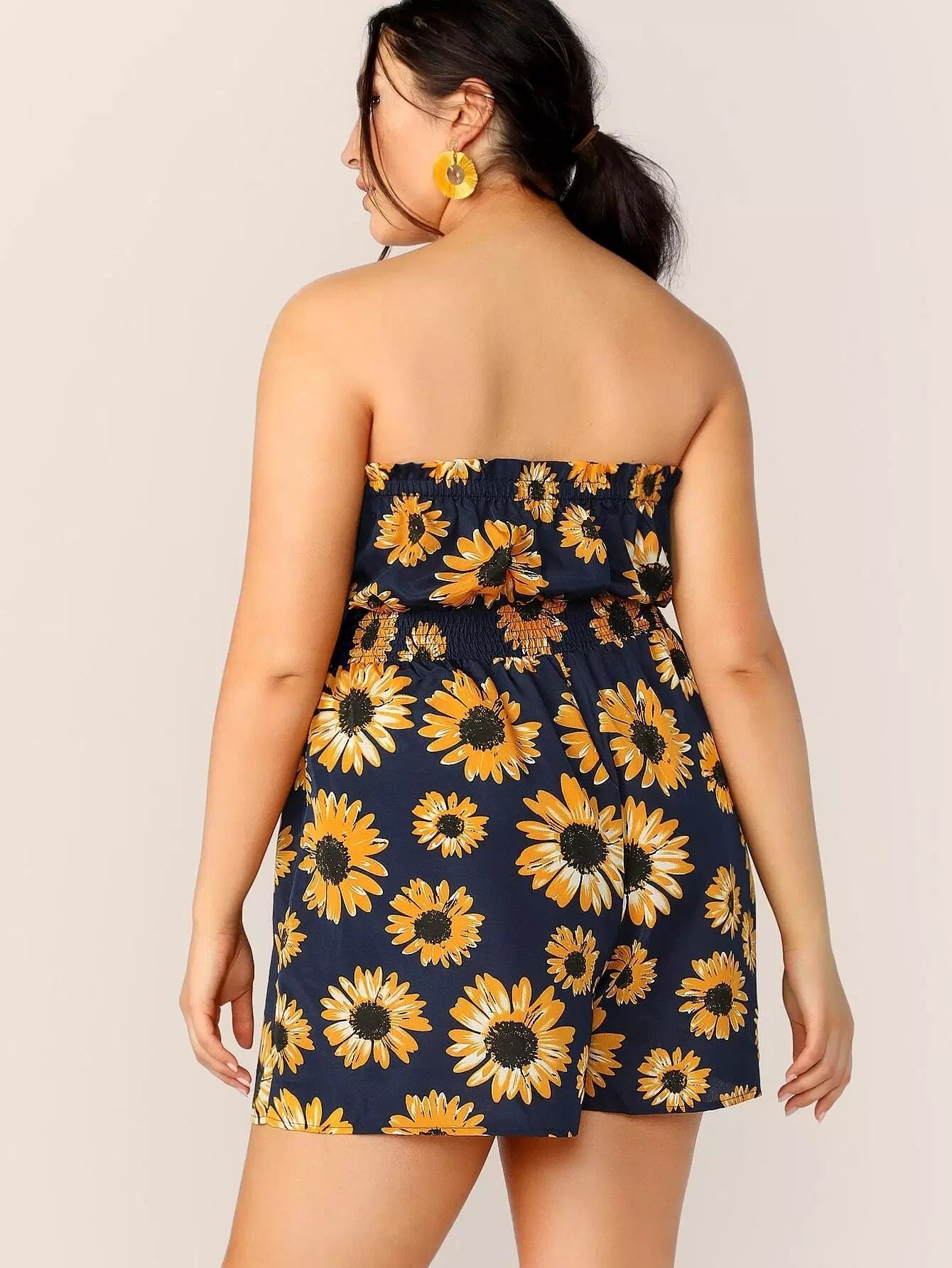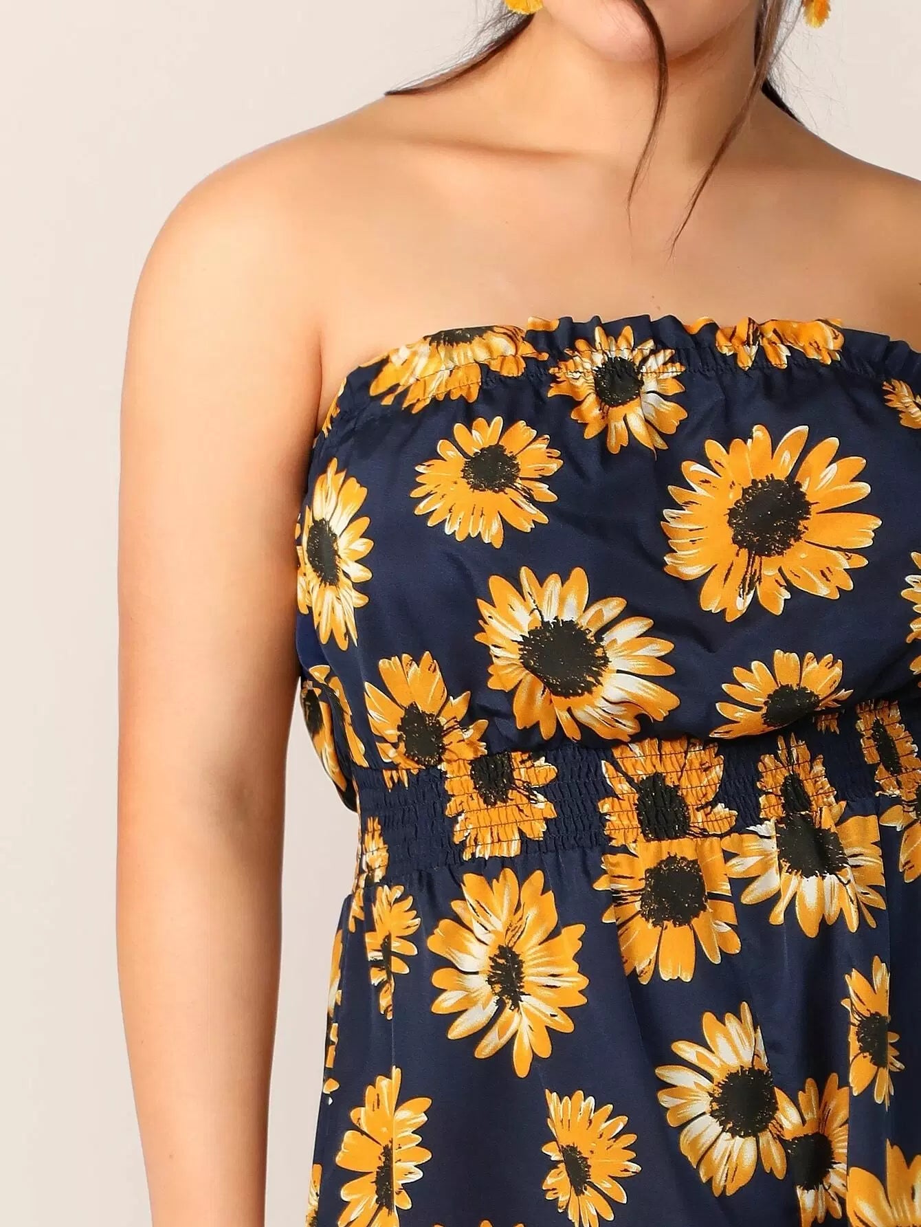 رومبر أنبوبي أنبوبي مزين بطبعة زهرة دوار الشمس زائد الخصر