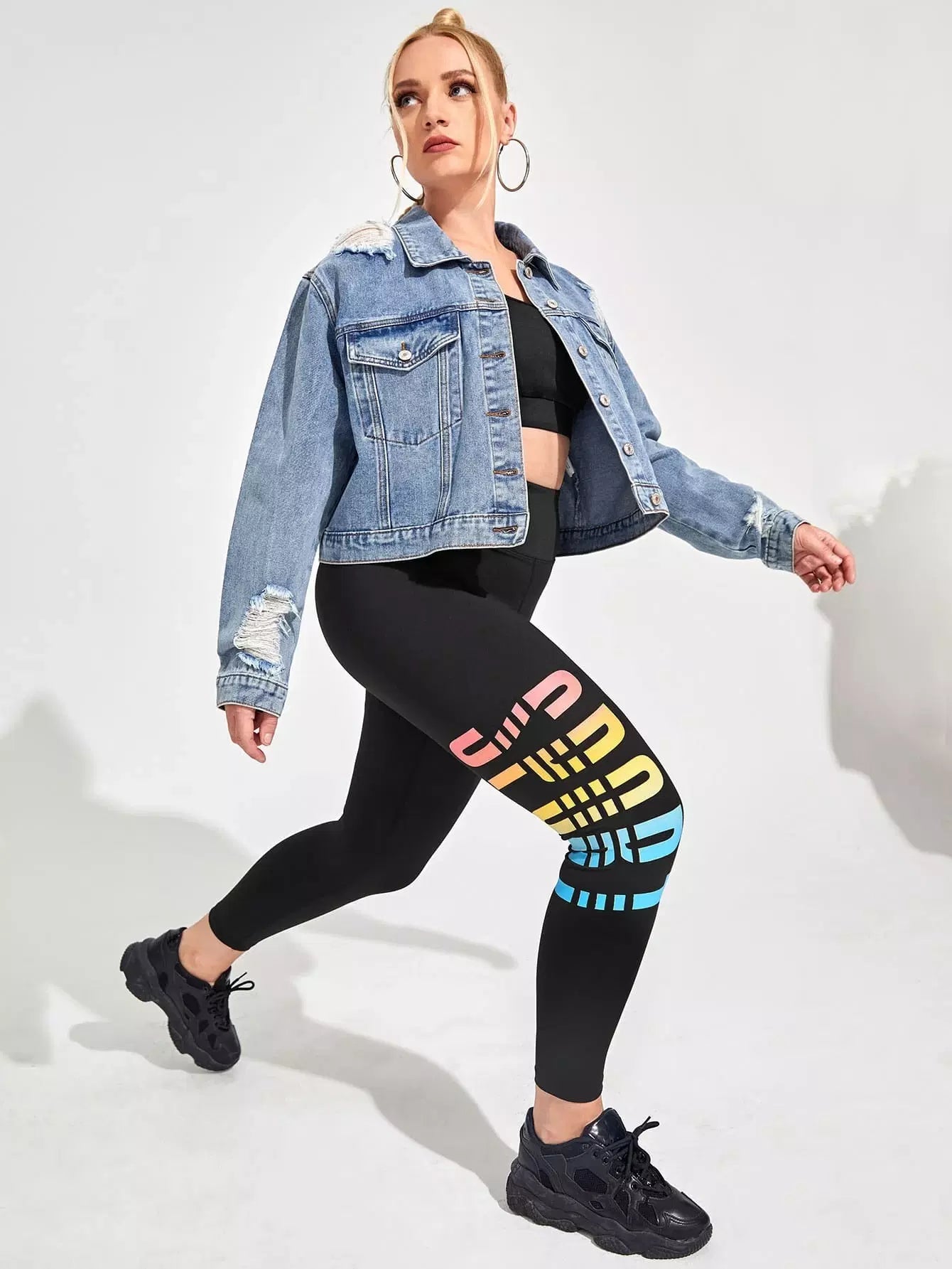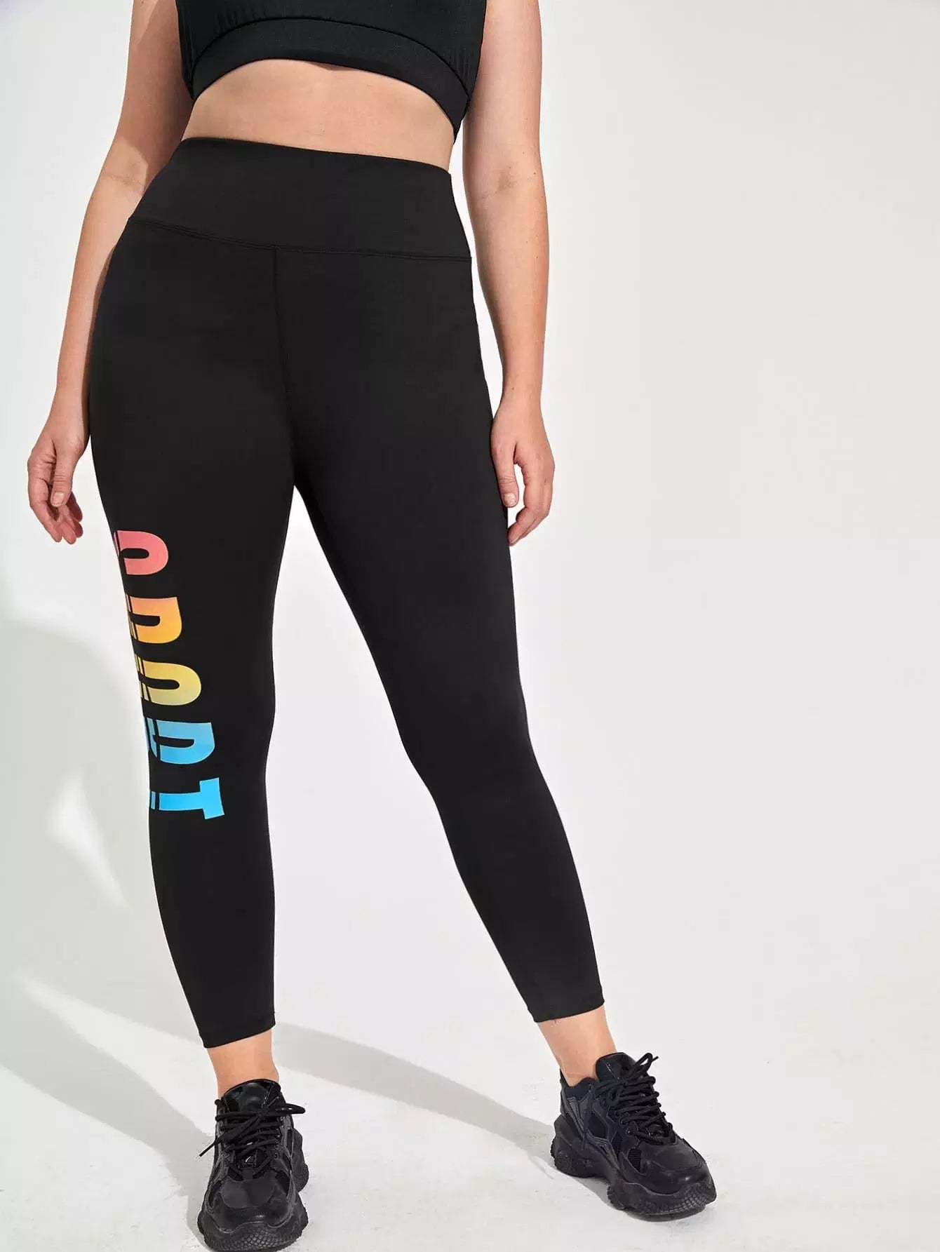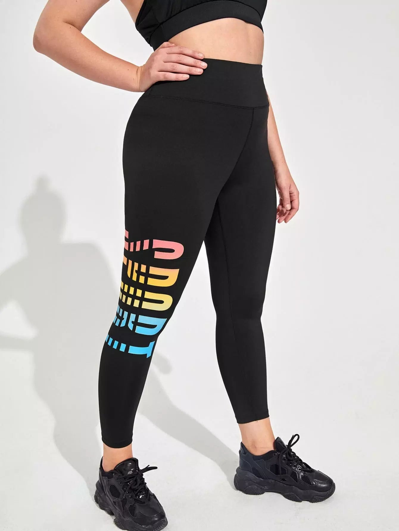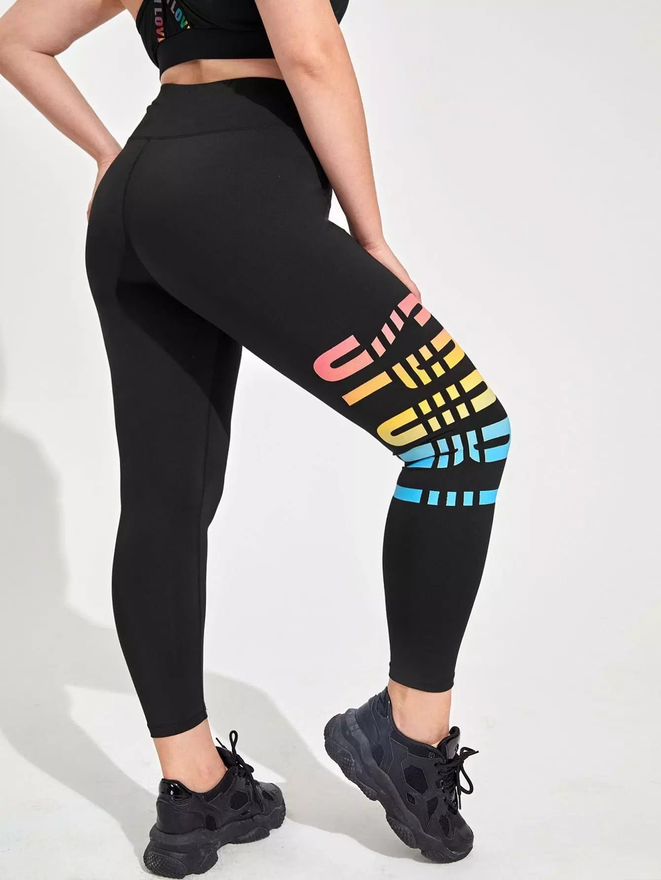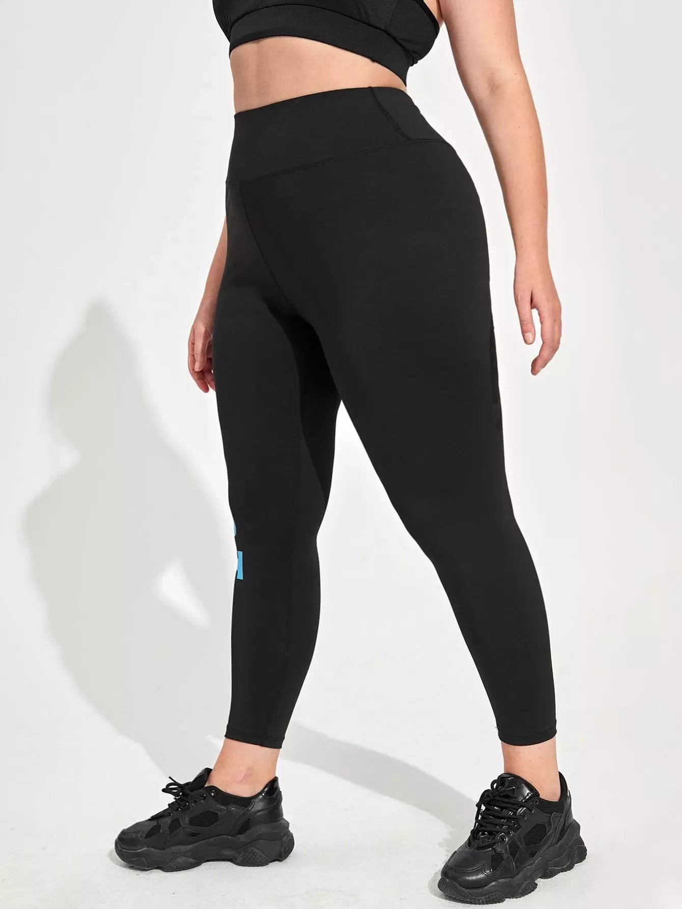 بنطلون ضيق رياضي قصير برسومات حروف مطاطية فائقة المرونة بلس