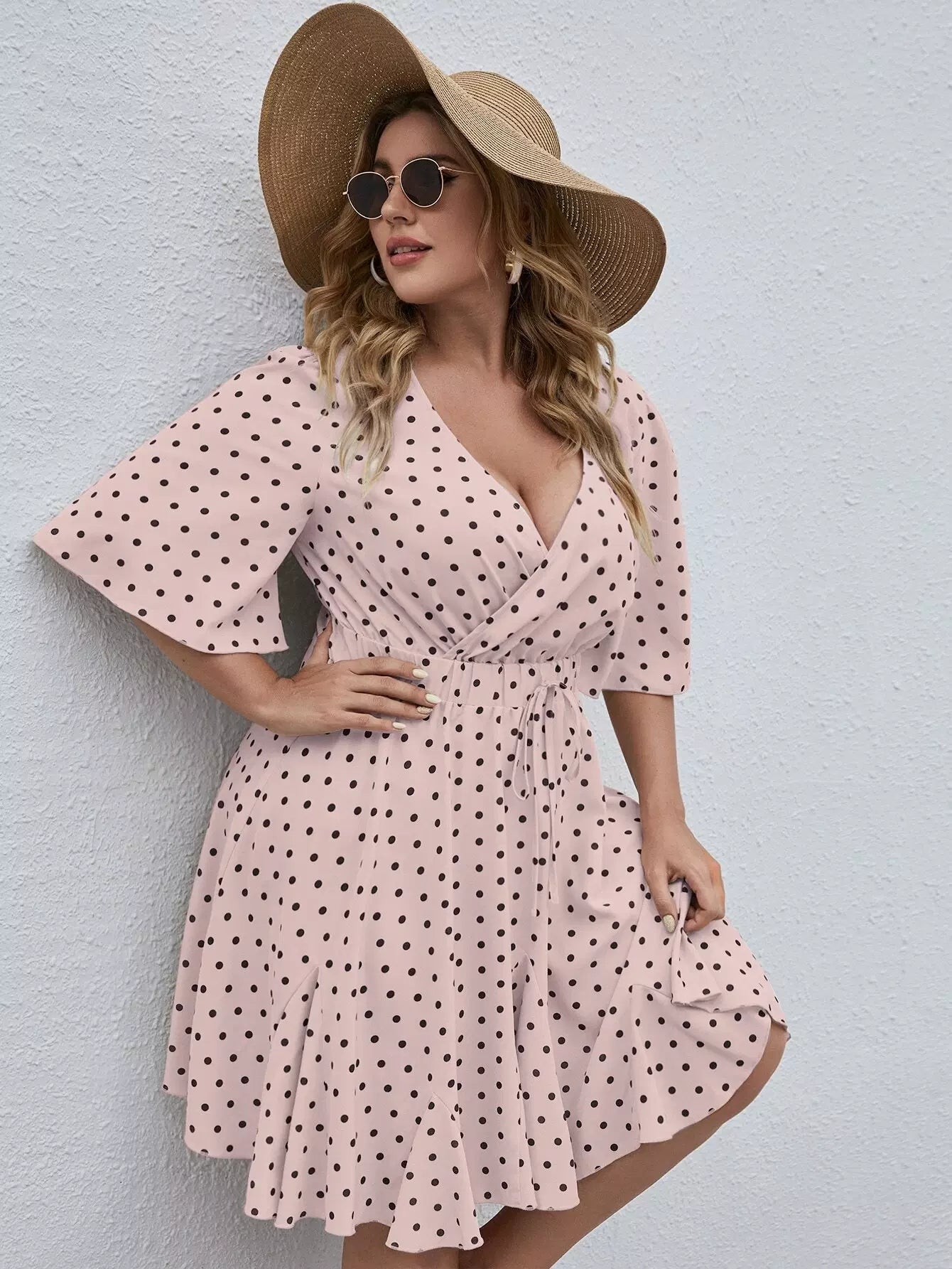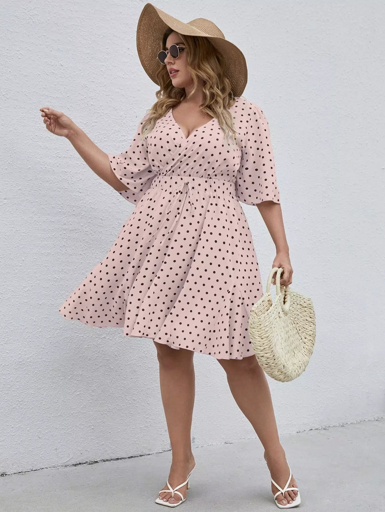 فستان منقّط من الأمام منقّط منقّط بلاس بلس
