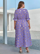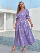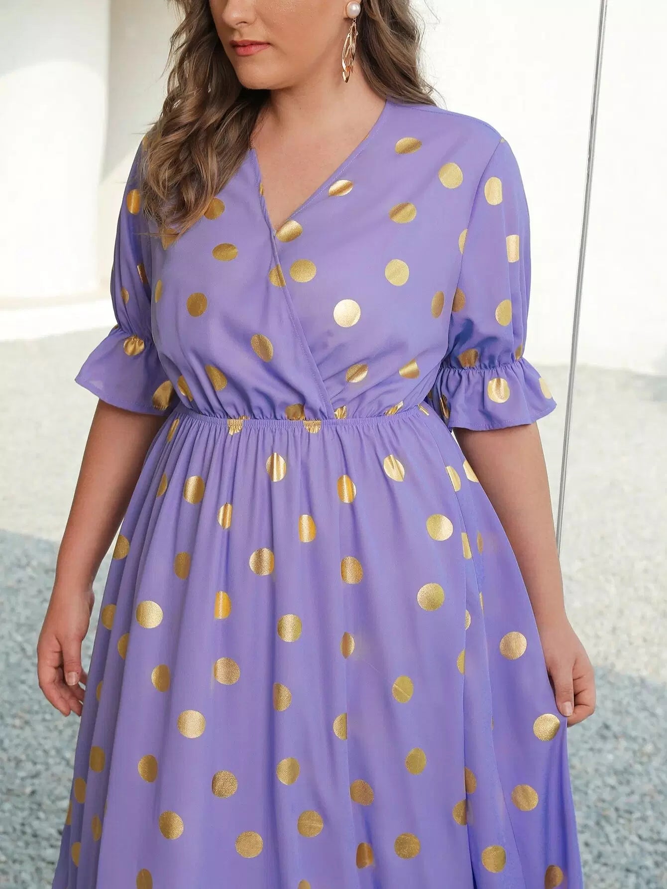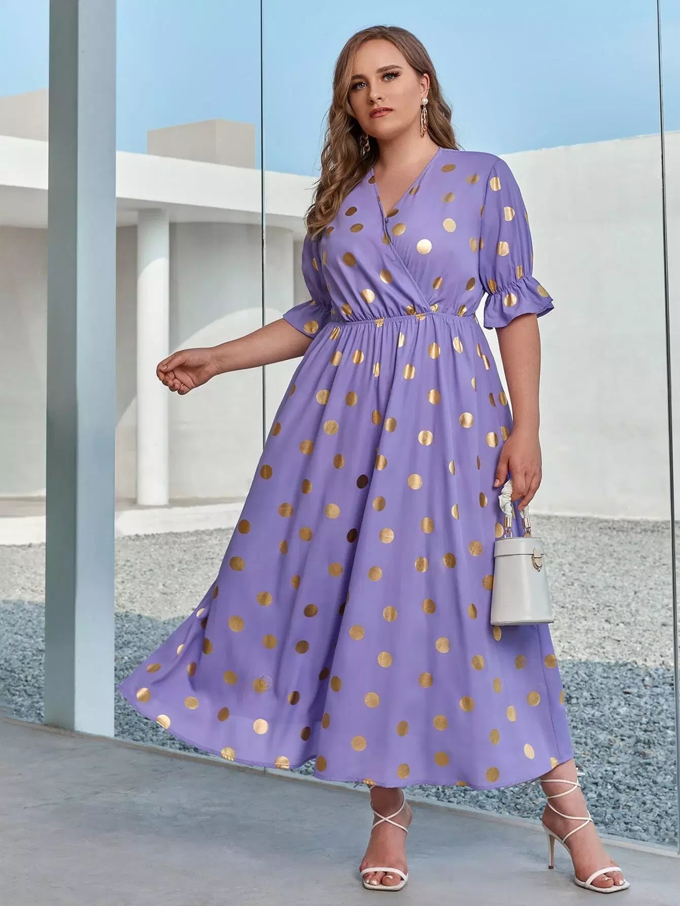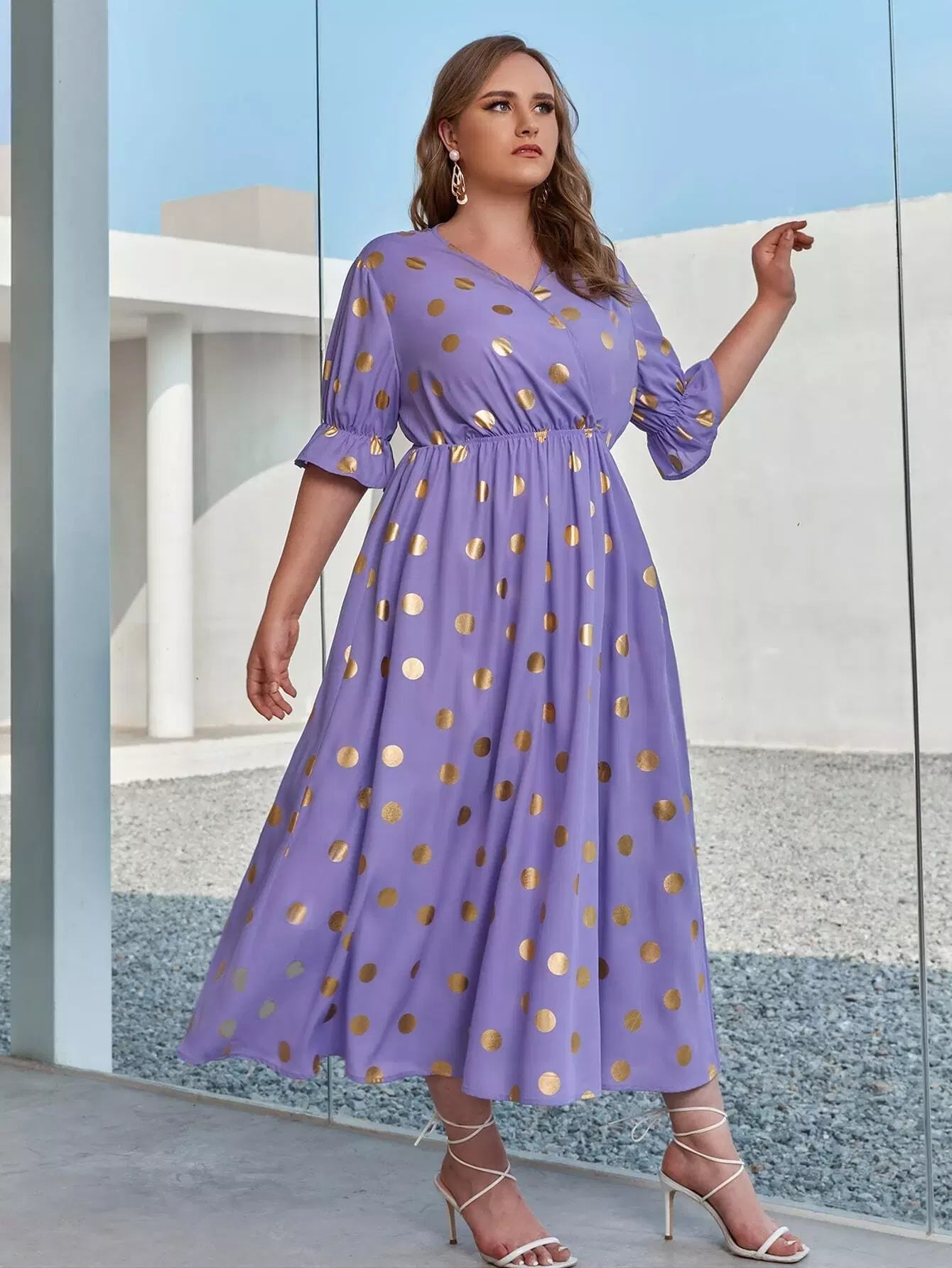 فستان منقّط برقبة زائد برقبة زائد منقطة