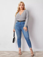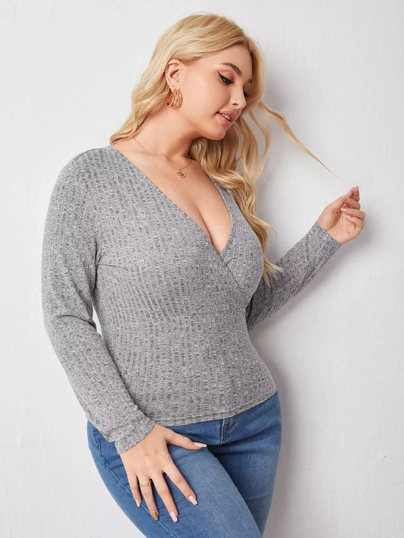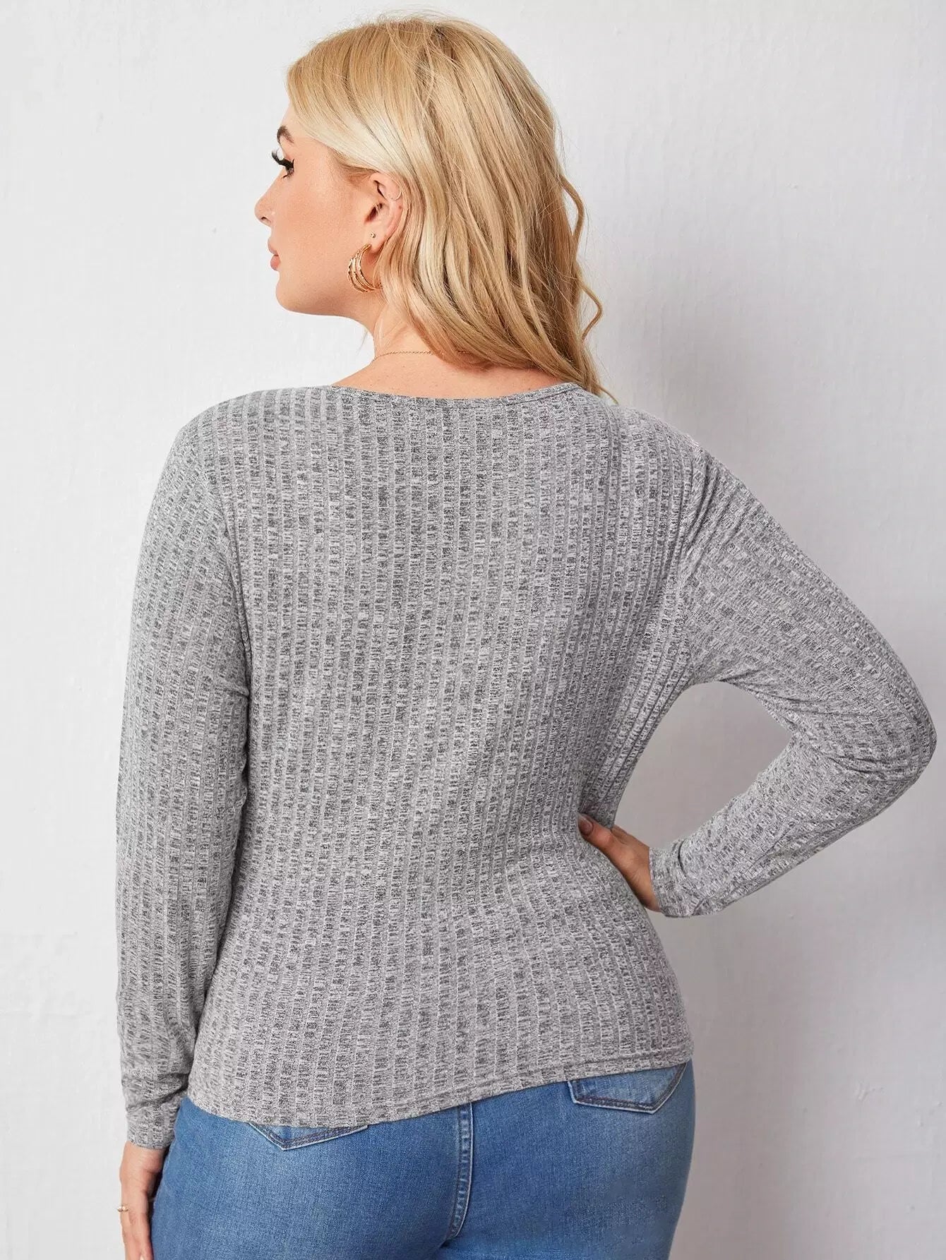 بلوزة برقبة ضلع محبوكة برقبة كشكش زائد