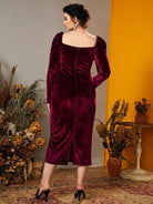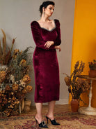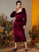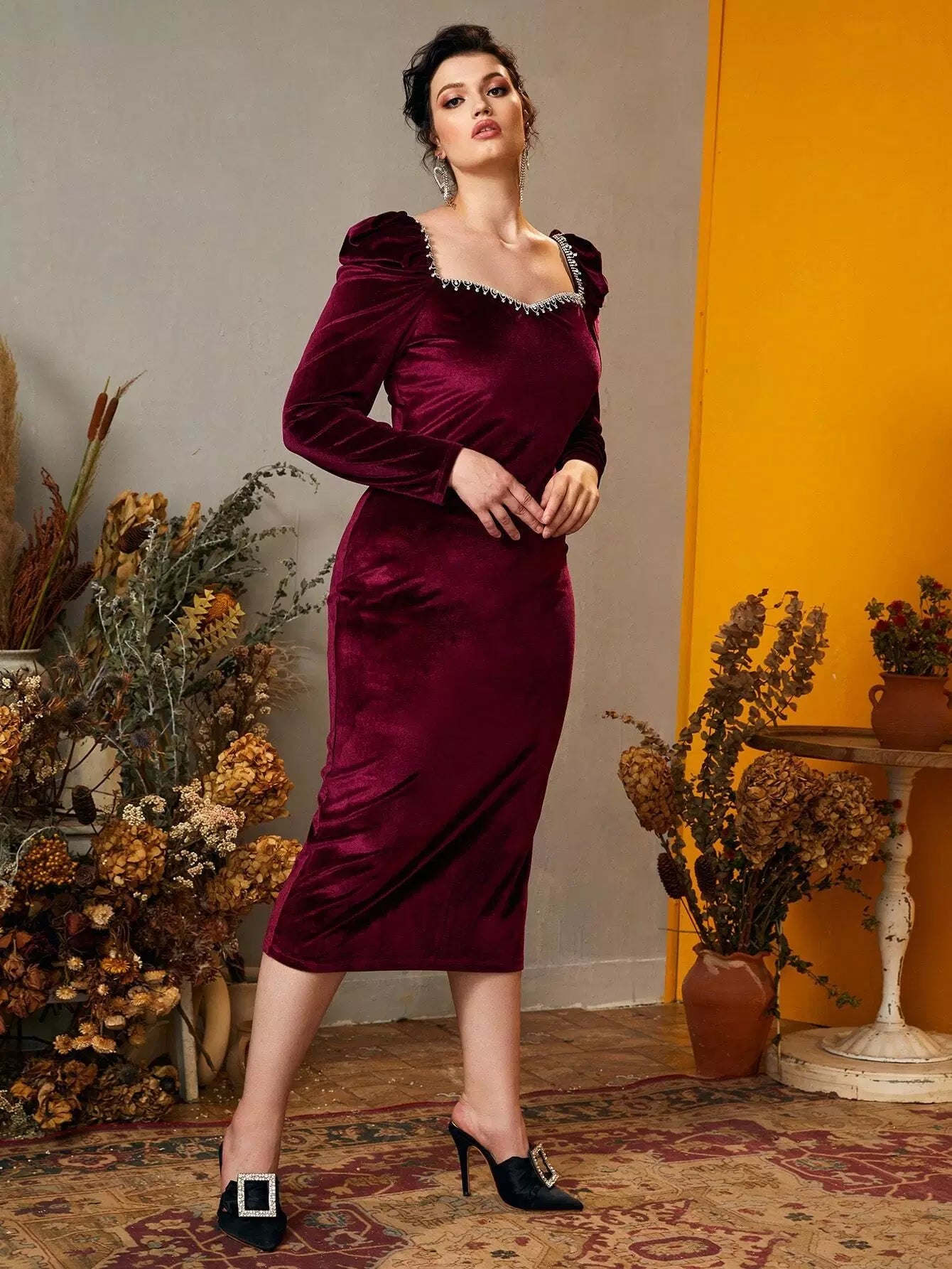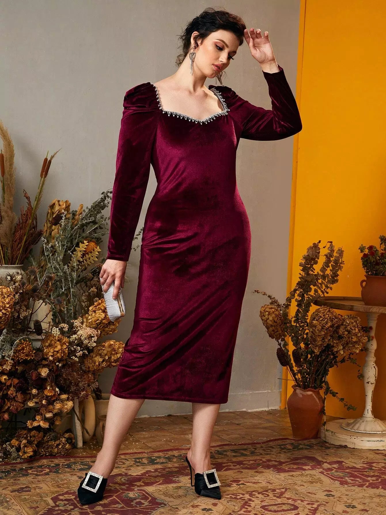 فستان مخملي بفتحة عنق سويت هارت برقبة سويت هارت بفتحة مخملية