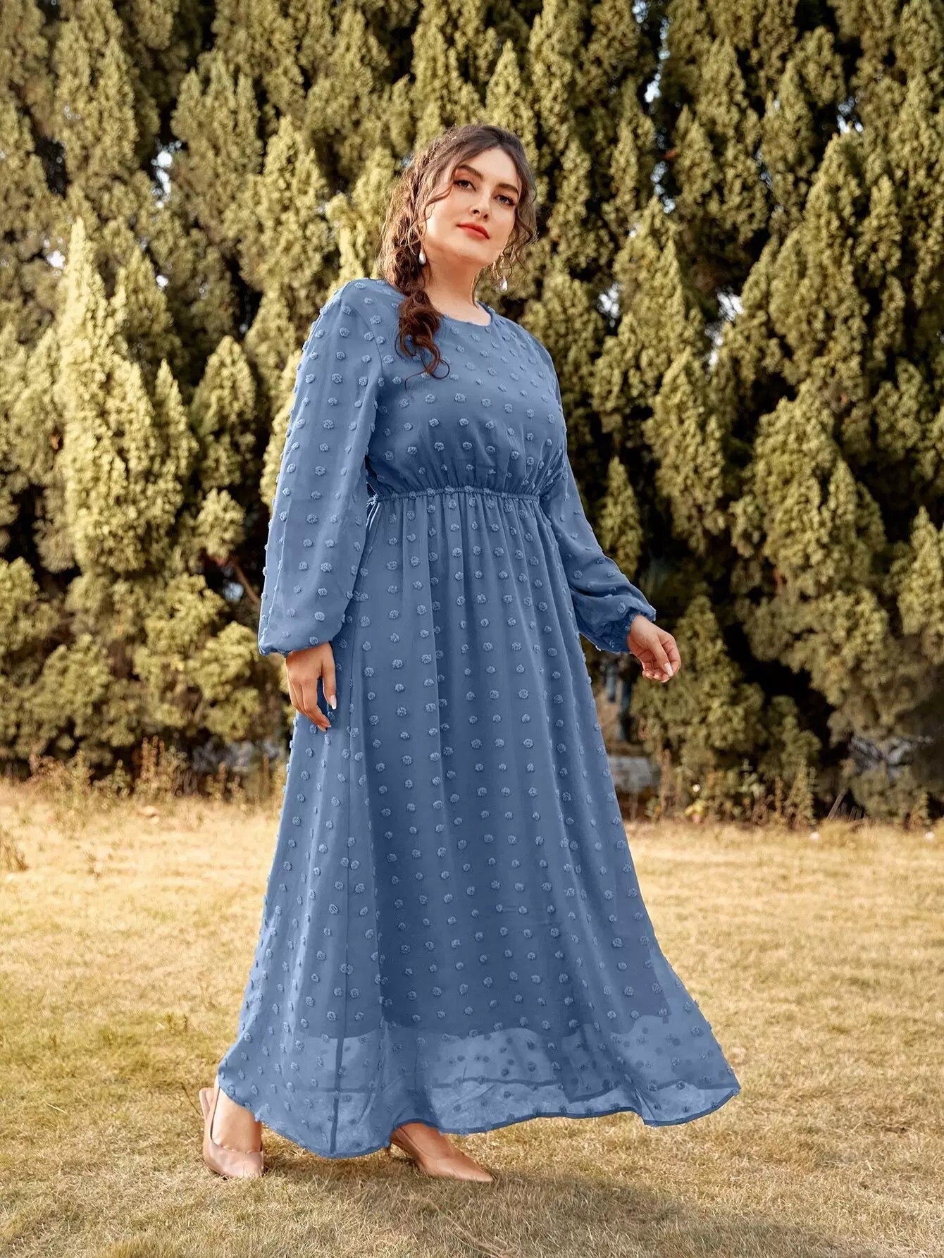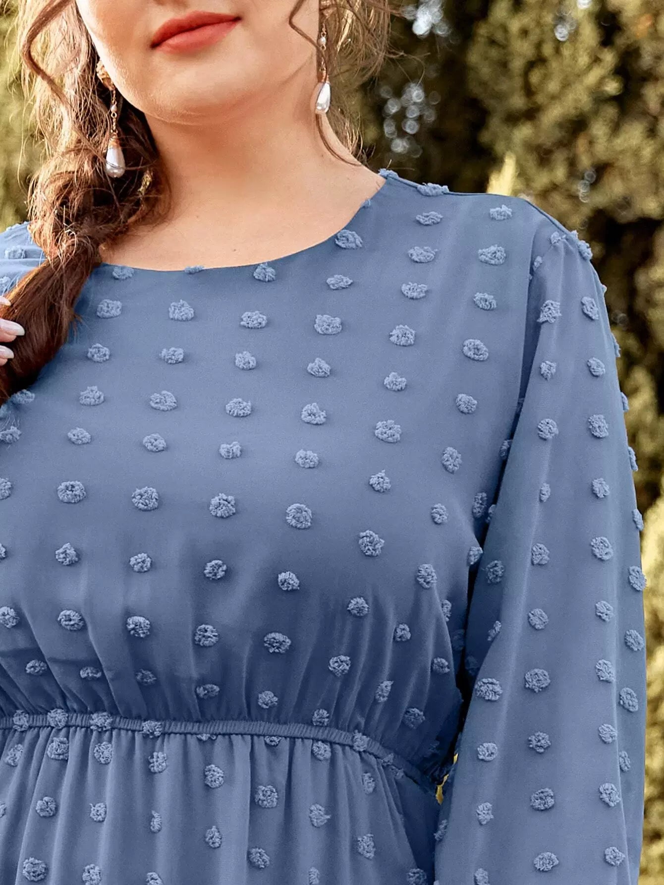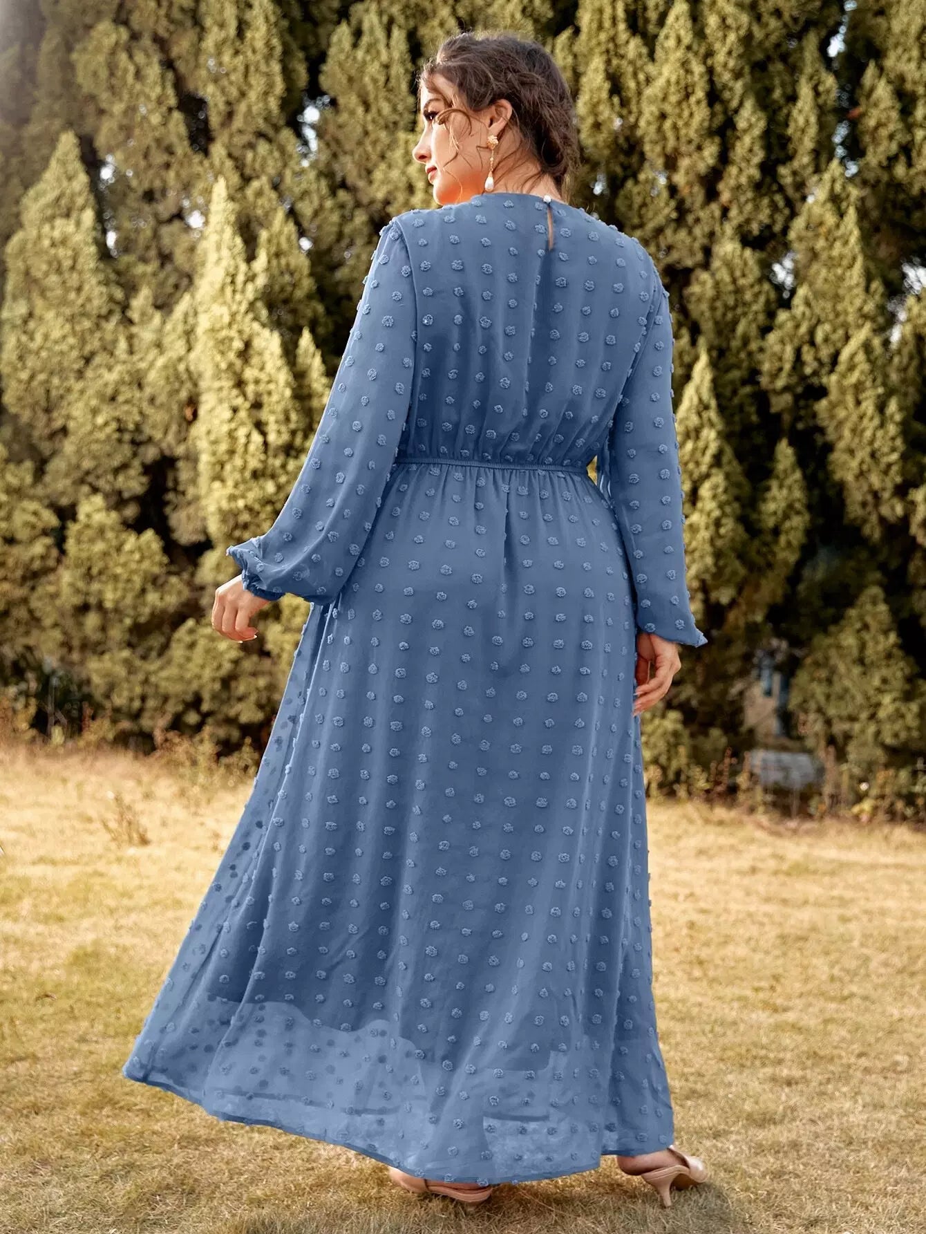 فستان قصير منقّط بأكمام منقّطة على شكل حرف A