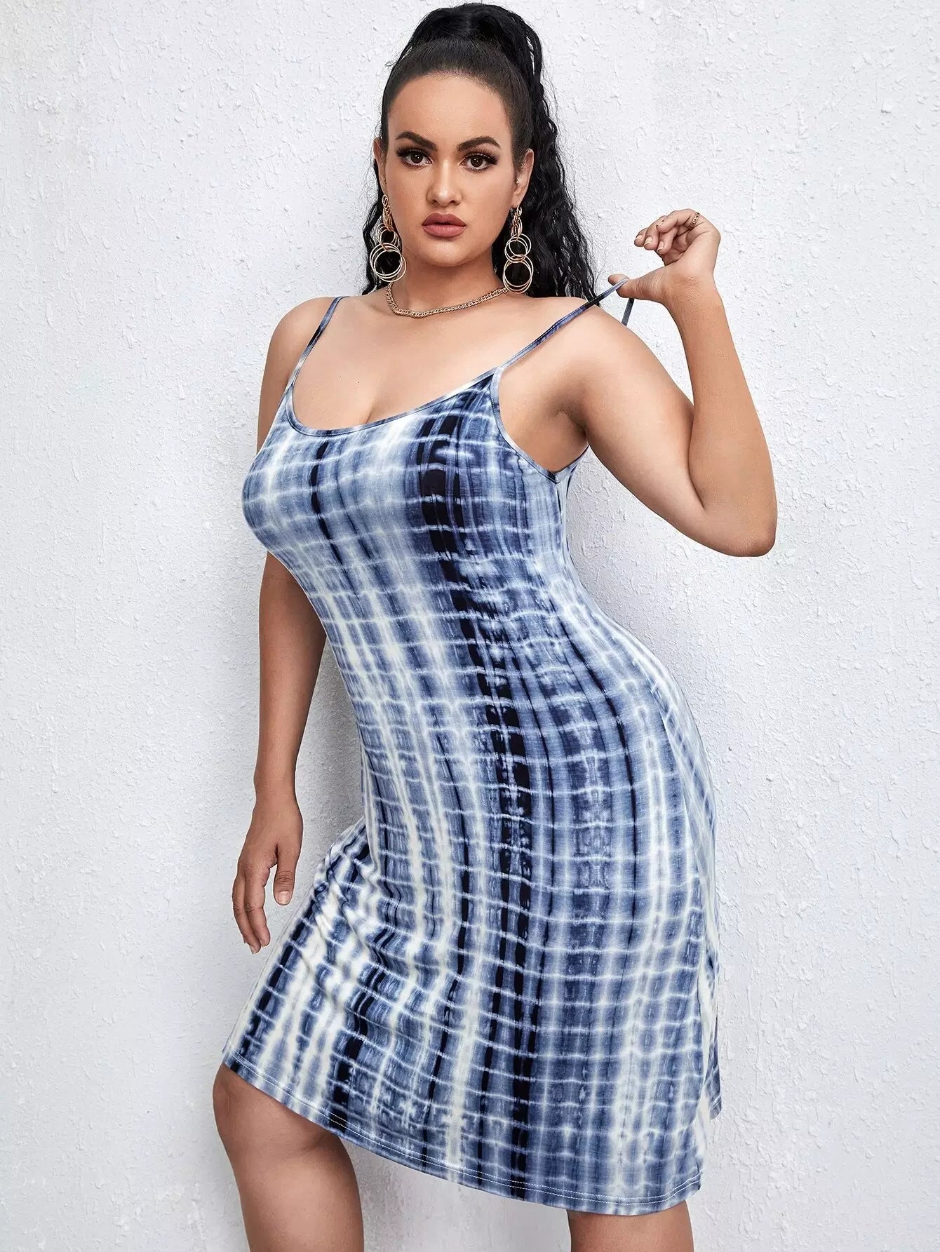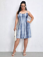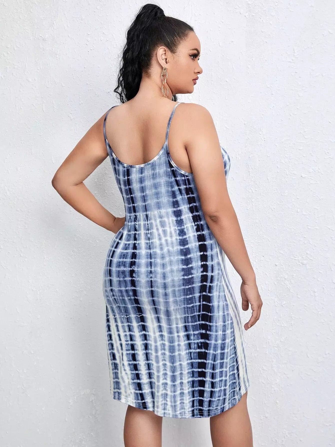 فستان قصير مكشوف الظهر مصبوغ بربطة عنق زائد