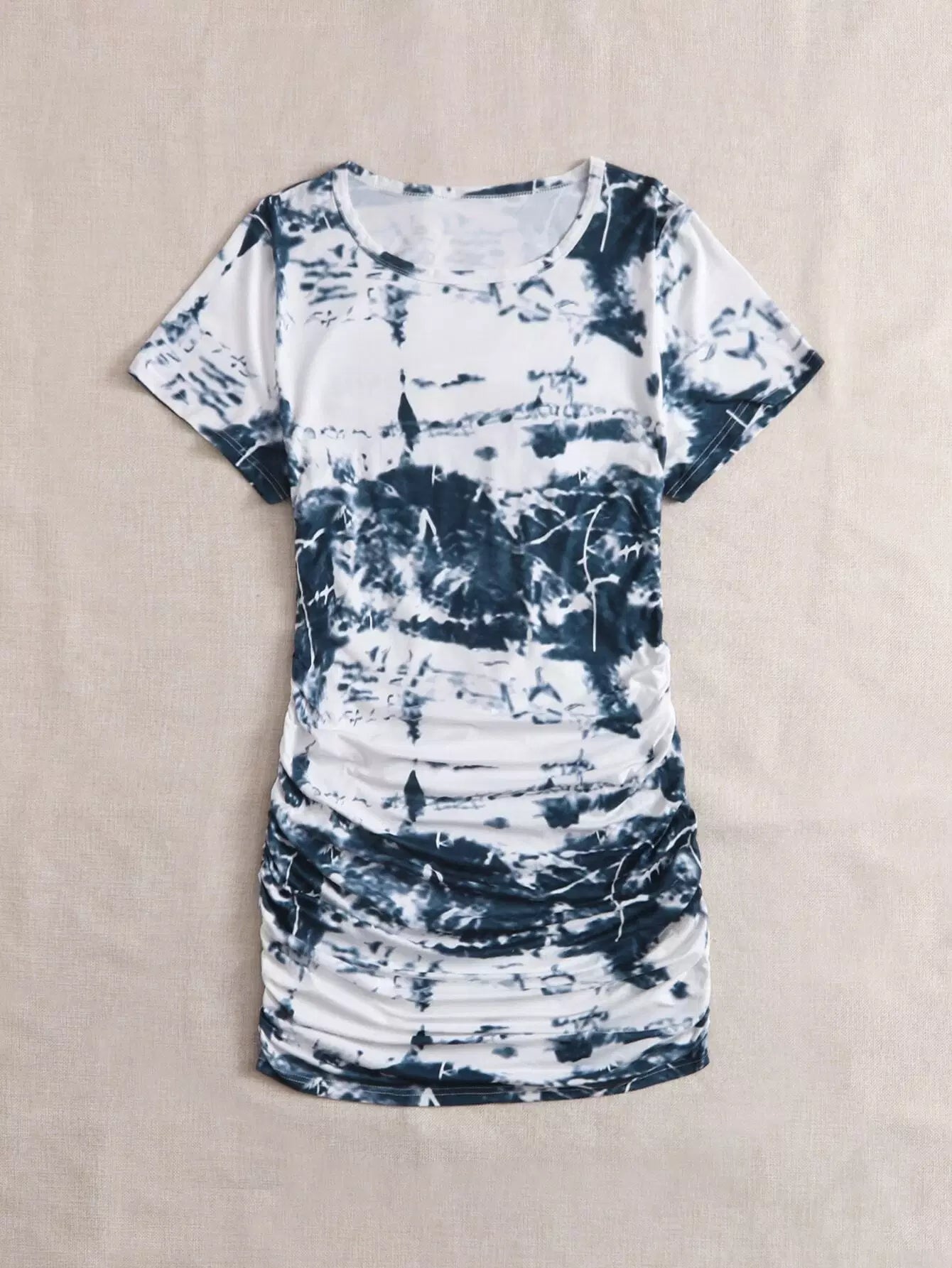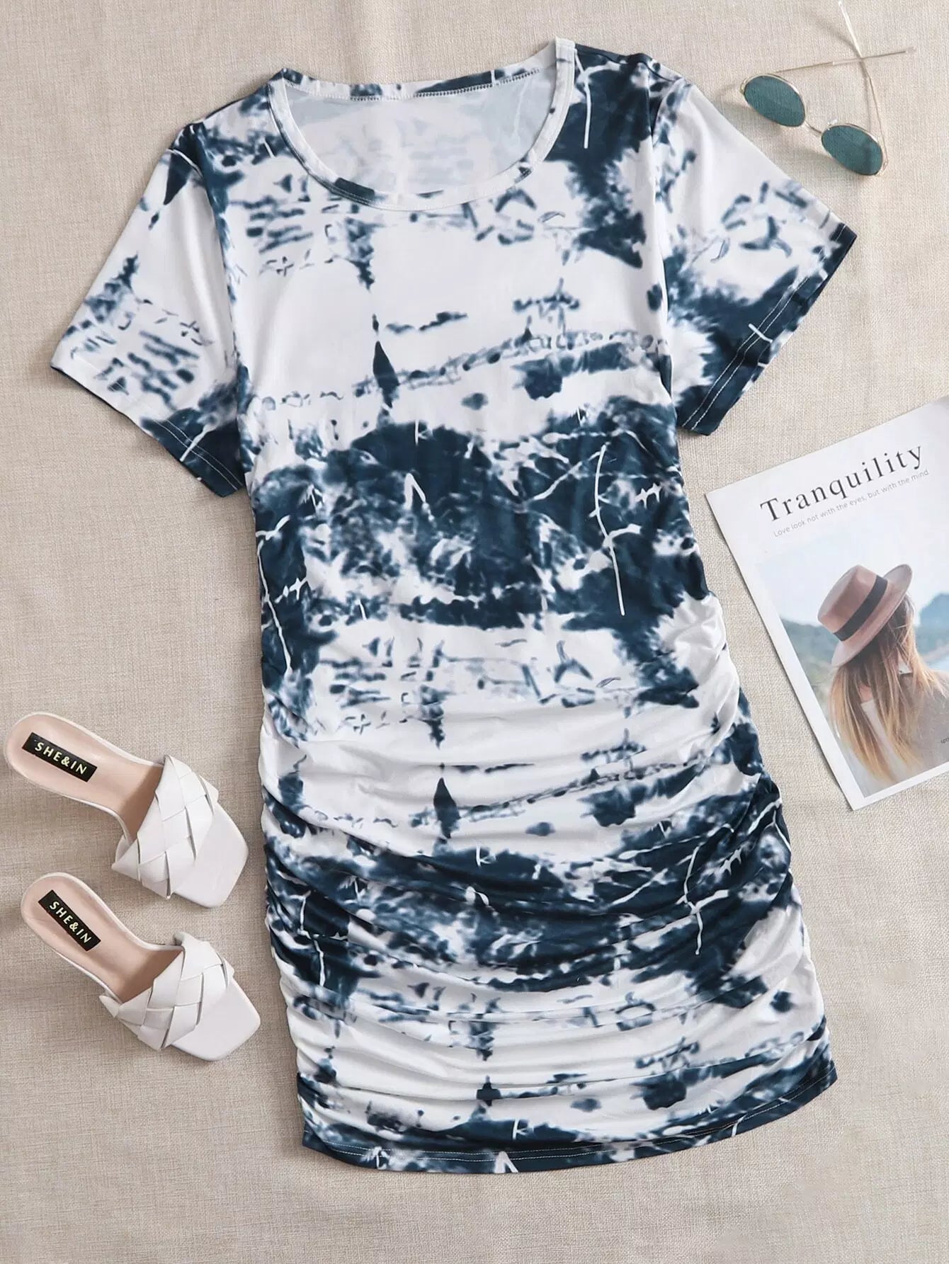 فستان مكشكش مزركش مزركش بصبغة زائد