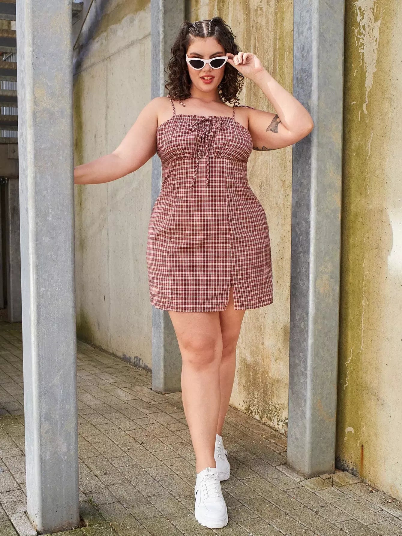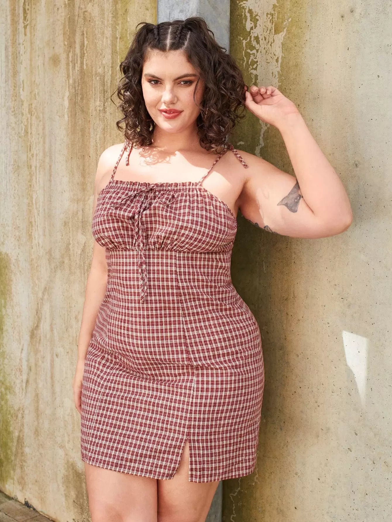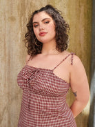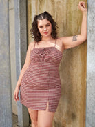 فستان كامي منقوش بربطة عنق أمامية منقوشة بربطة عنق أمامية منقوشة