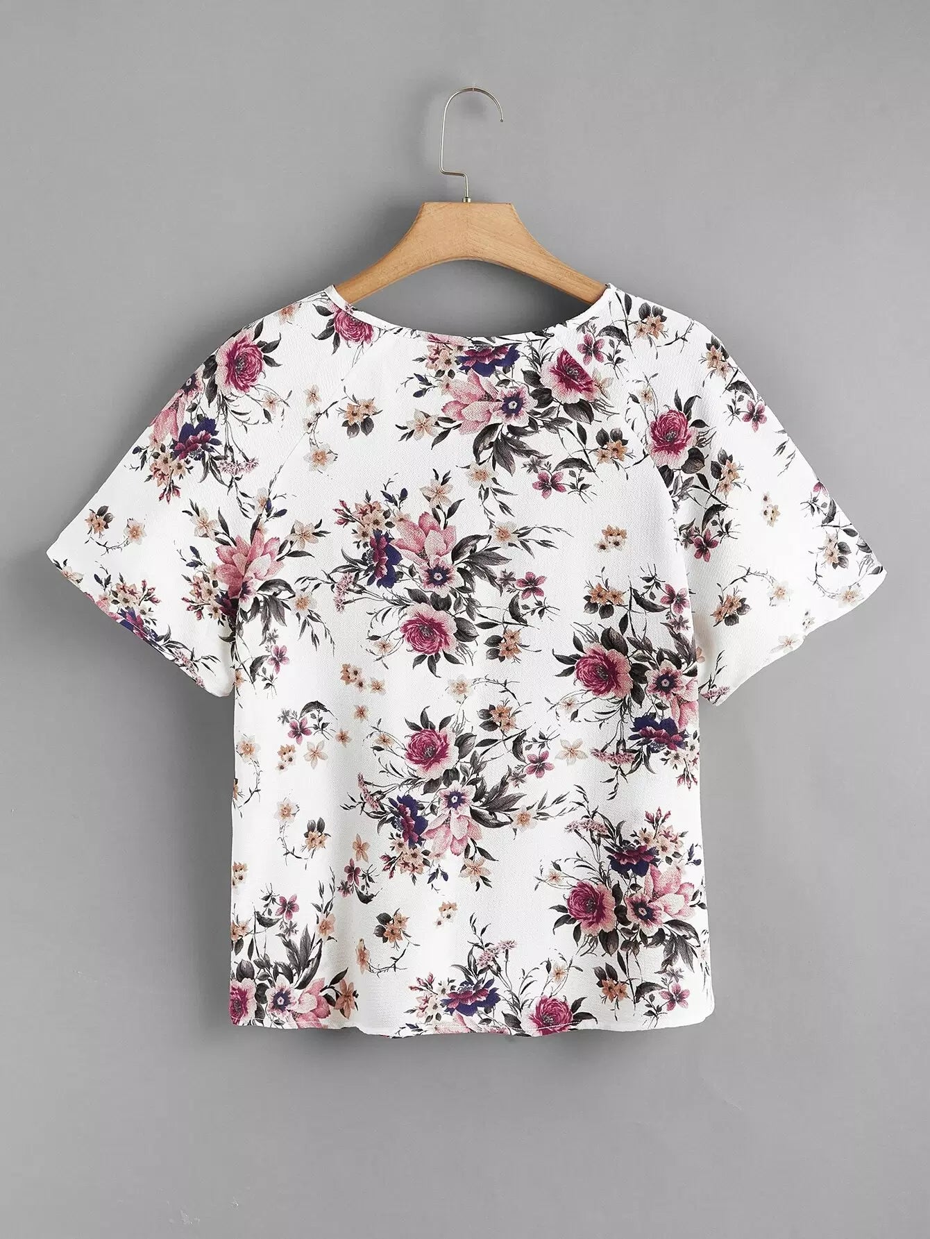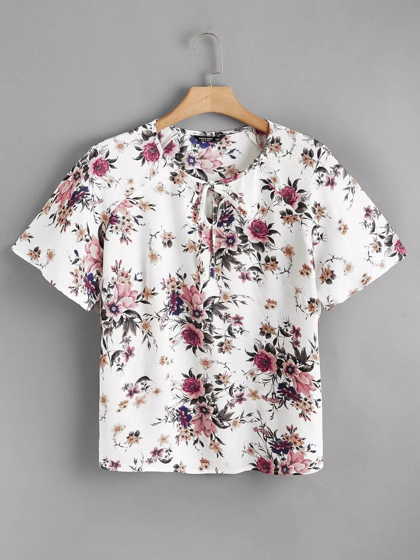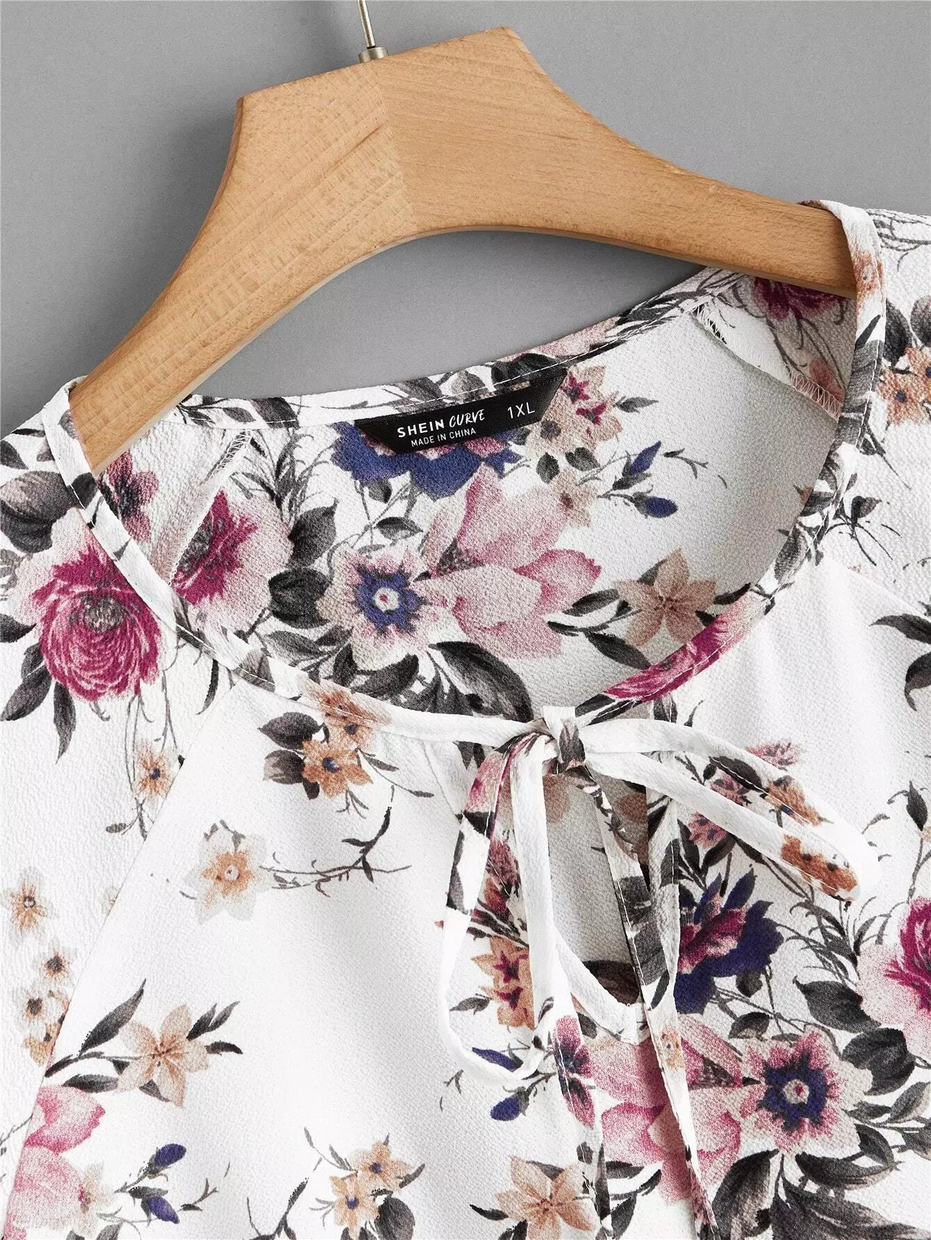 بلوزة بطبعة زهور برقبة ربطة عنق زائد