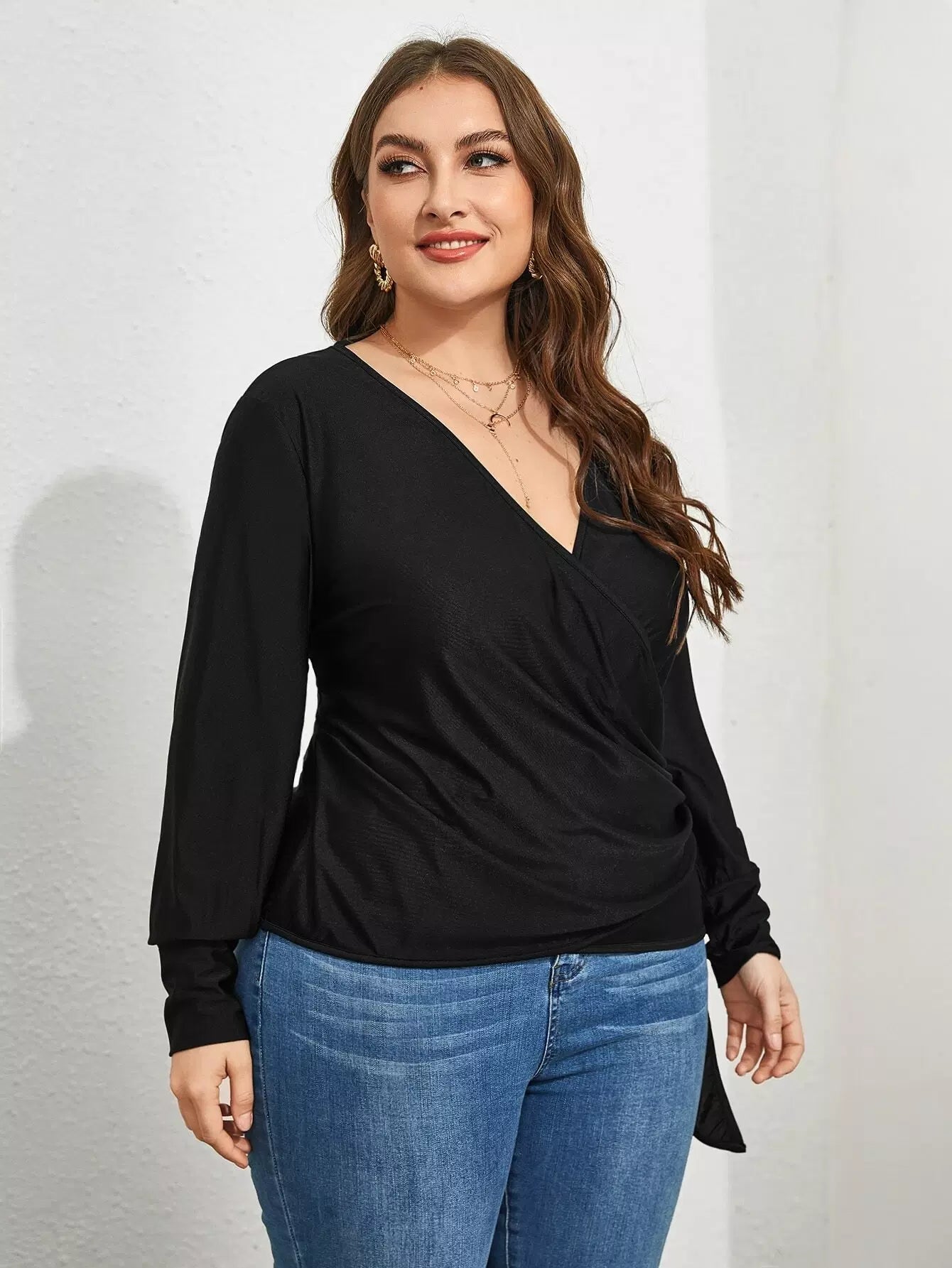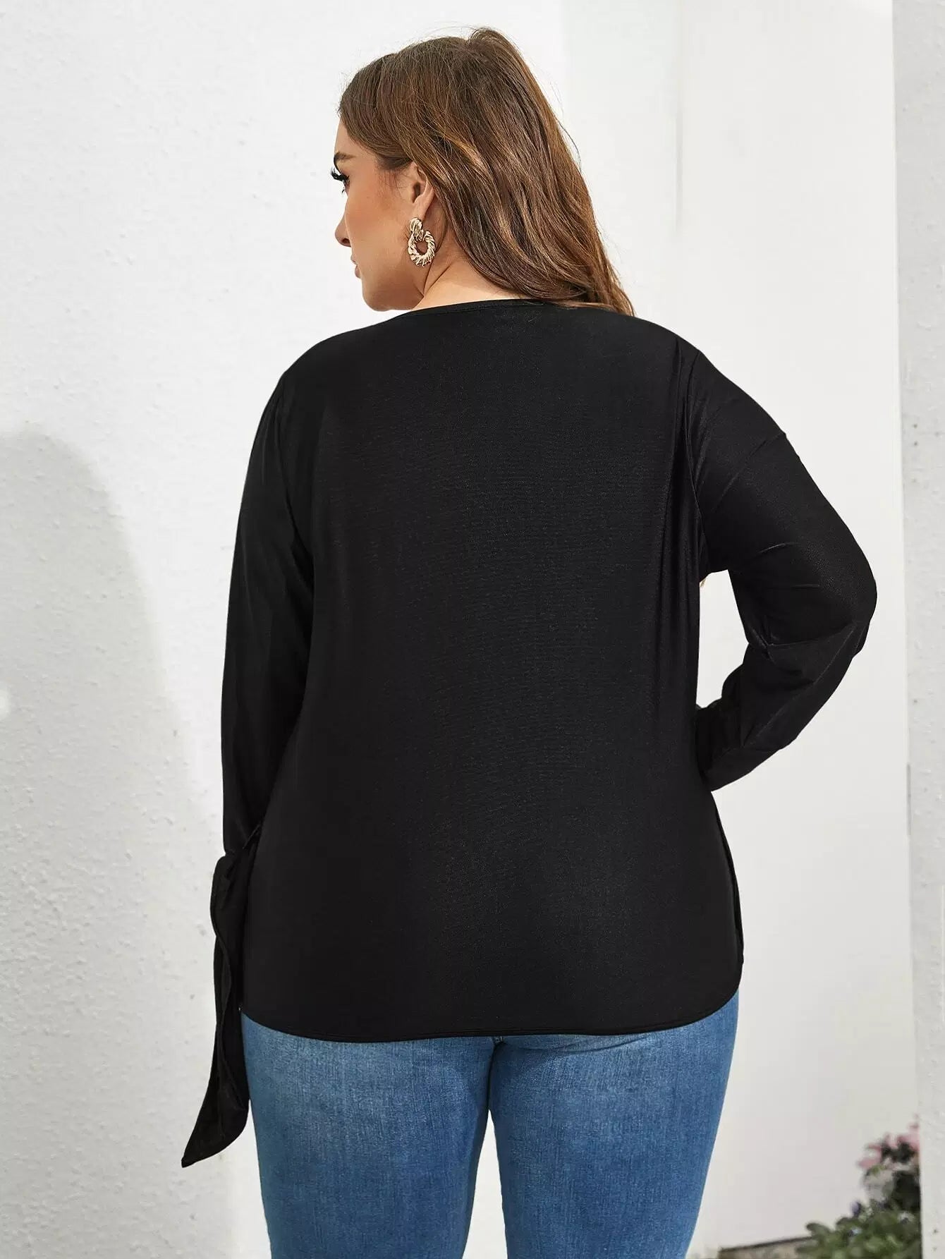 بلوزة سادة ملفوفة من الجانبين بربطة عنق زائد