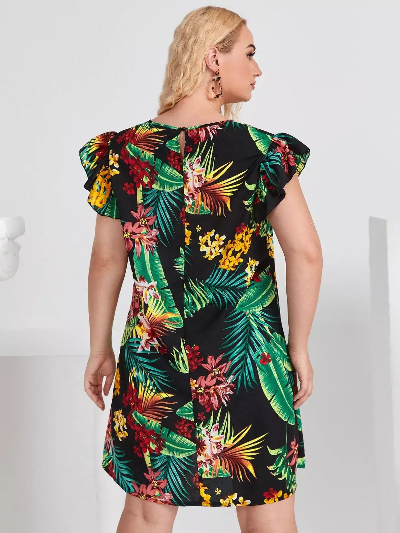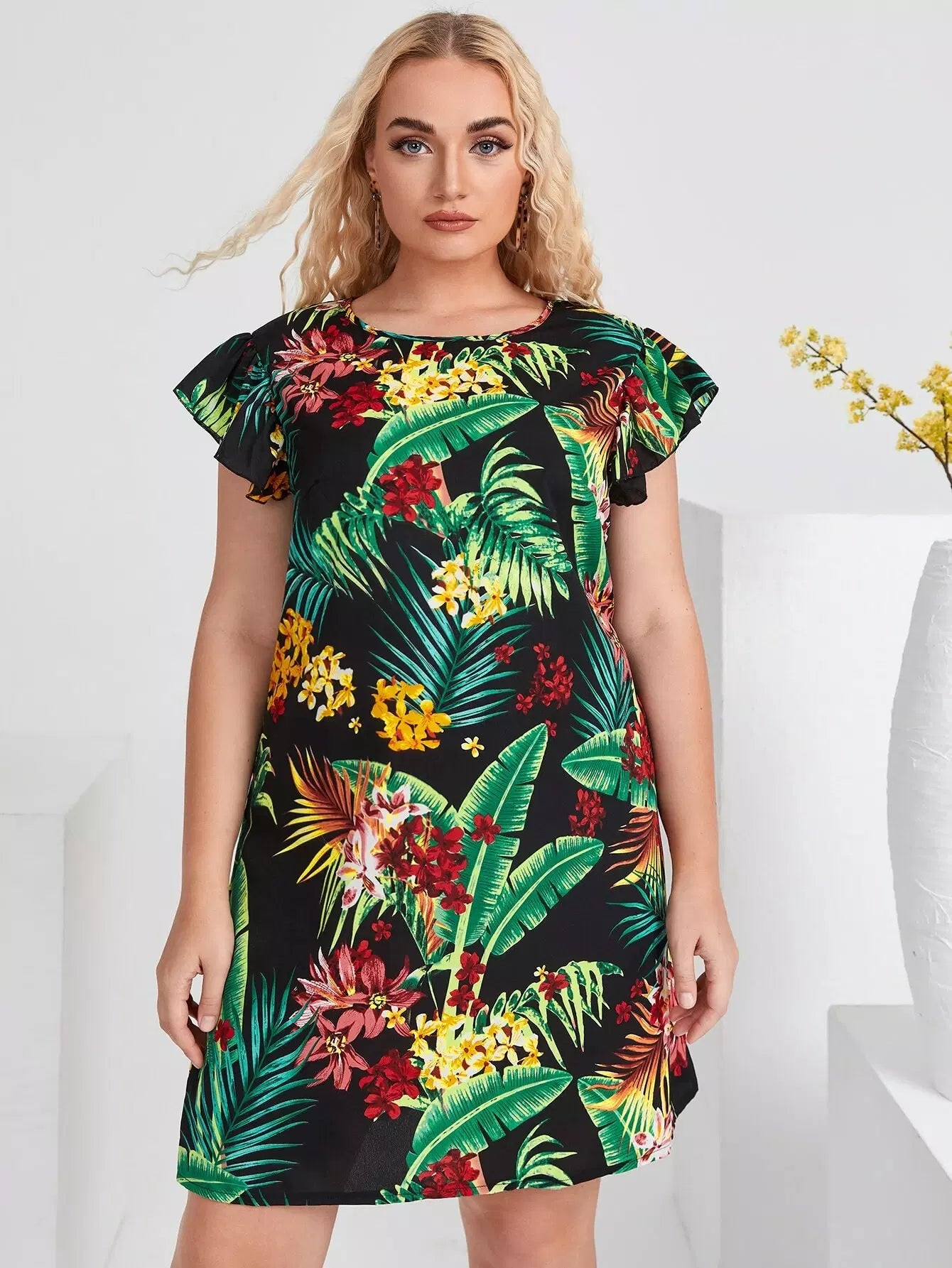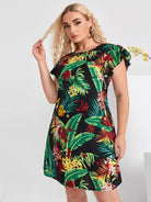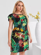 فستان بطبعة استوائية بفتحة ظهر بفتحة ظهر استوائية