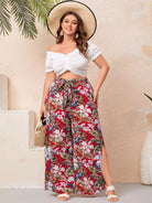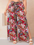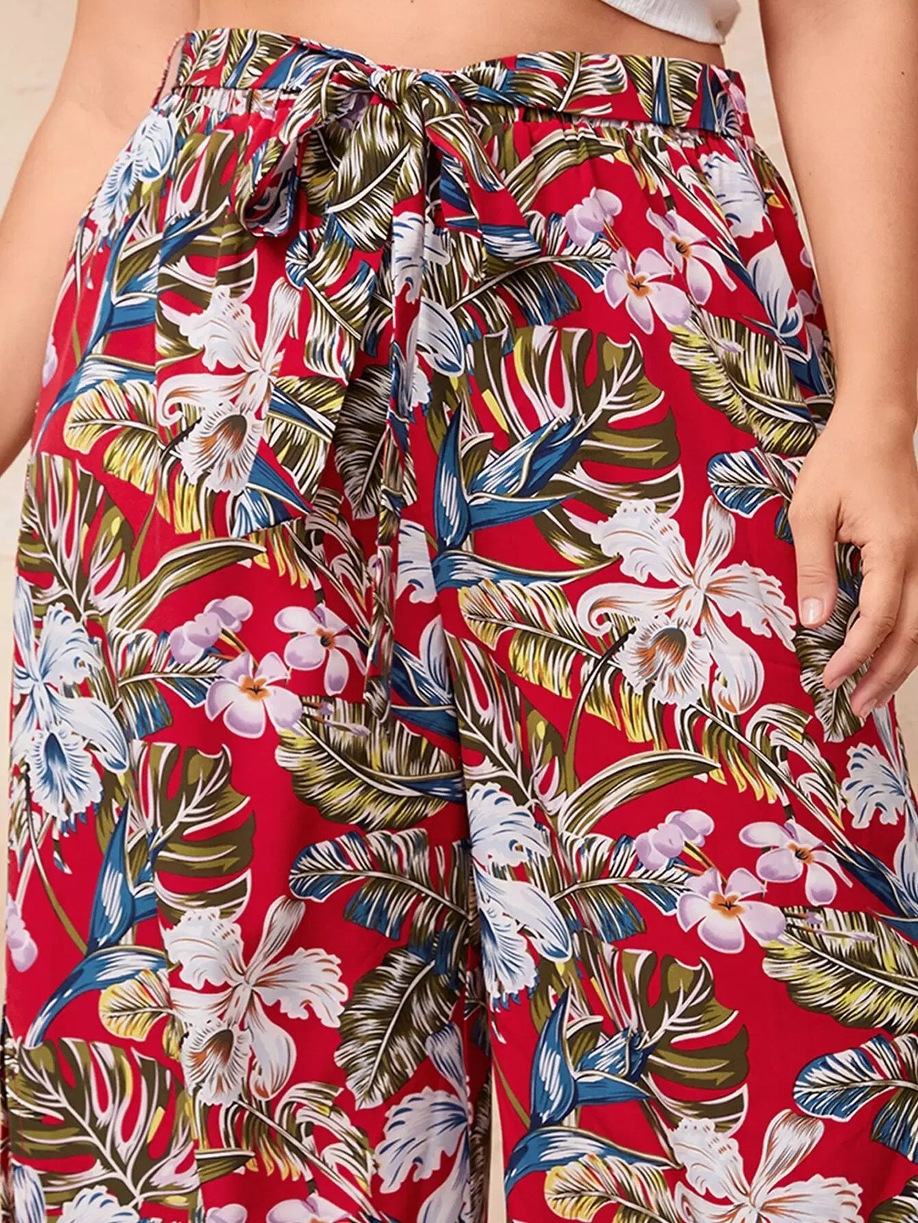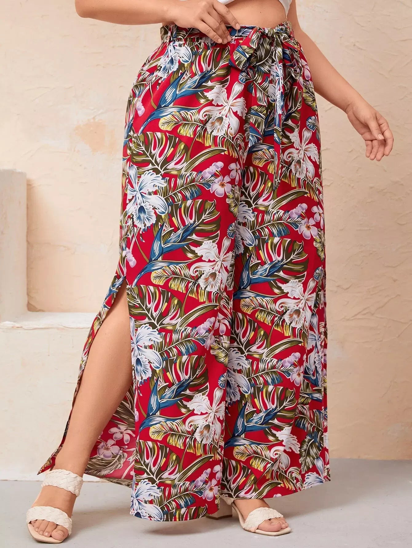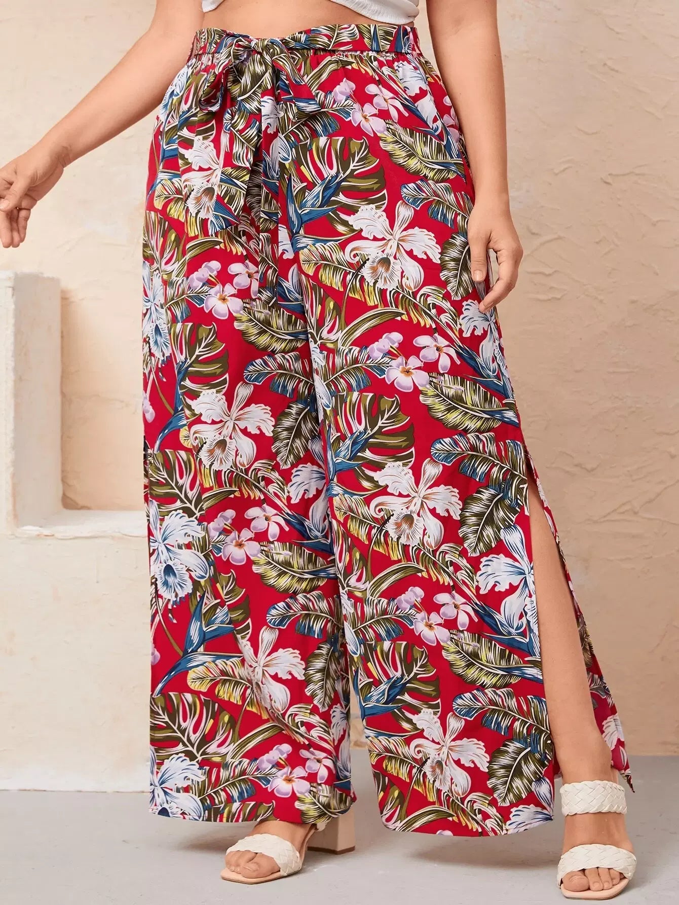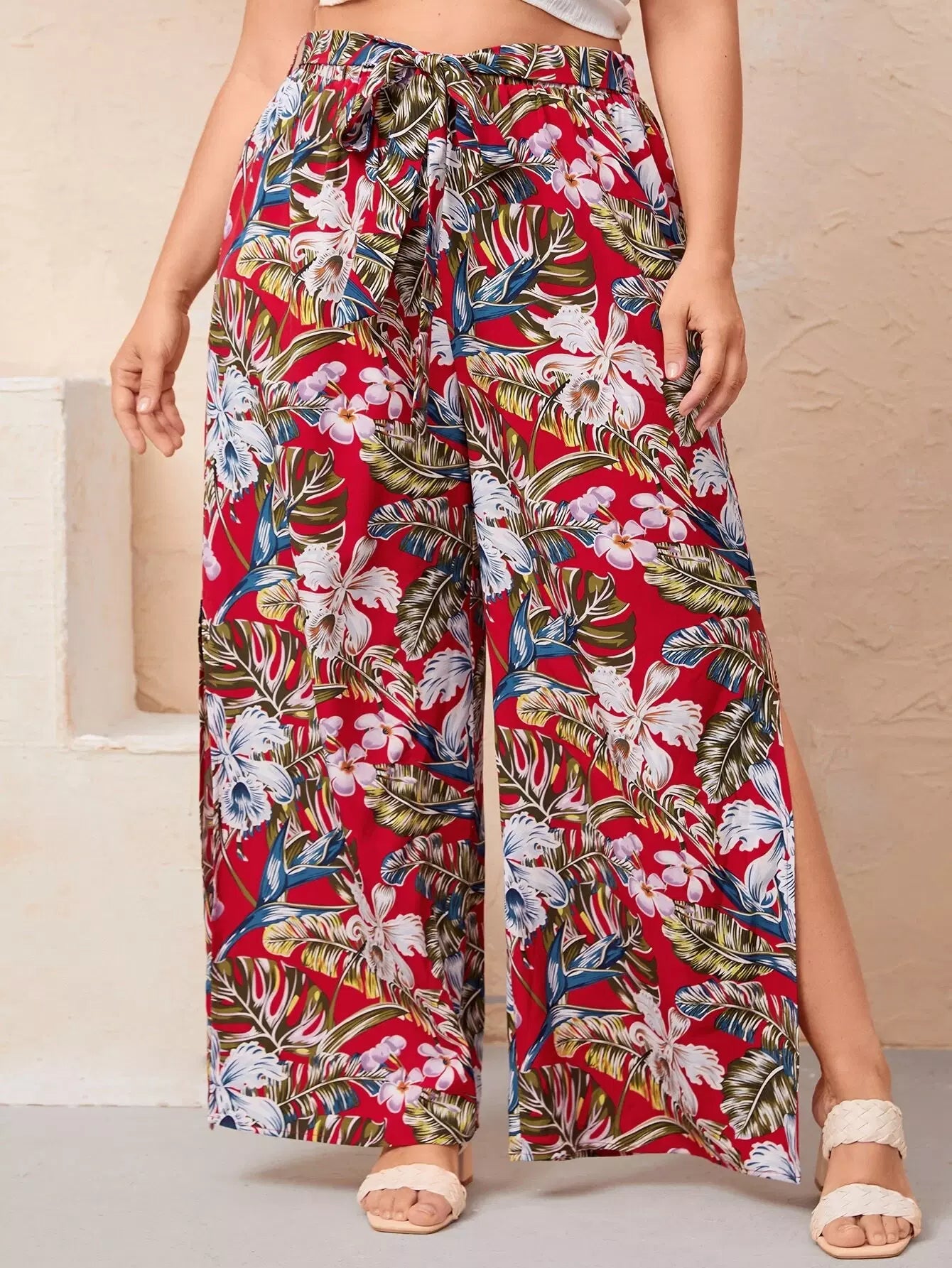 بنطلون بطبعة استوائية زائد بطبعة استوائية مقسم الجانب عريض الساقين