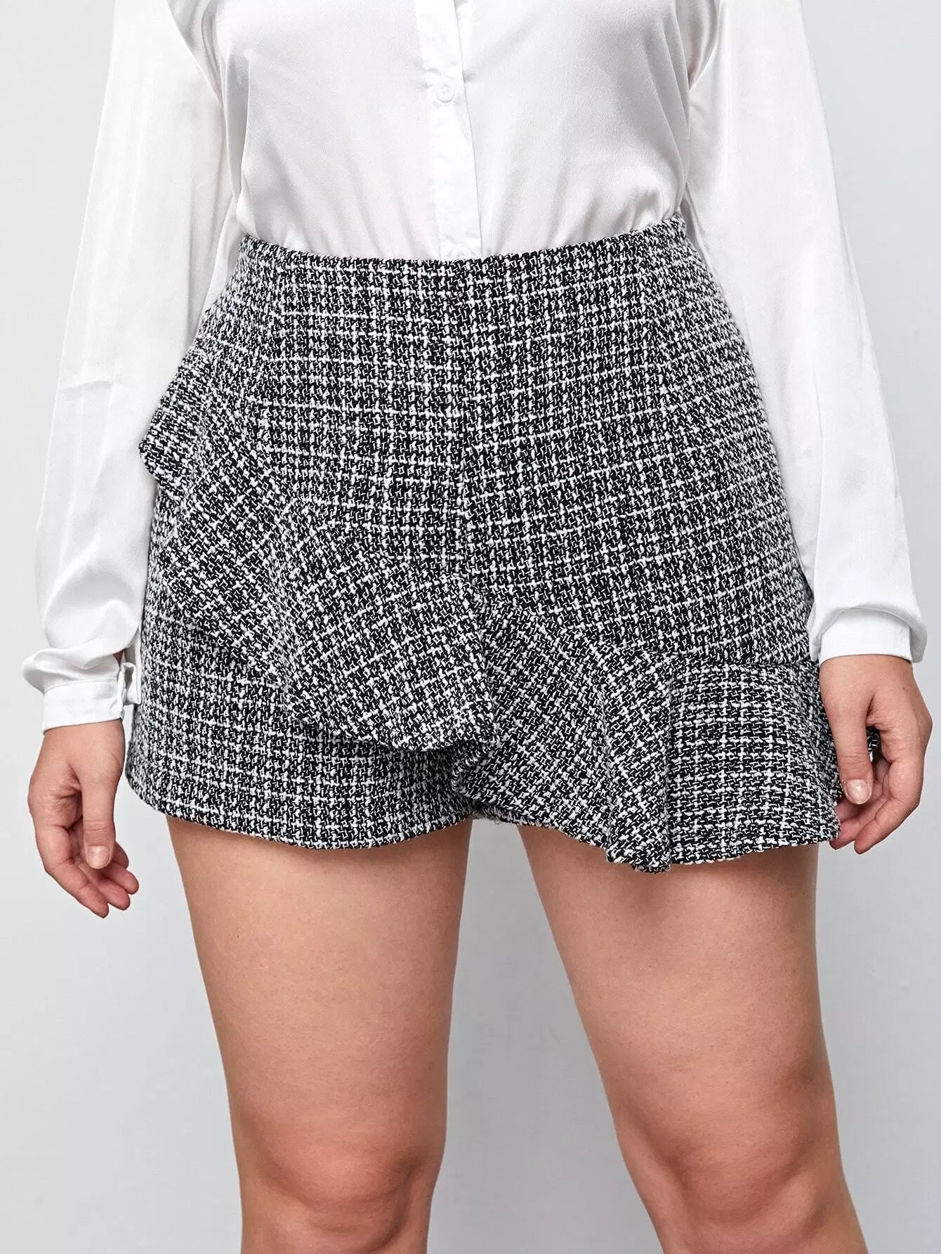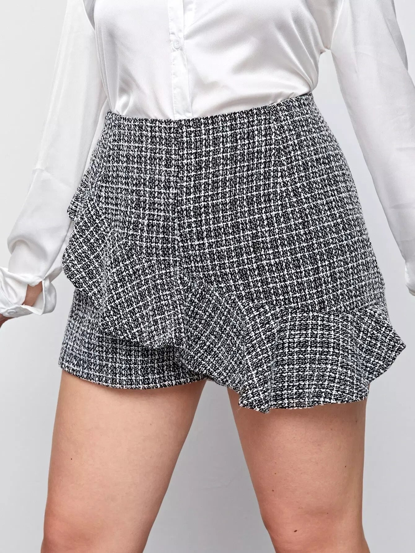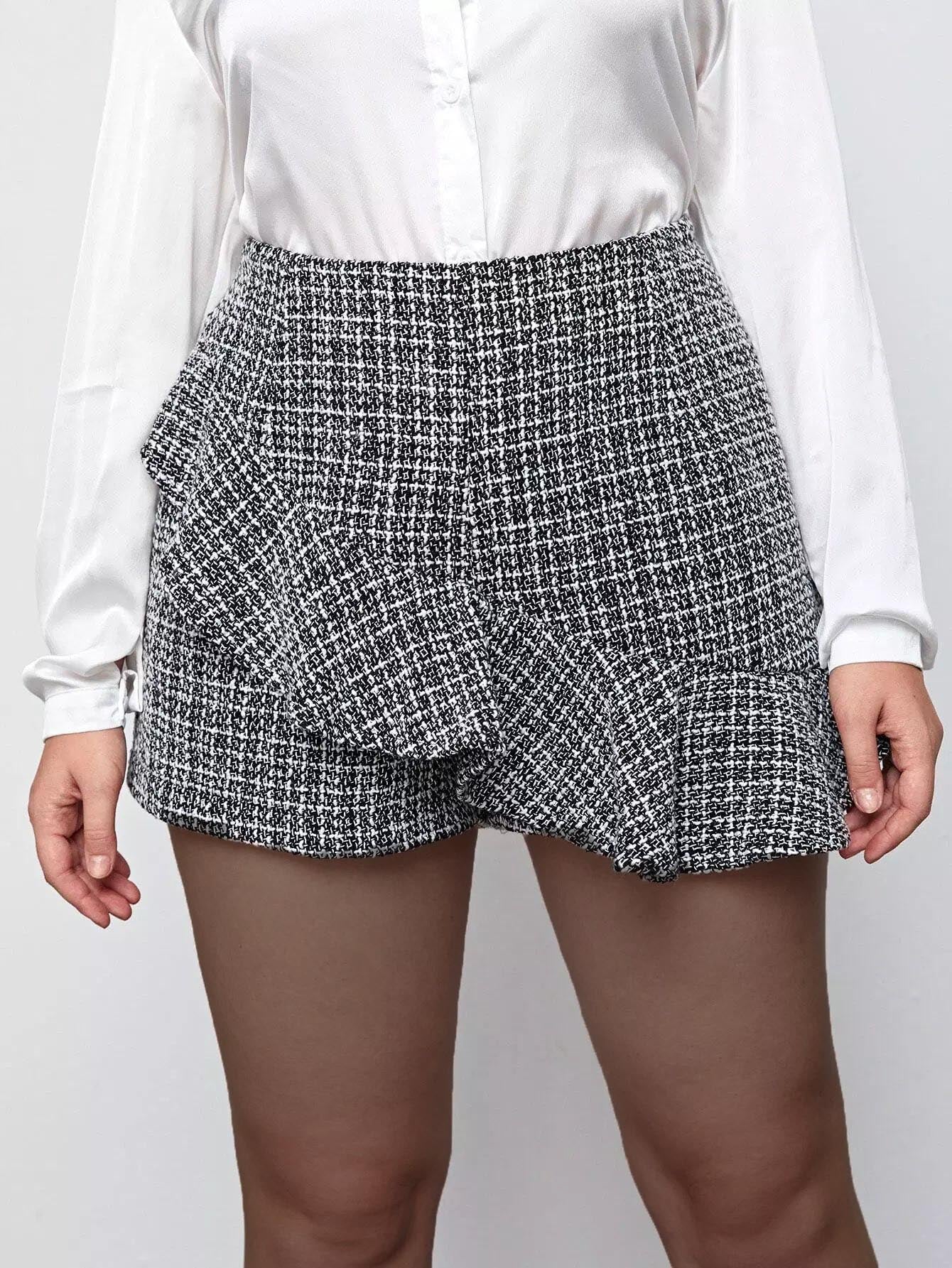 شورت بلاس تويد منقوش مزين بكشكش منقوش