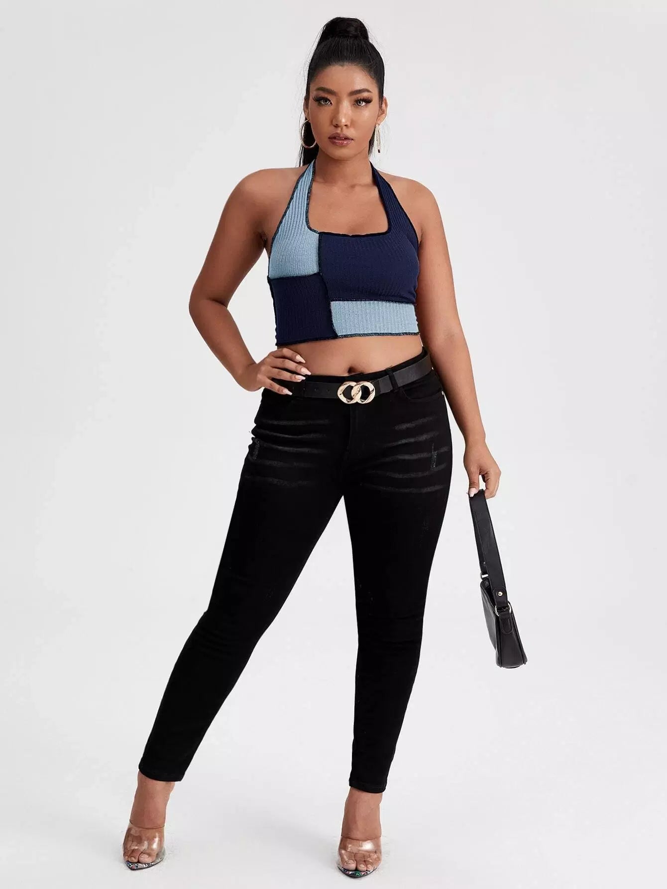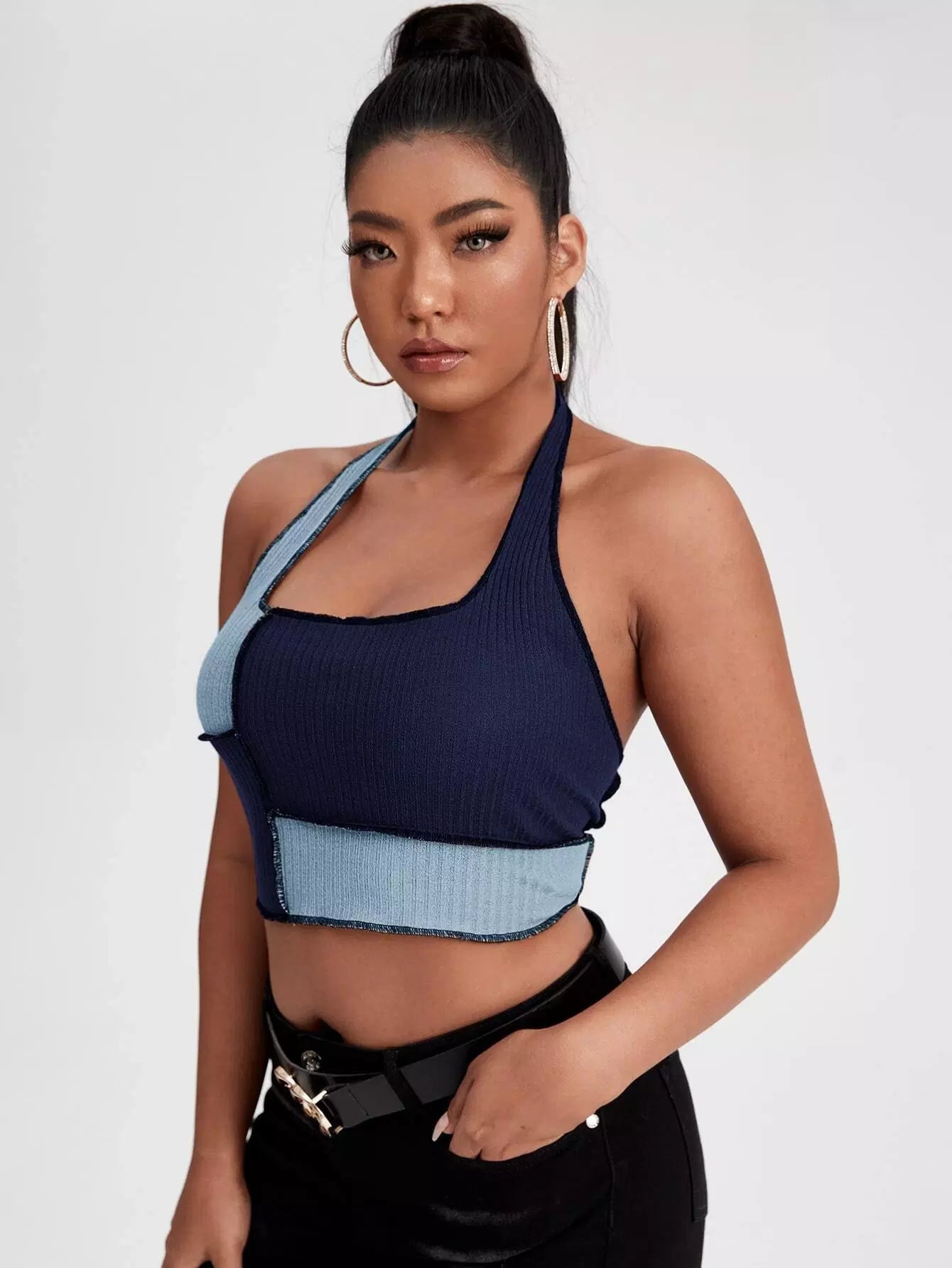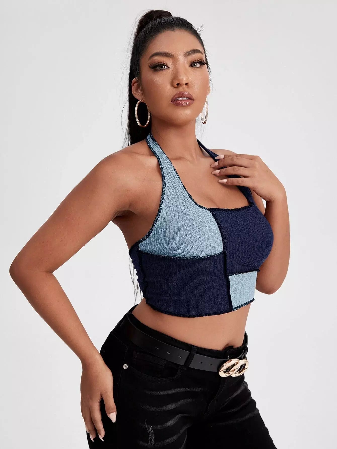 بلوزة بحياكة بلوزتين بلونين بلونين متباين