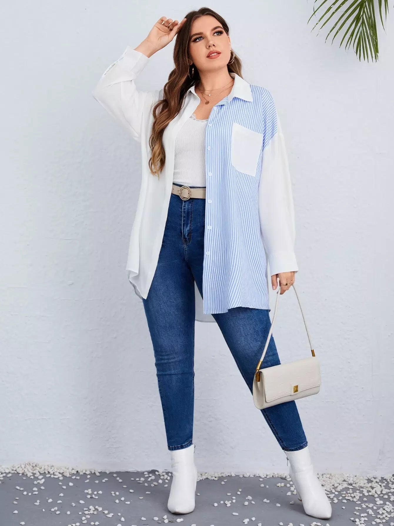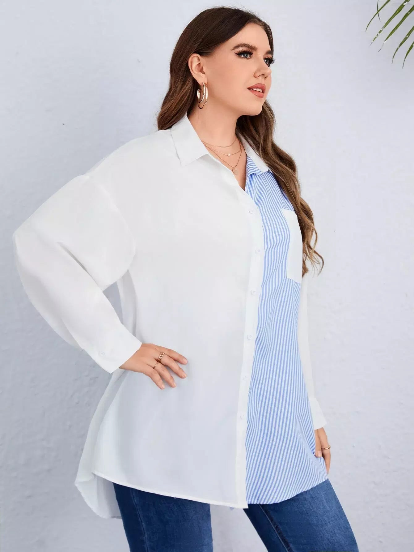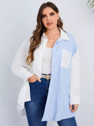 بلوزة بلوزة طويلة بجيبين أمامية طويلة من الأمام بلونين بلس بلوزتين بلونين بلس
