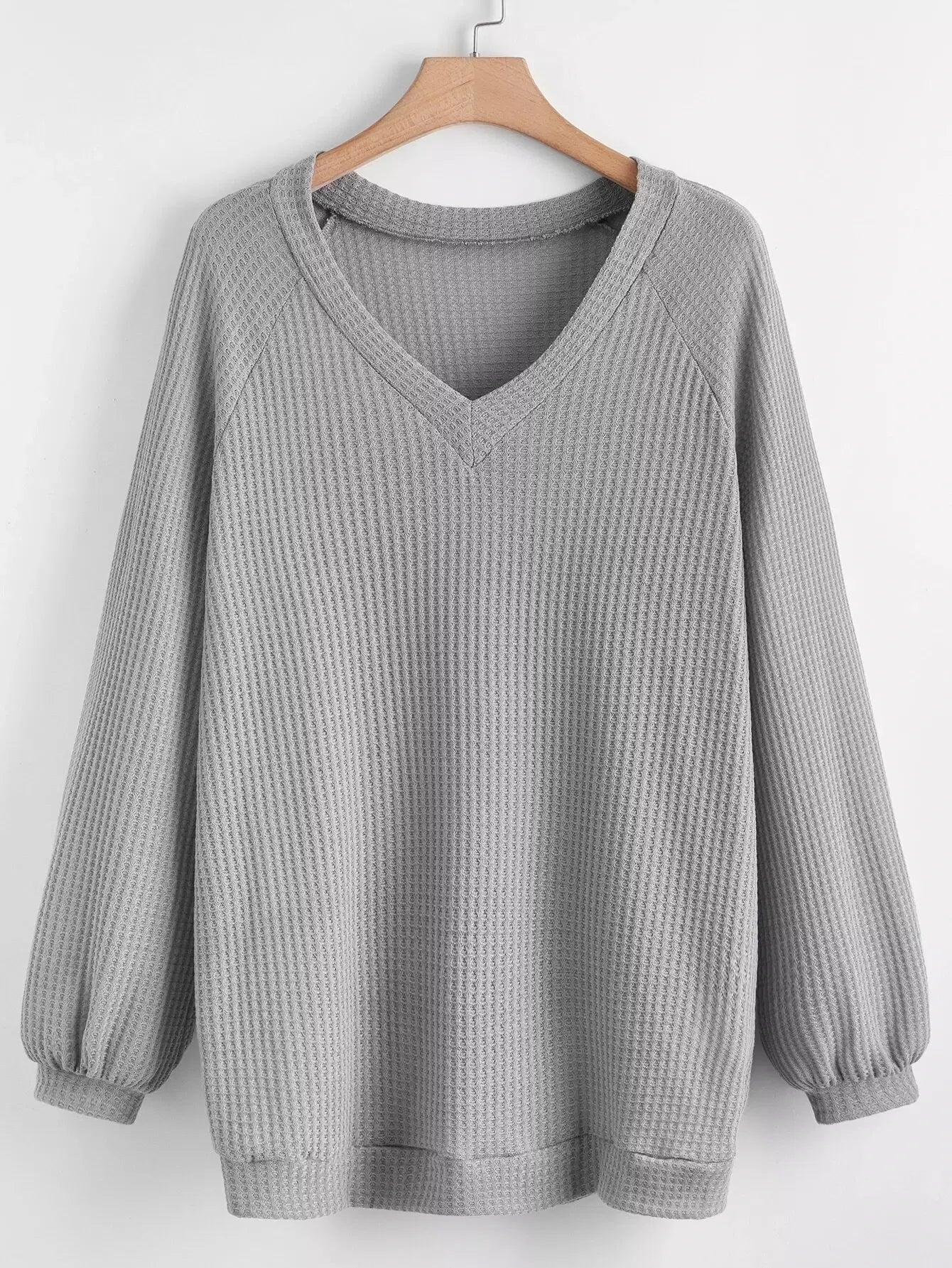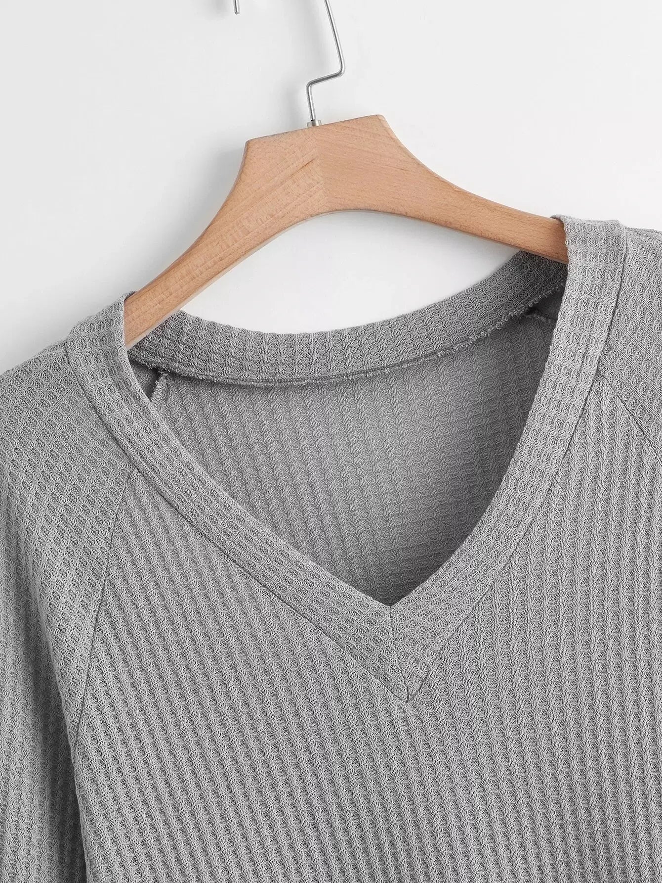 سويت شيرت بياقة على شكل حرف V بأكمام على شكل حرف V