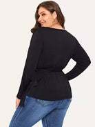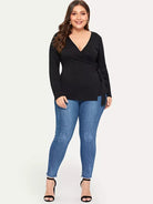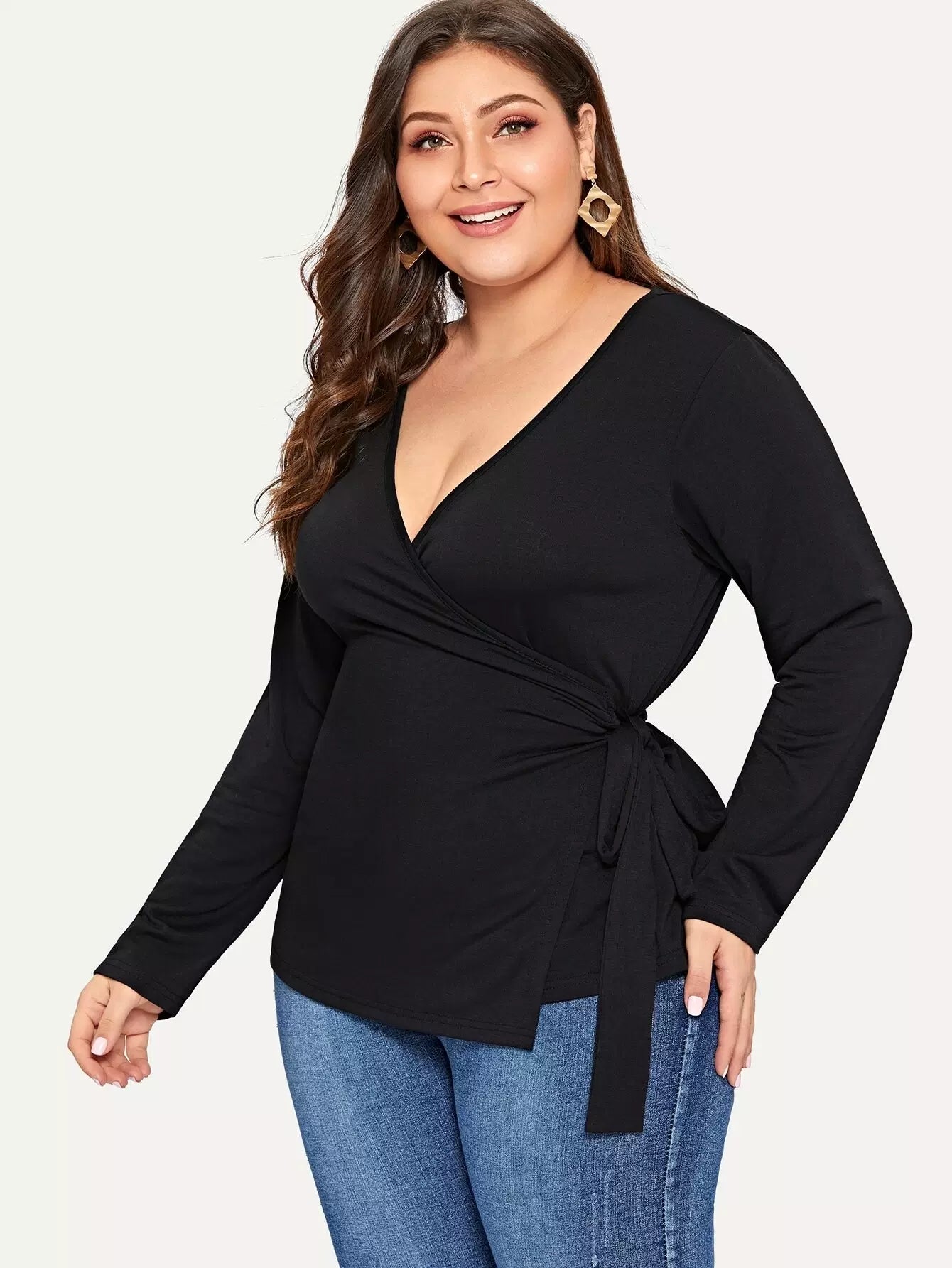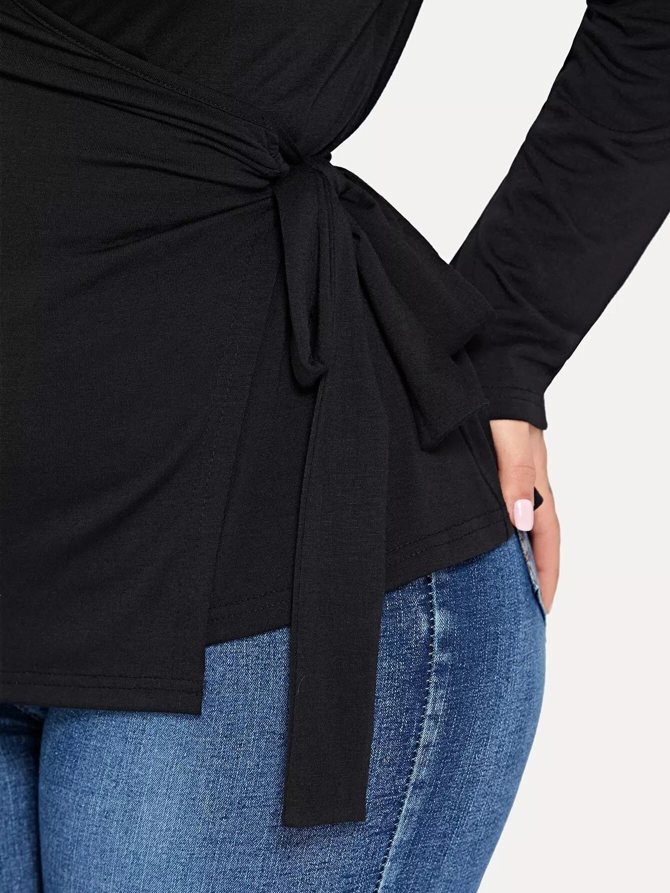 بلوزة ملفوفة بربطة عنق ذات ربطة عنق ذاتية بلاس