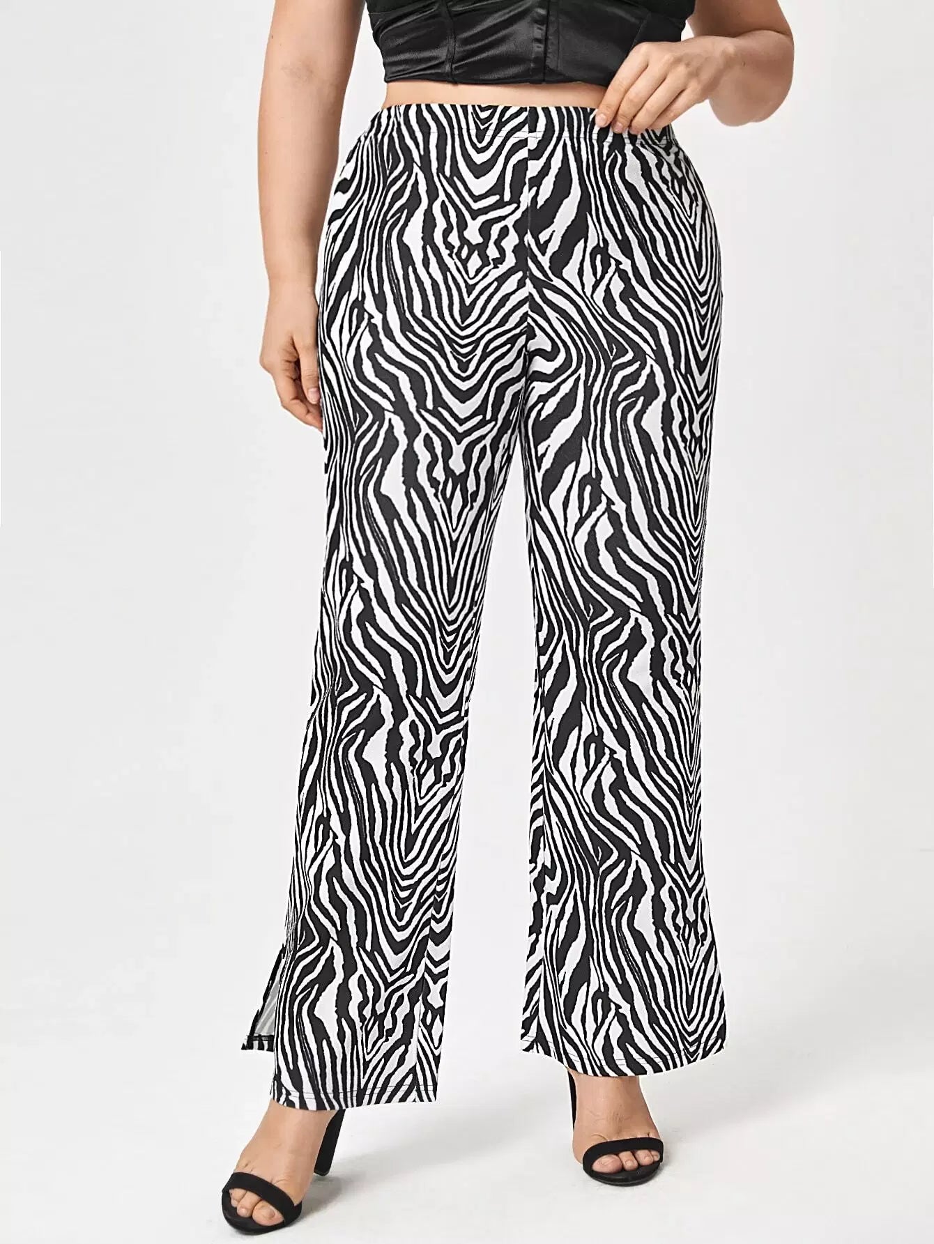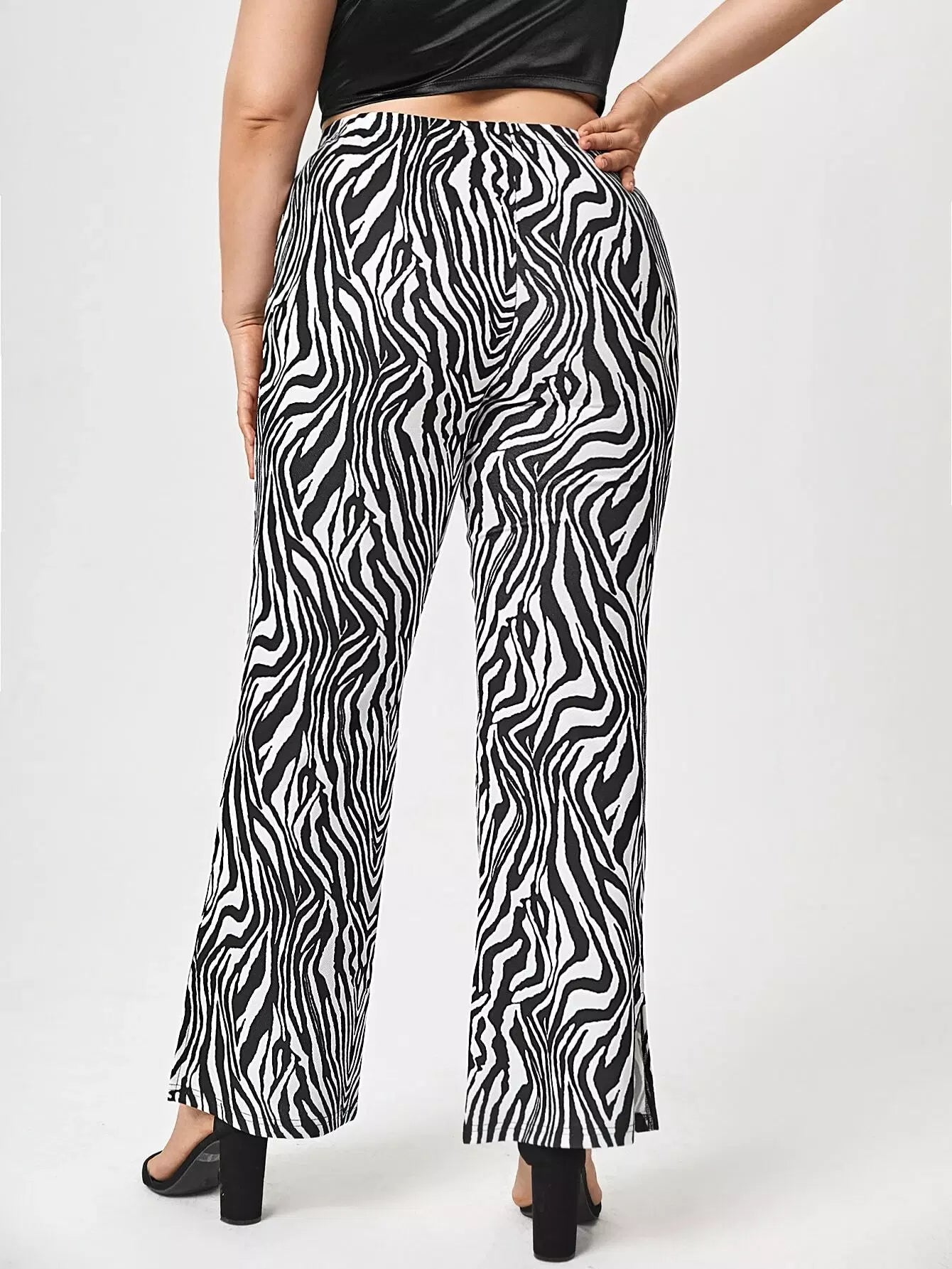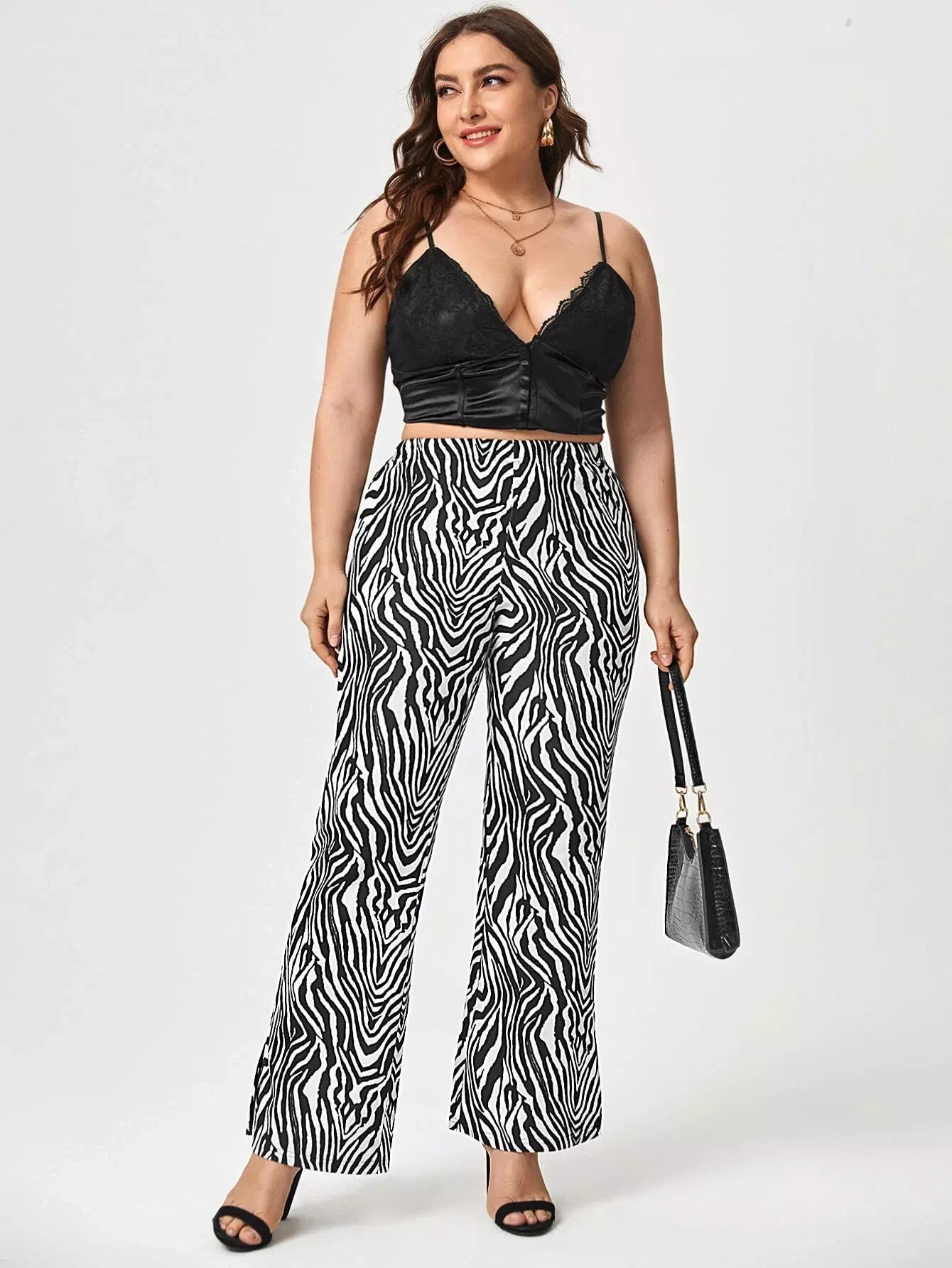 نحيف - مقاس كبير بنطال بالازو مخطط بحاشية زيبرا