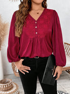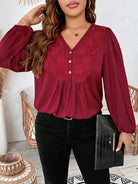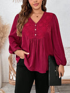women SHEIN LUNE Plus Size Women V-Neck Bubble Sleeve Casual Minimalist Shirt