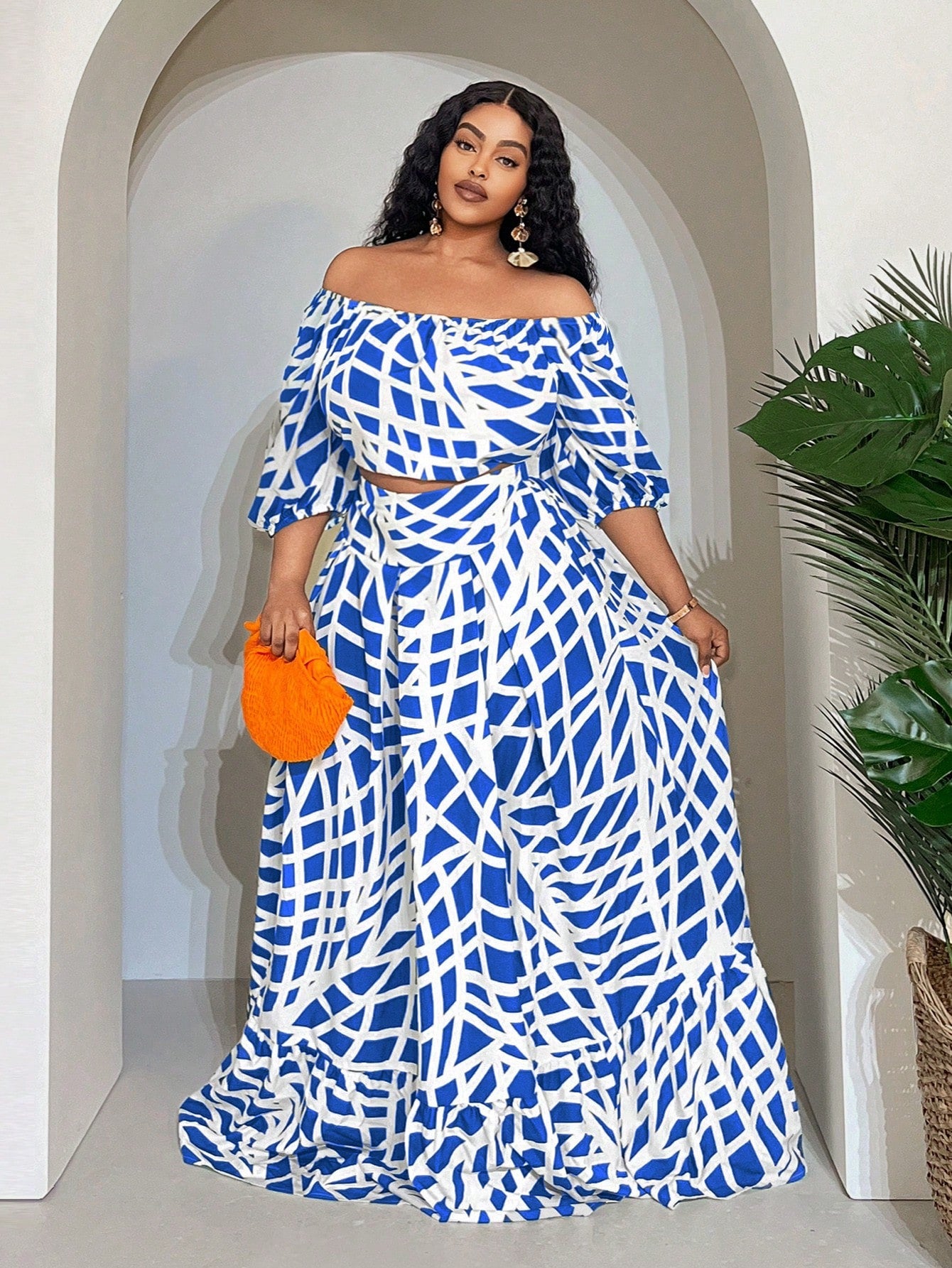 Veslaya Plus Size Women Two Pieces Set With Off Shoulder And Flared Hem