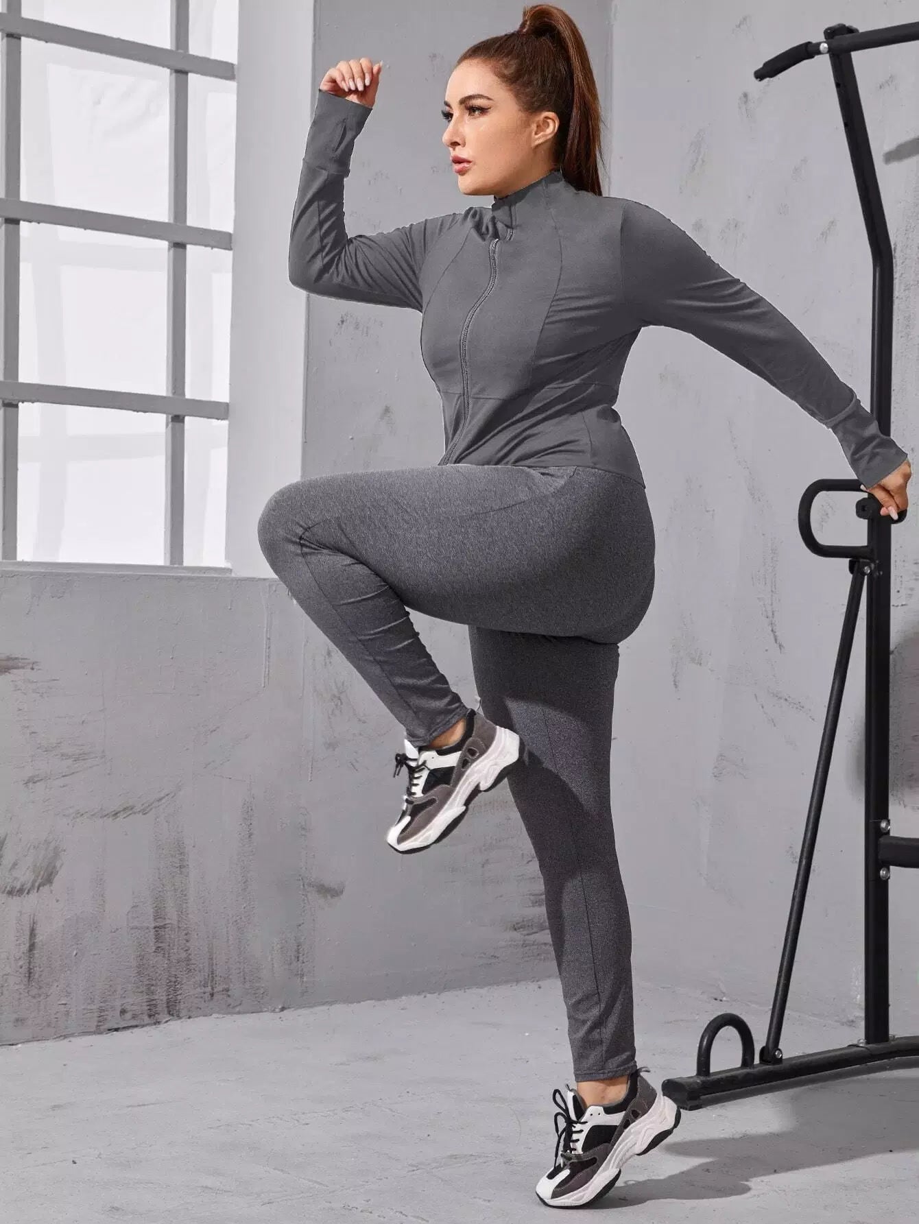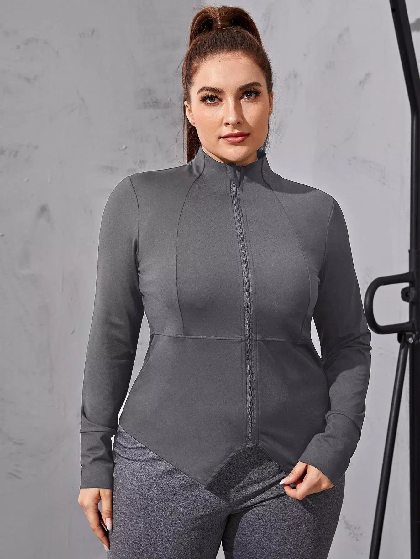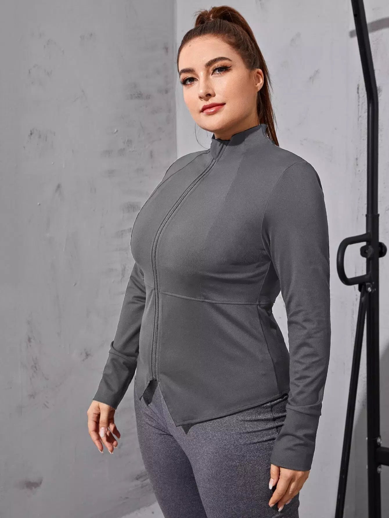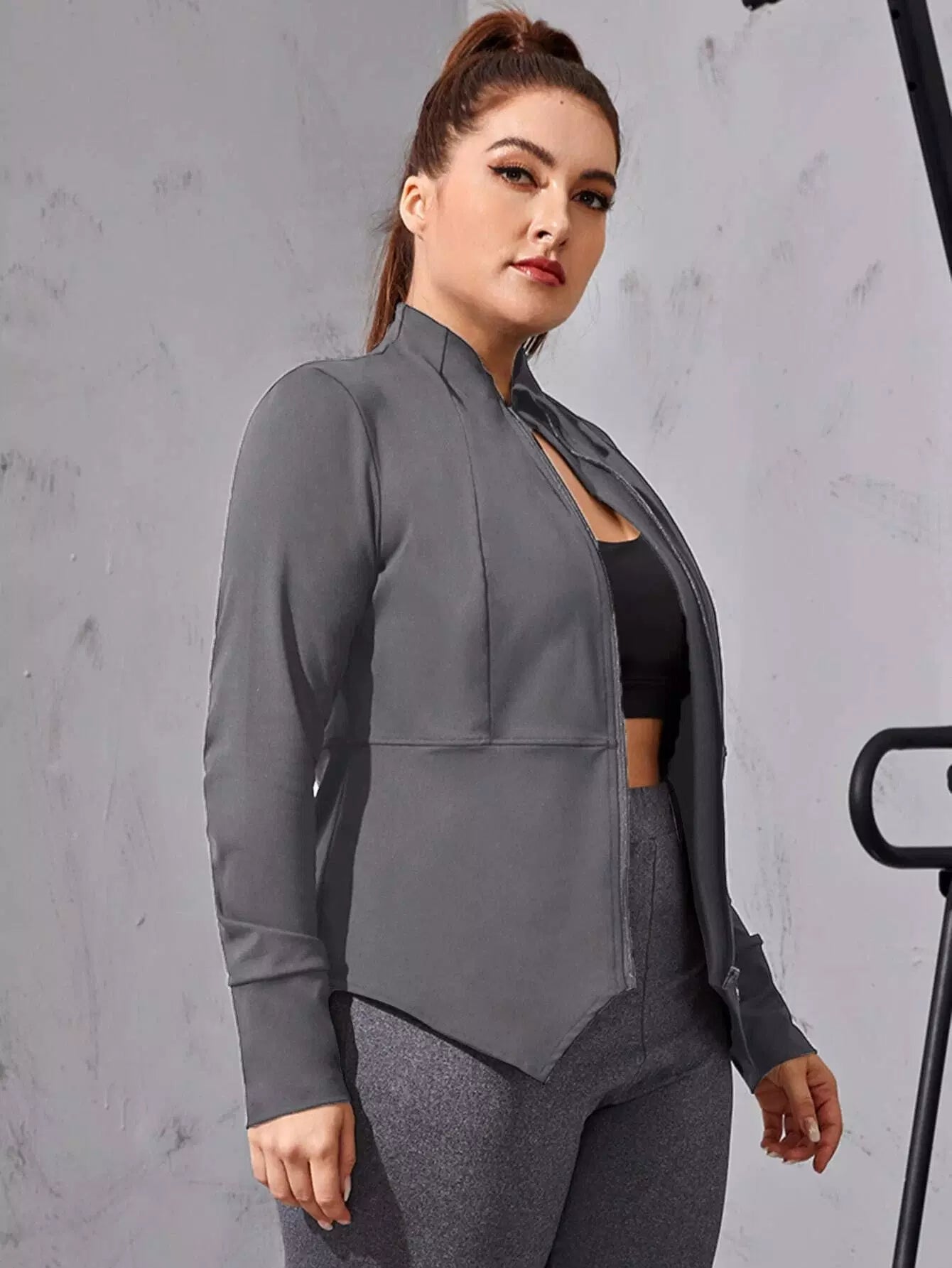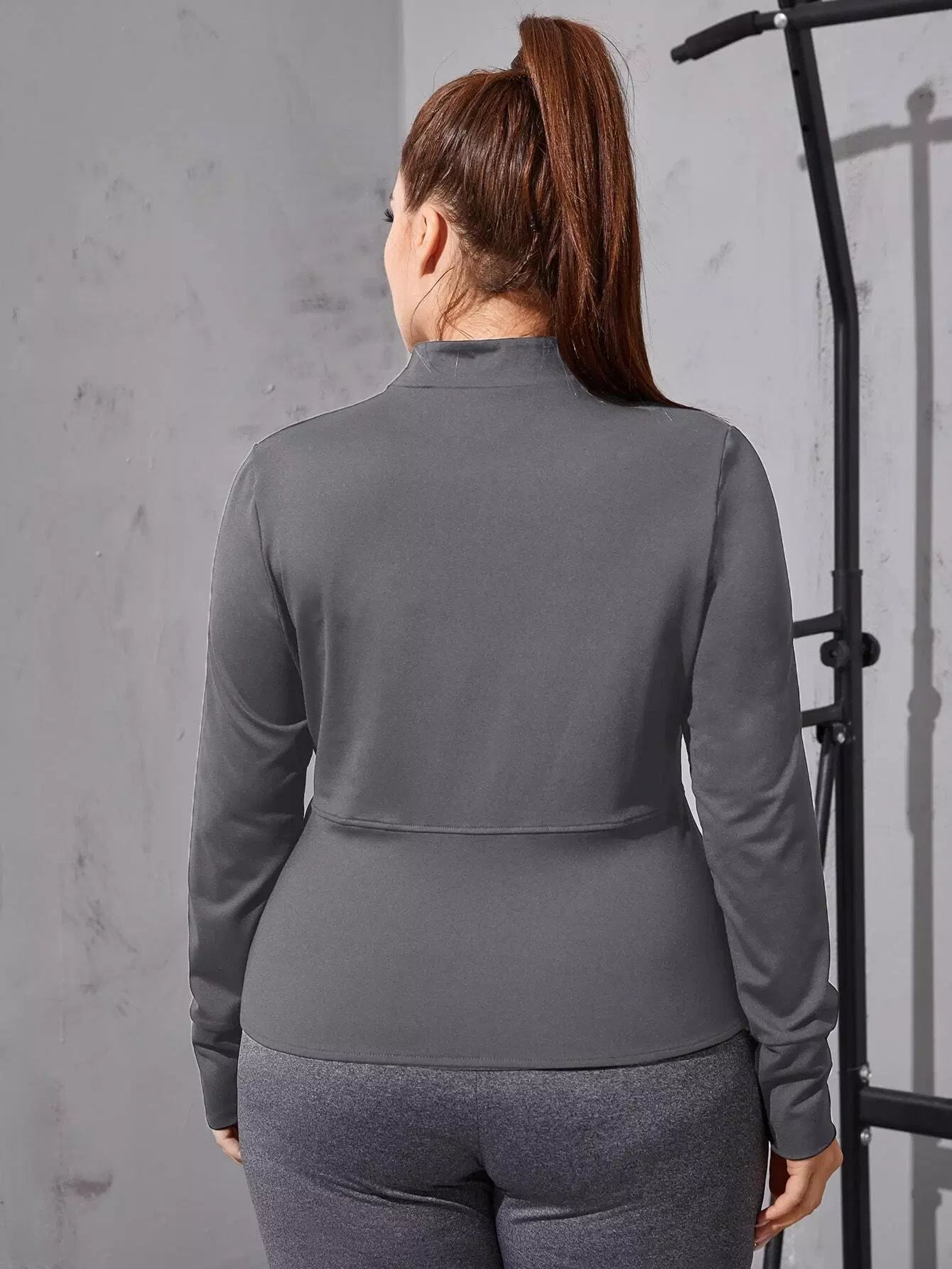 نحيف - مقاس كبير بلوزة رياضية بسحاب وحاشية غير متماثلة