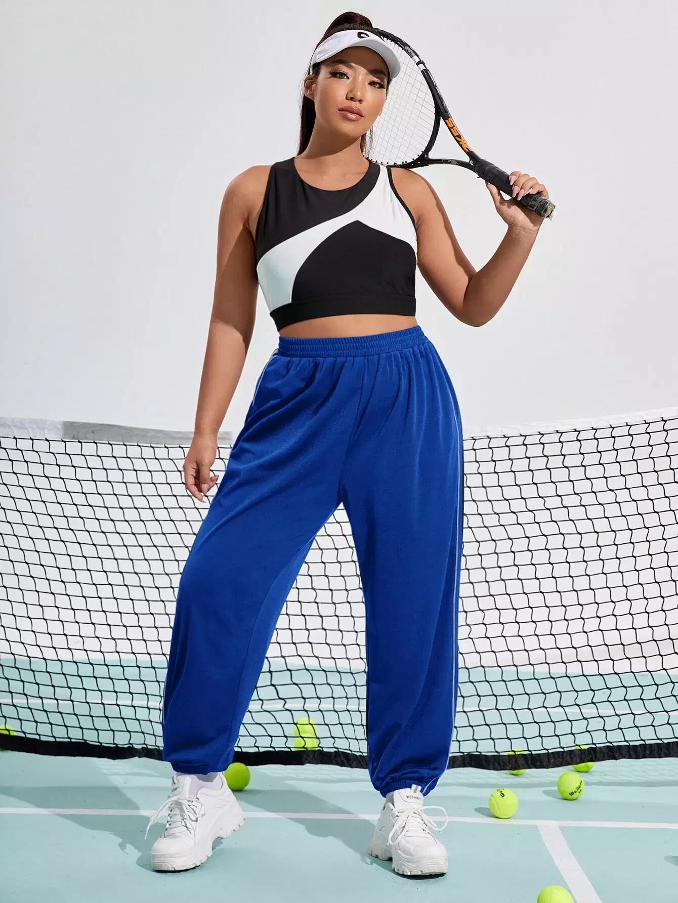 نحيف - مقاس كبير بنطال رياضي للتنس ذو أربطة متباينة