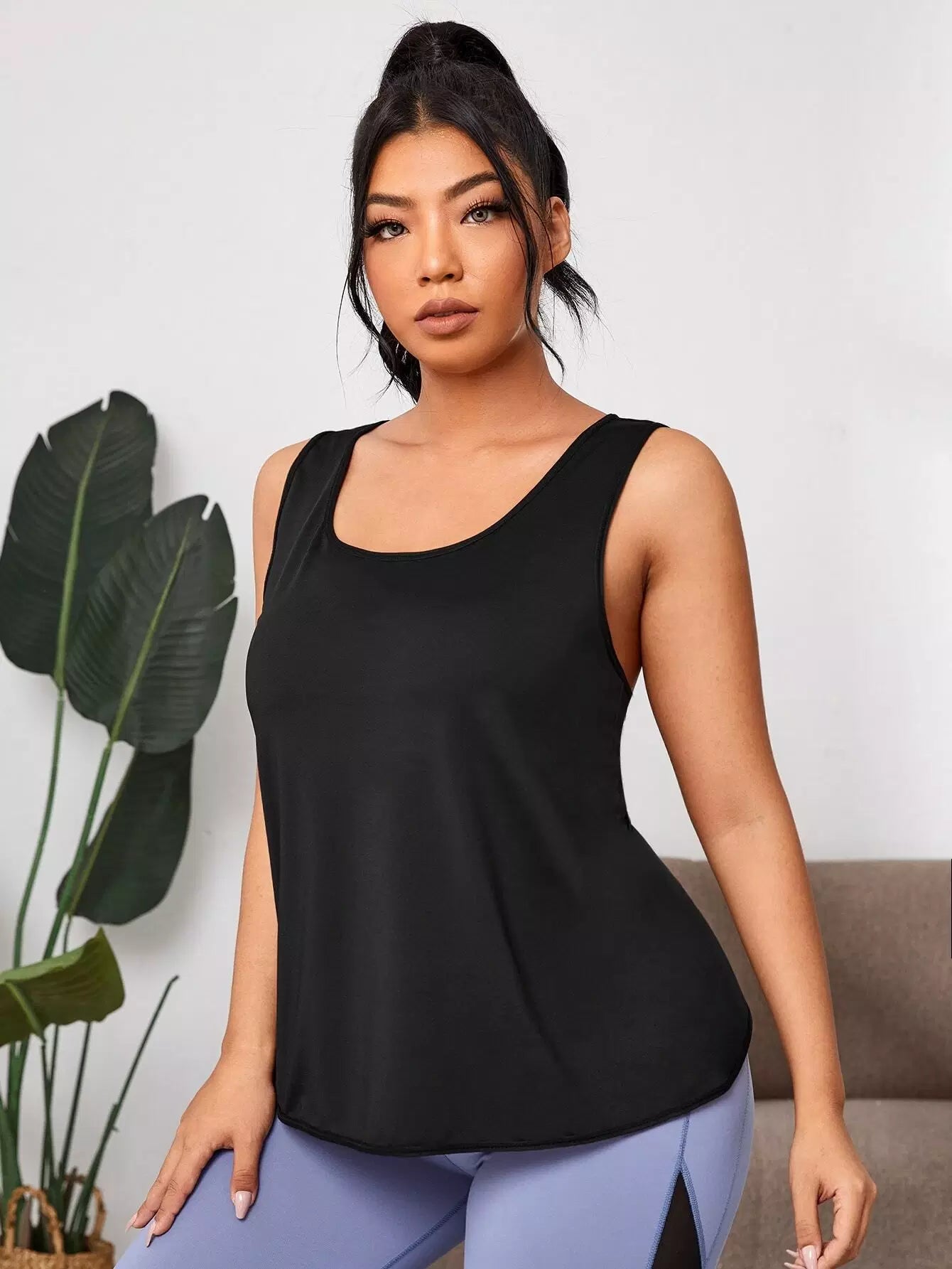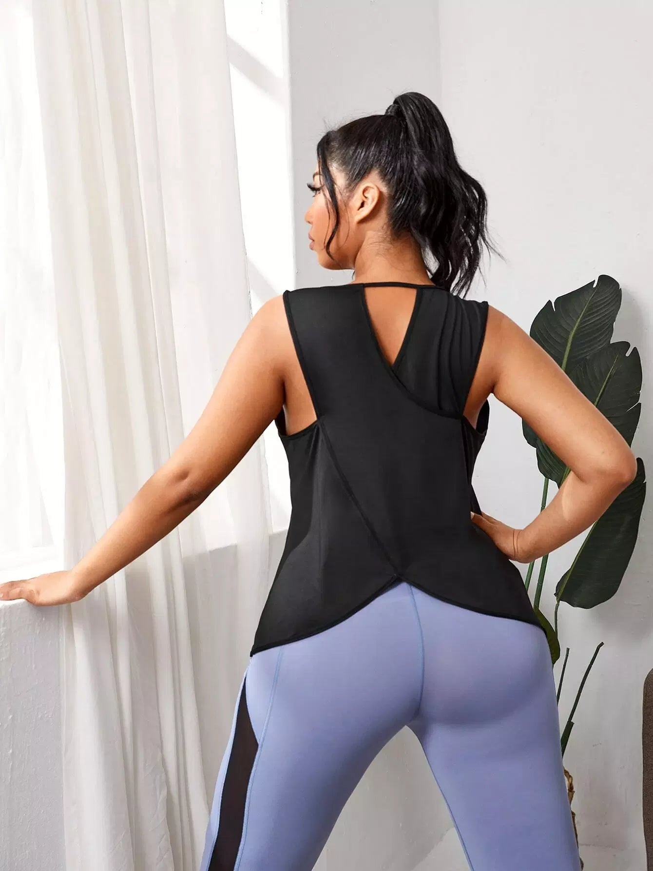 بلوزة رياضية بدون أكمام قصيرة بقصّة من الخلف