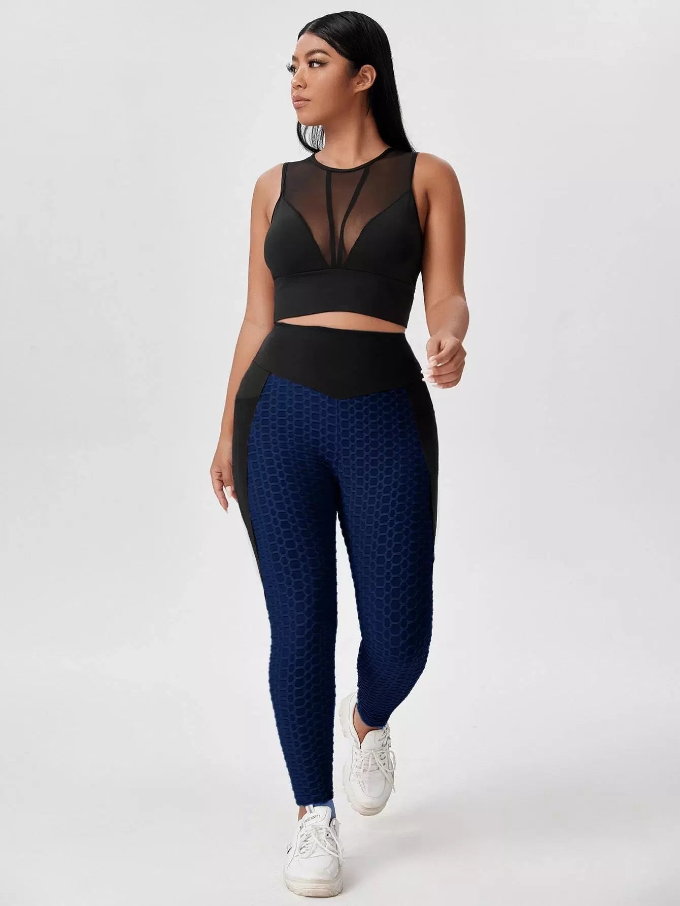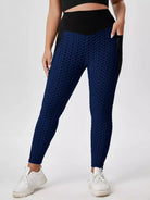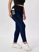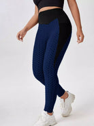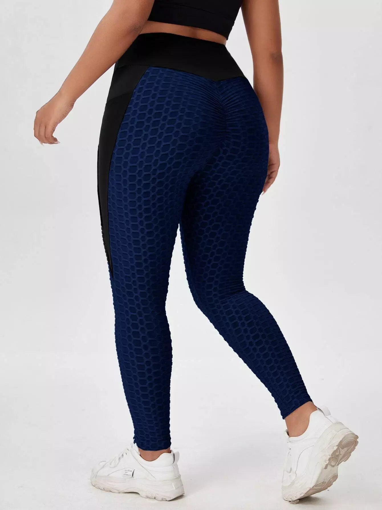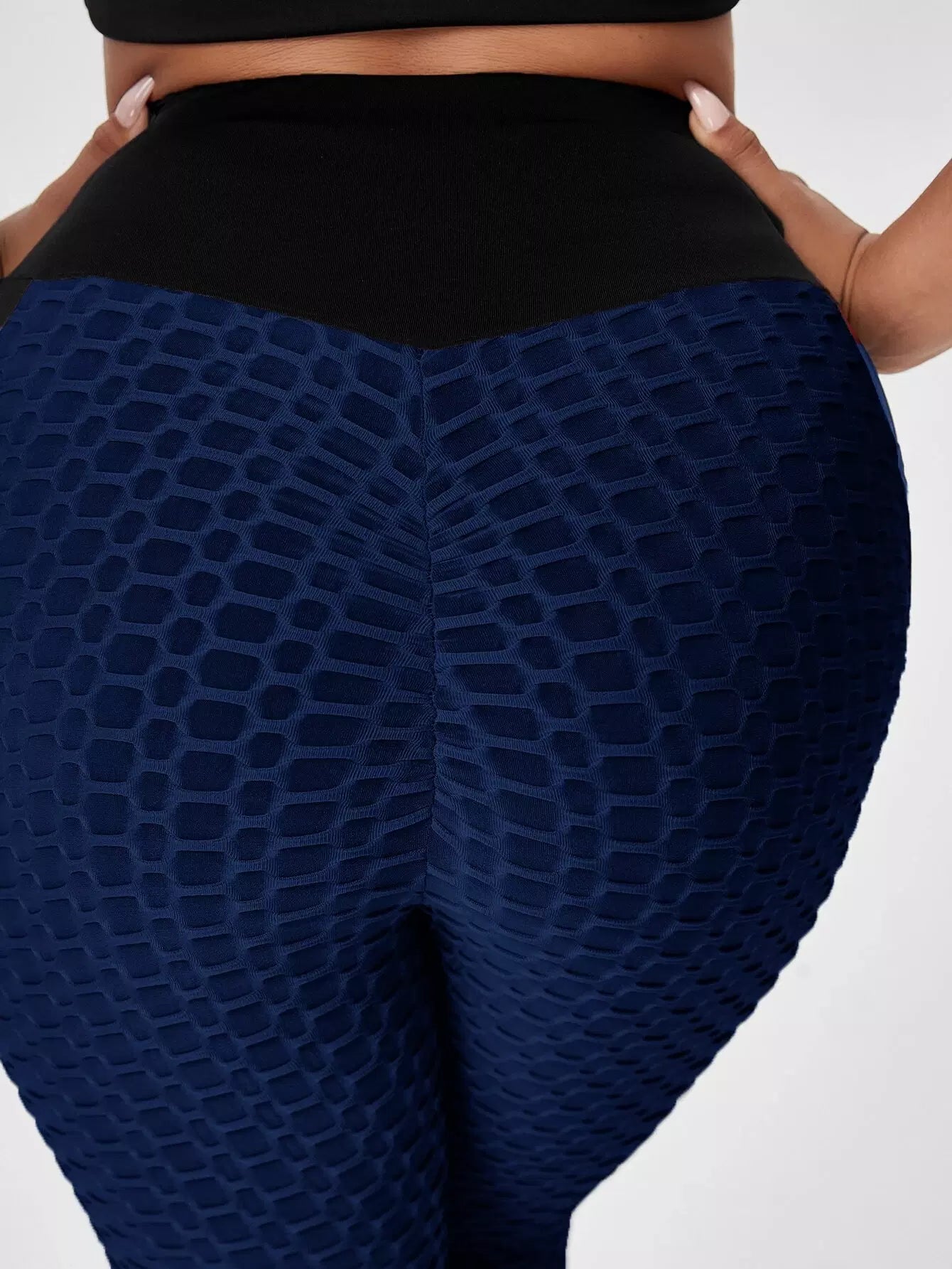 بنطال ضيق رياضي بنقشة قرص العسل المطاطي رباعي الاتجاهات مع جيب للهاتف