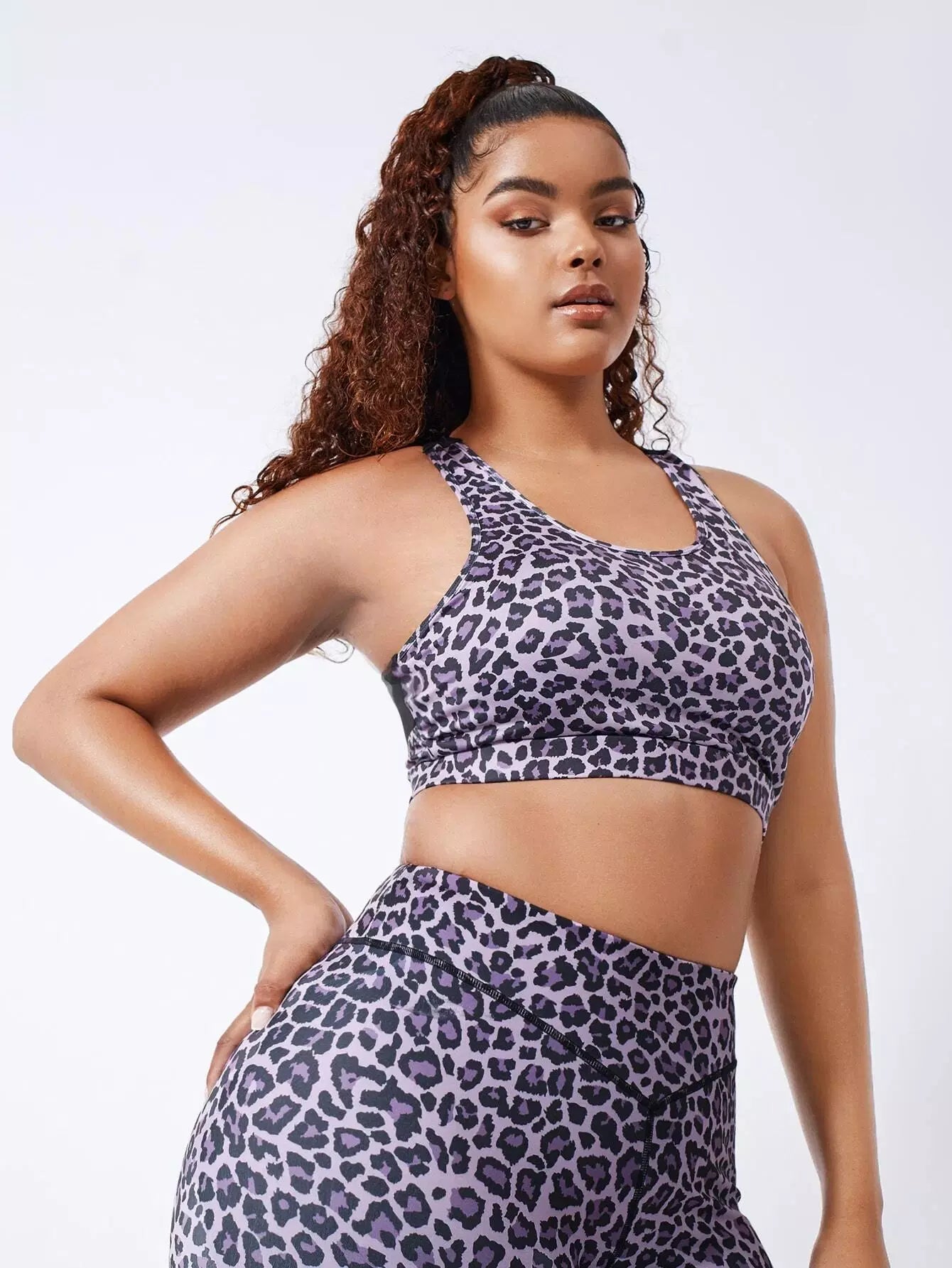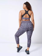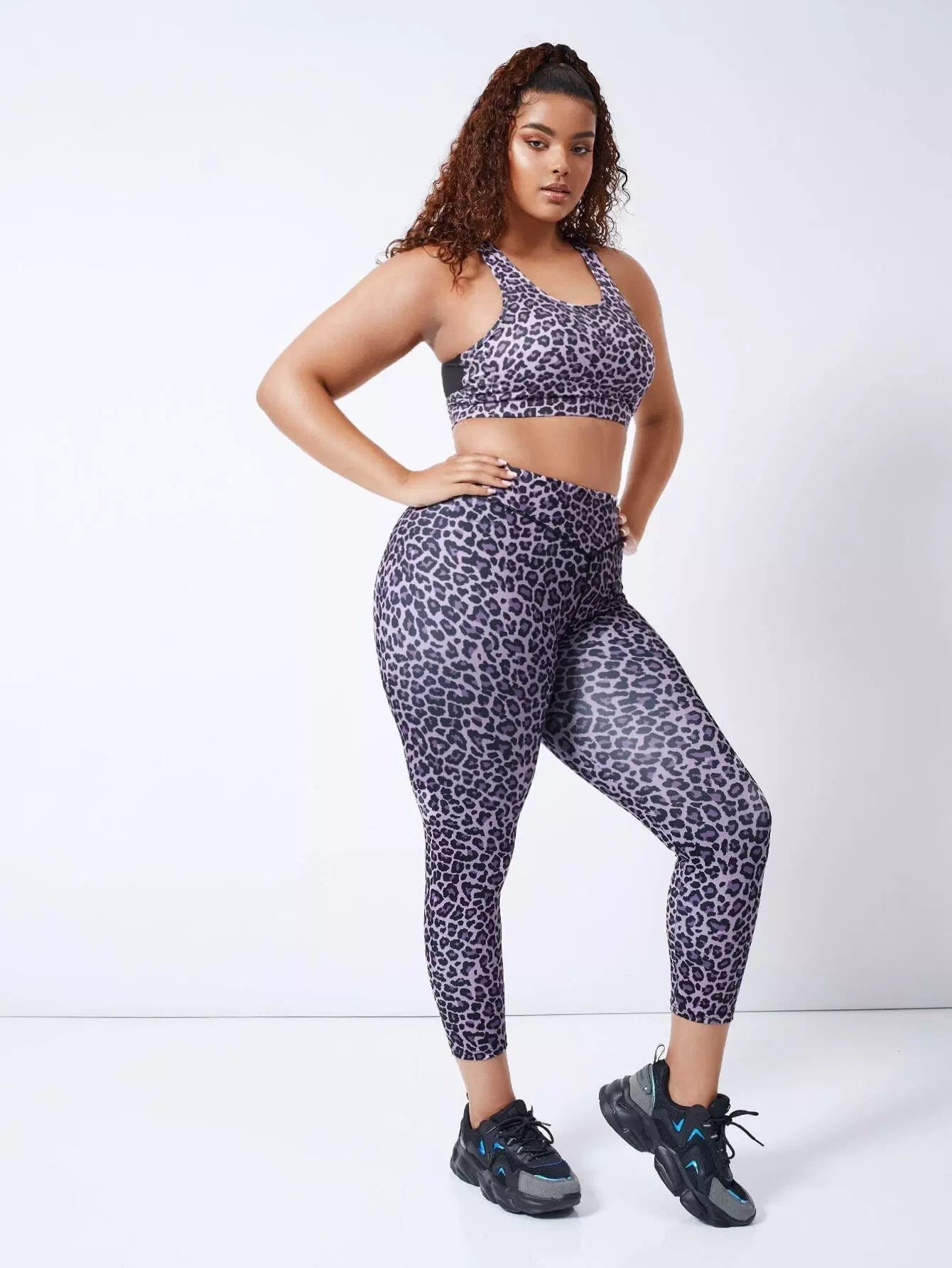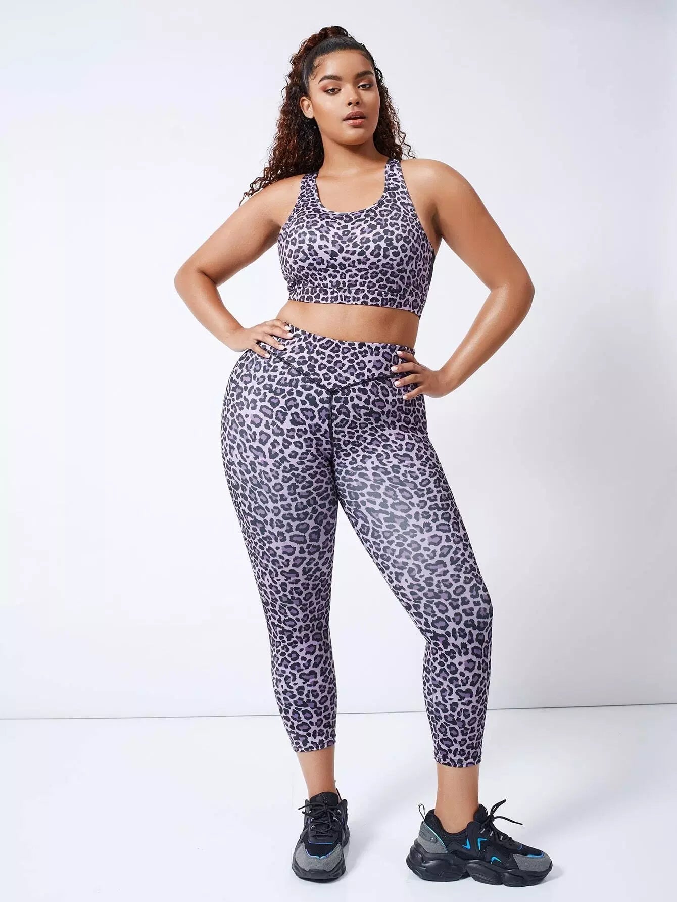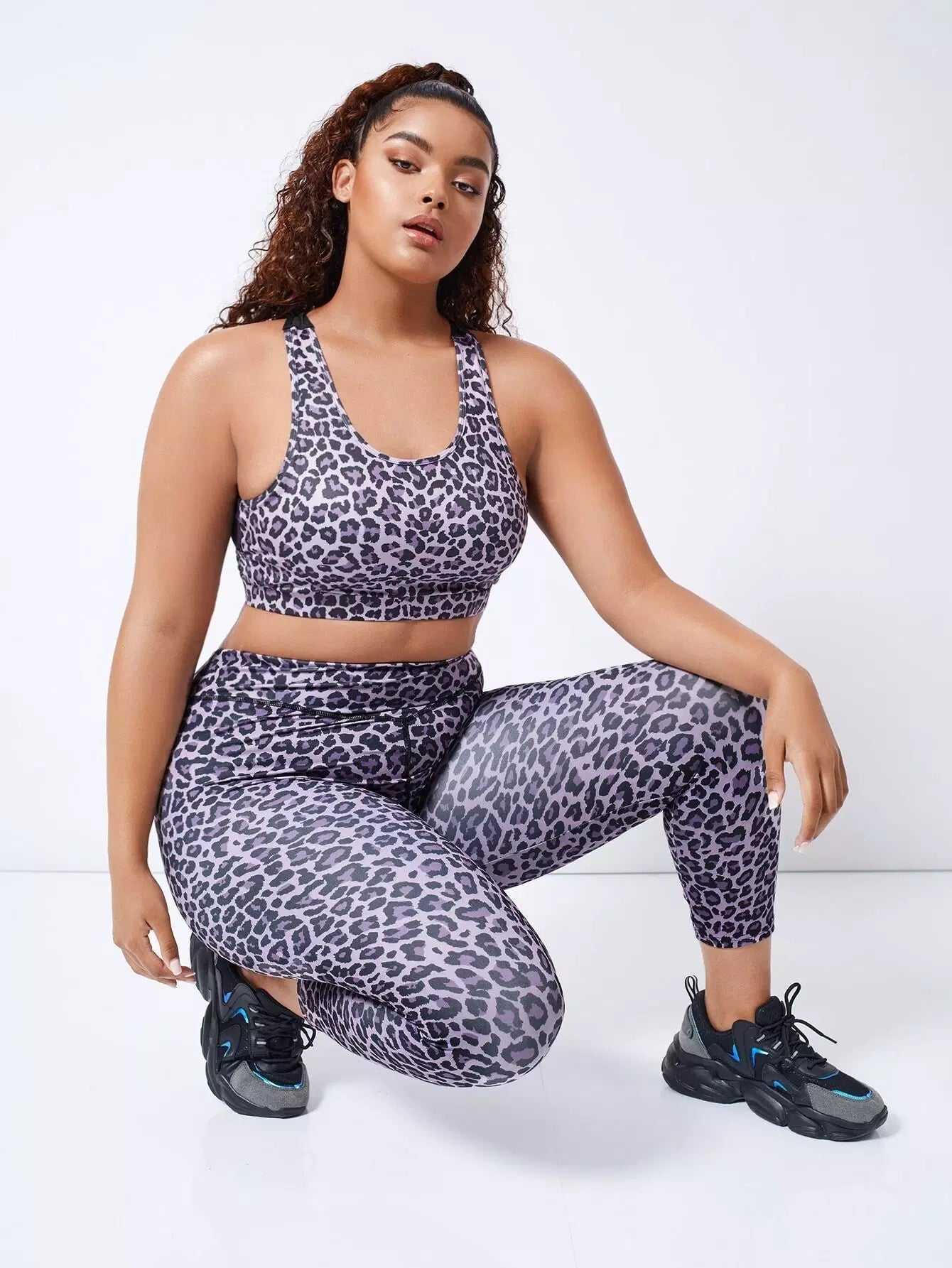 حمالة صدر رياضية بقص من الخلف وبنطال رياضي ضيق بطبعة جلد الفهد
