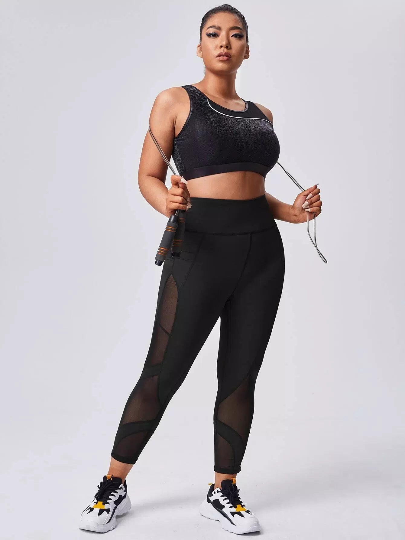 نحيف - مقاس كبير طماق رياضية ذات لوحة شبكية