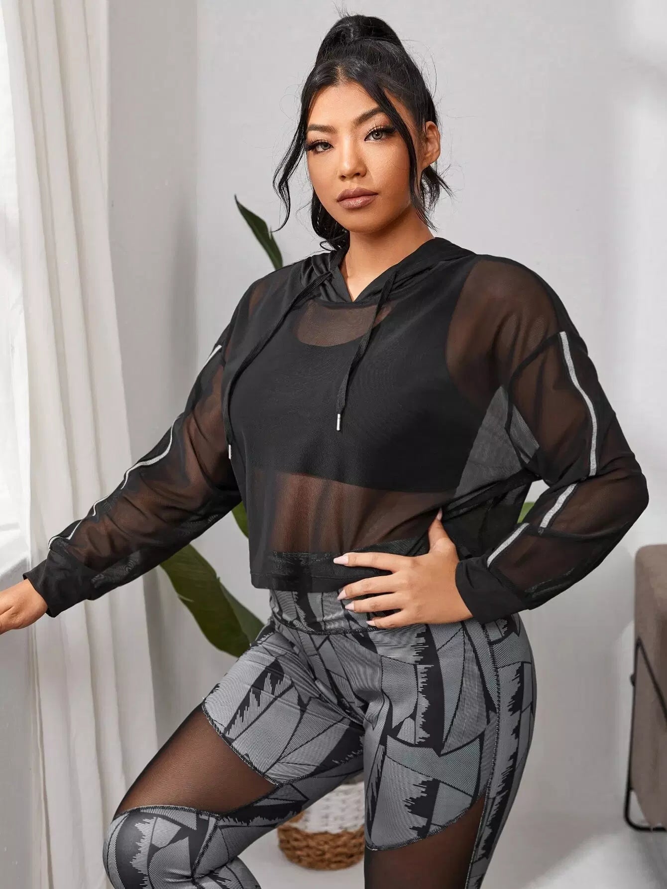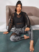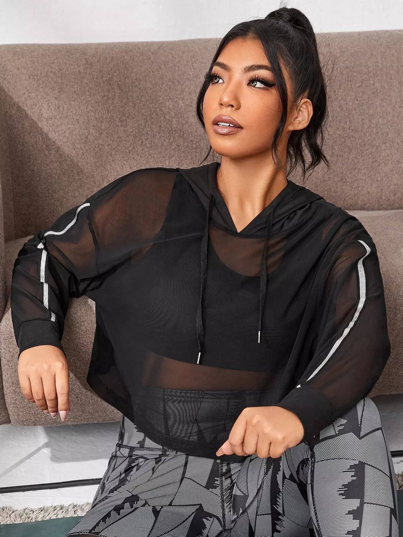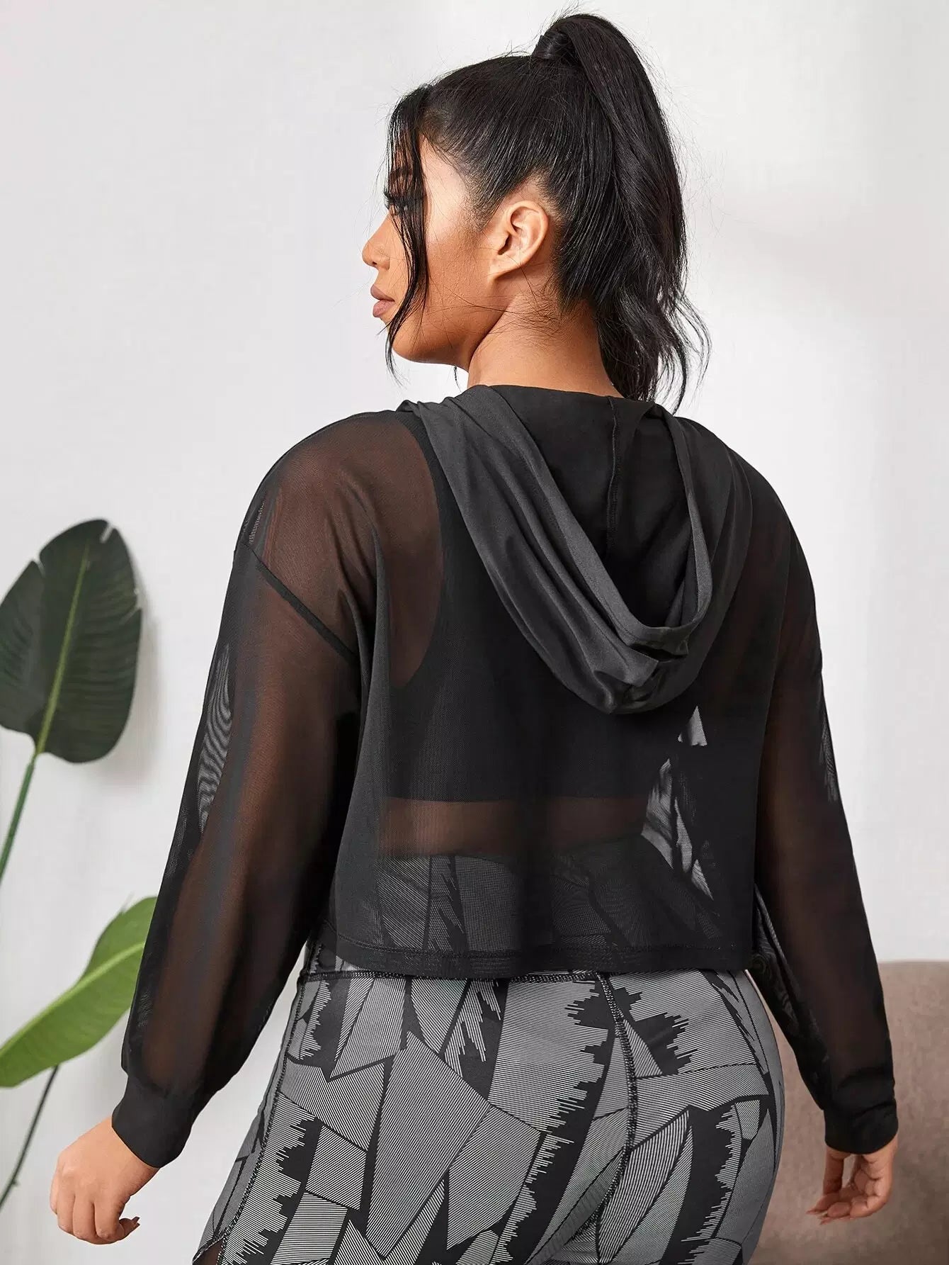 سويت شيرت رياضي بقلنسوة شبكية شفافة بلس