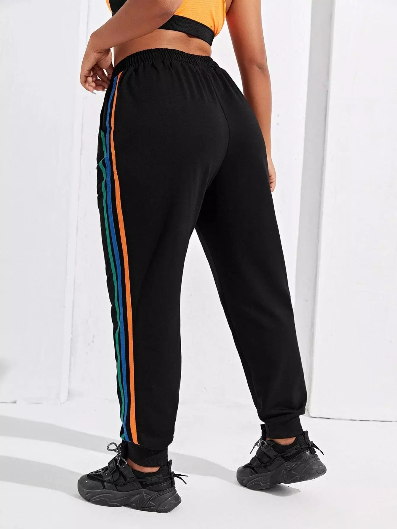 بنطلون رياضي مخطط جانبي زائد برباط رياضي مخطط