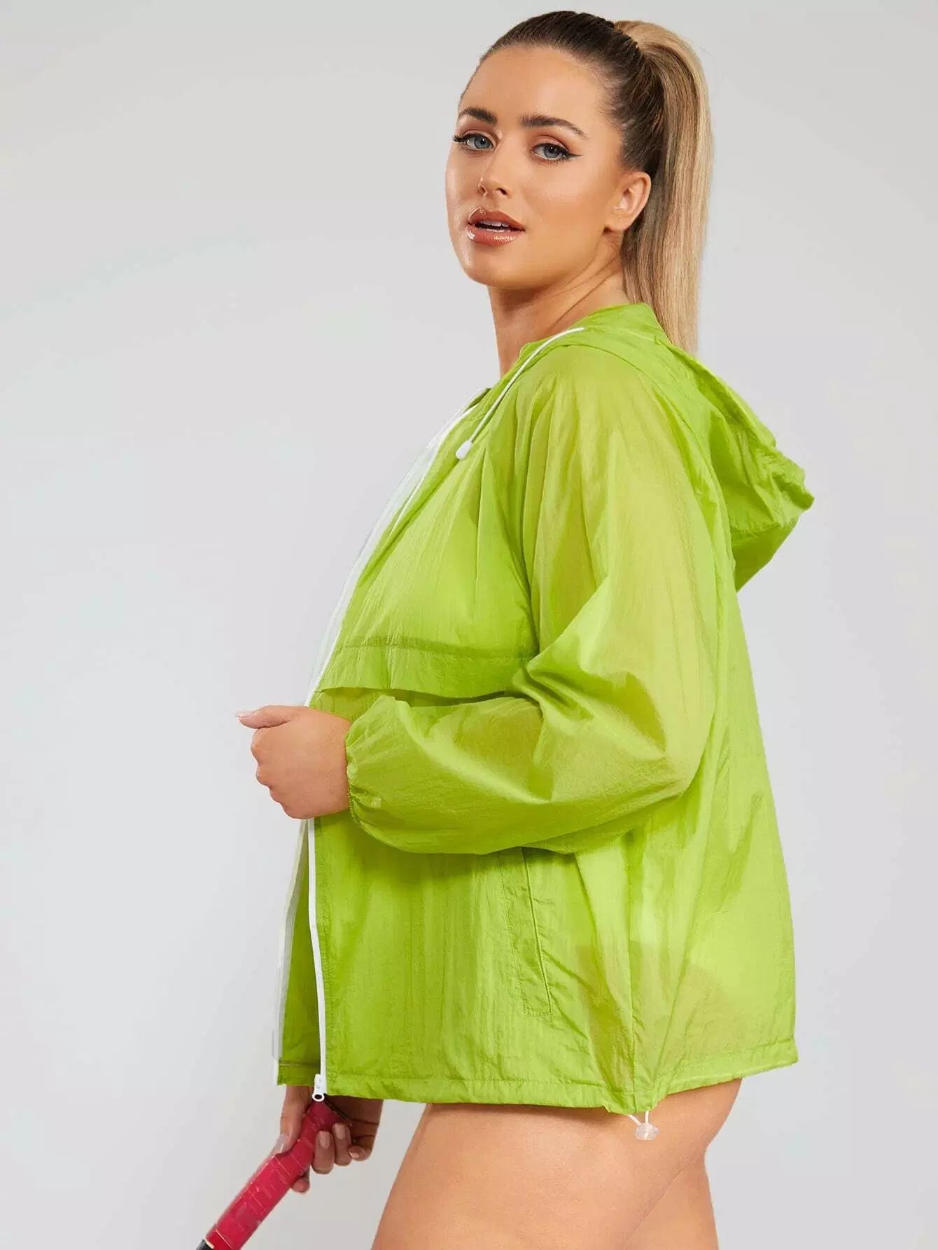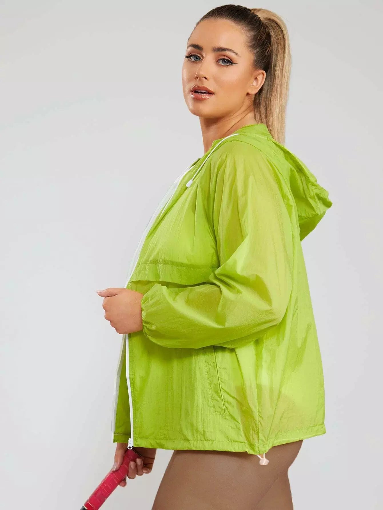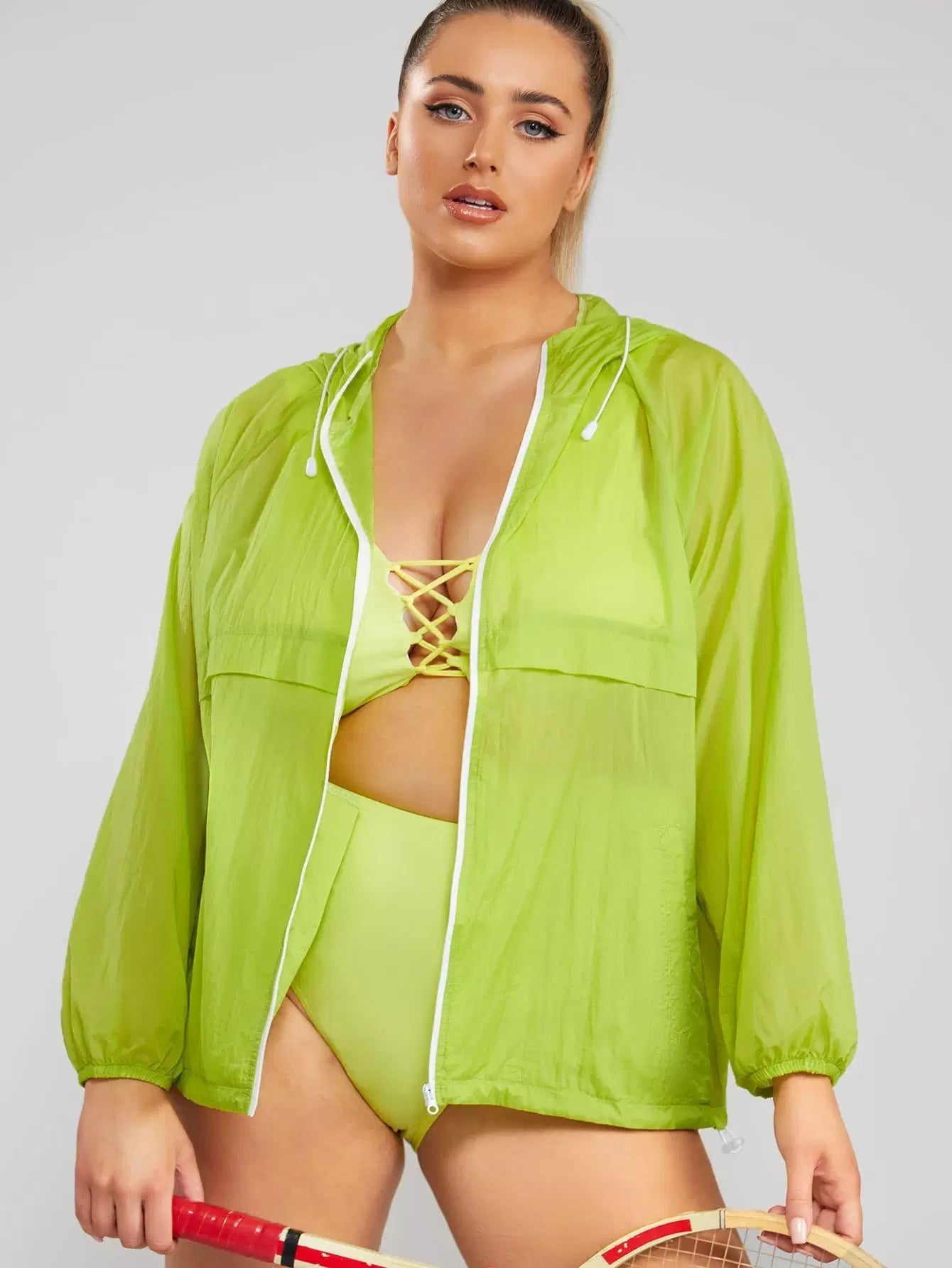 جاكيت رياضي بقلنسوة برباط سادة بغطاء رأس سادة بلاس