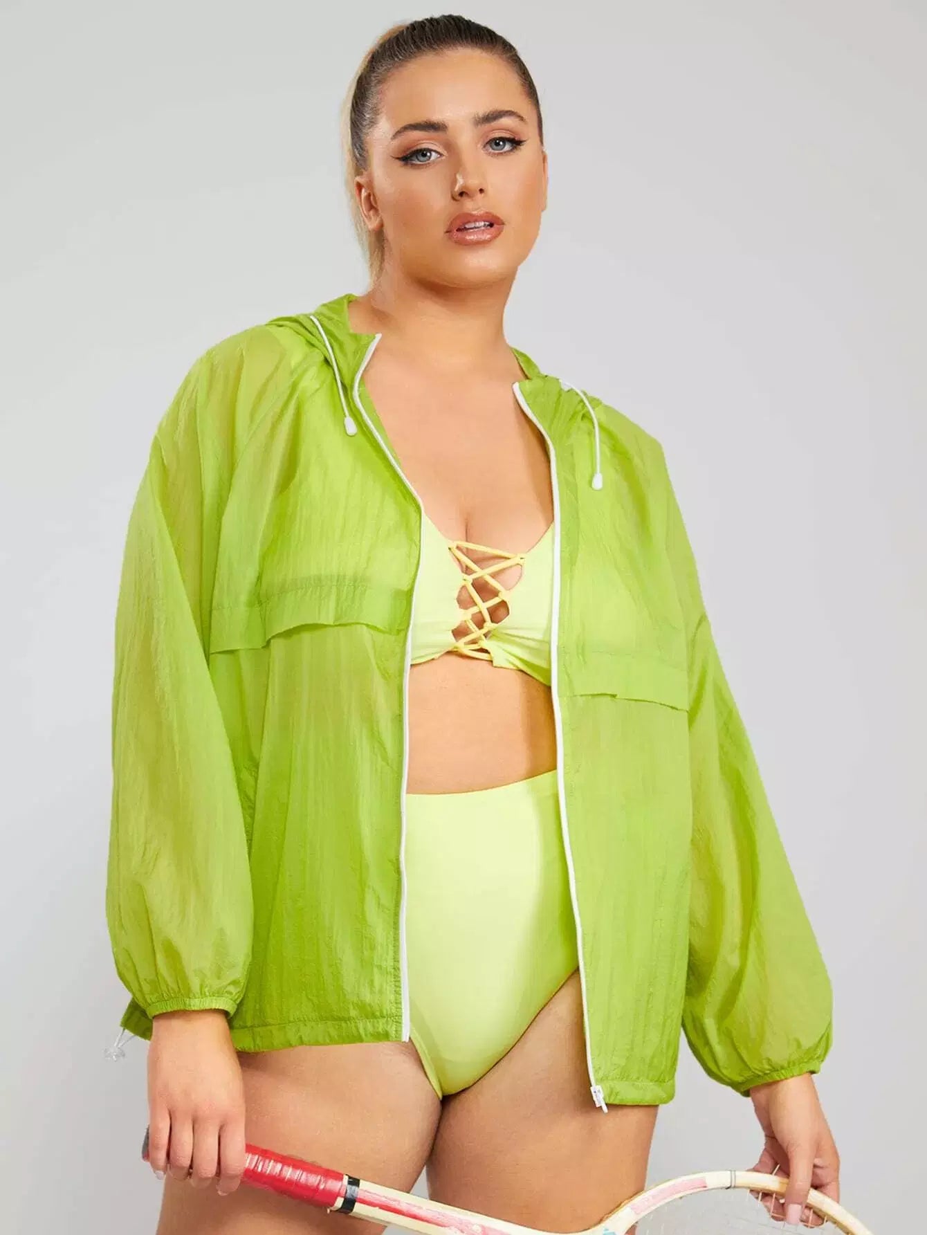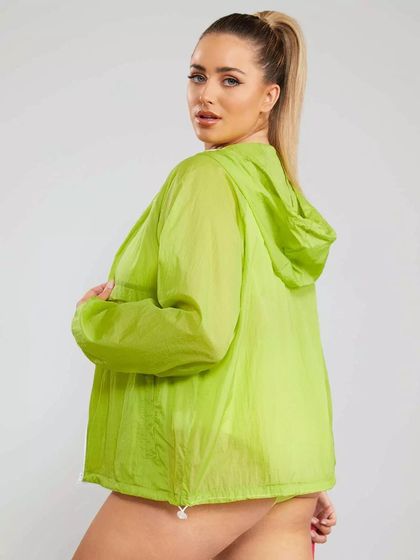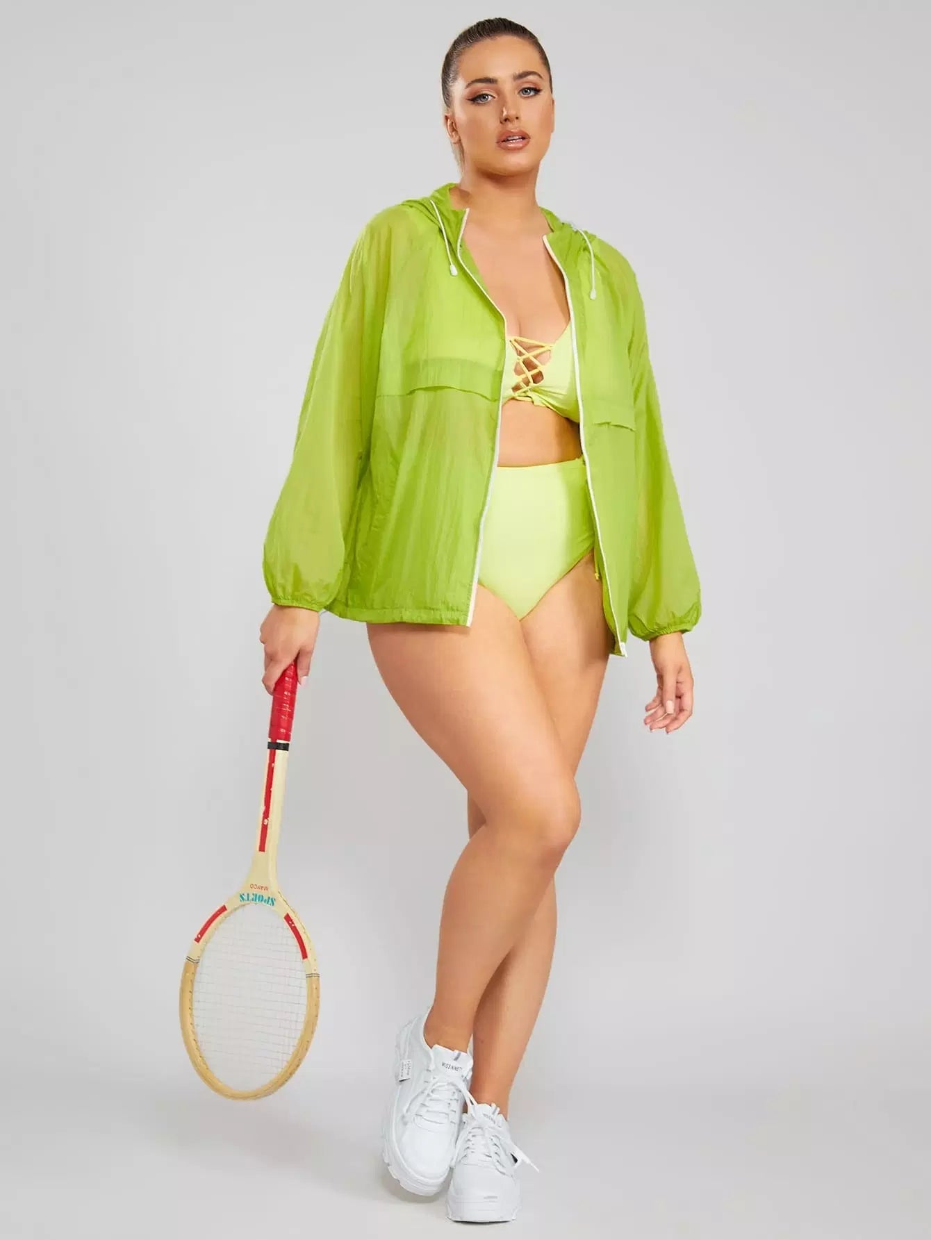 جاكيت رياضي بقلنسوة برباط سادة بغطاء رأس سادة بلاس