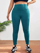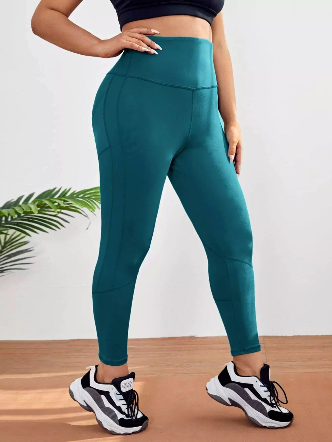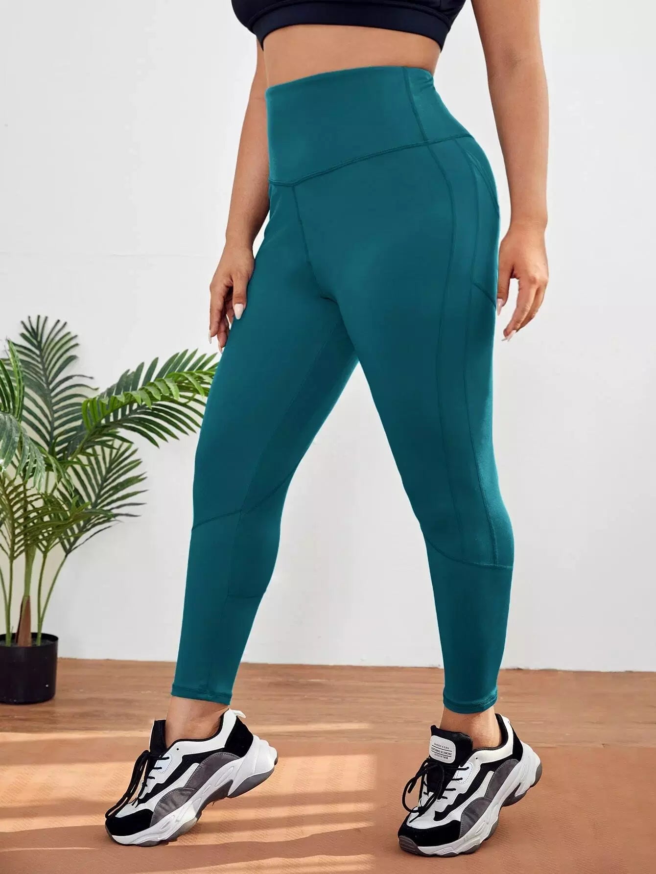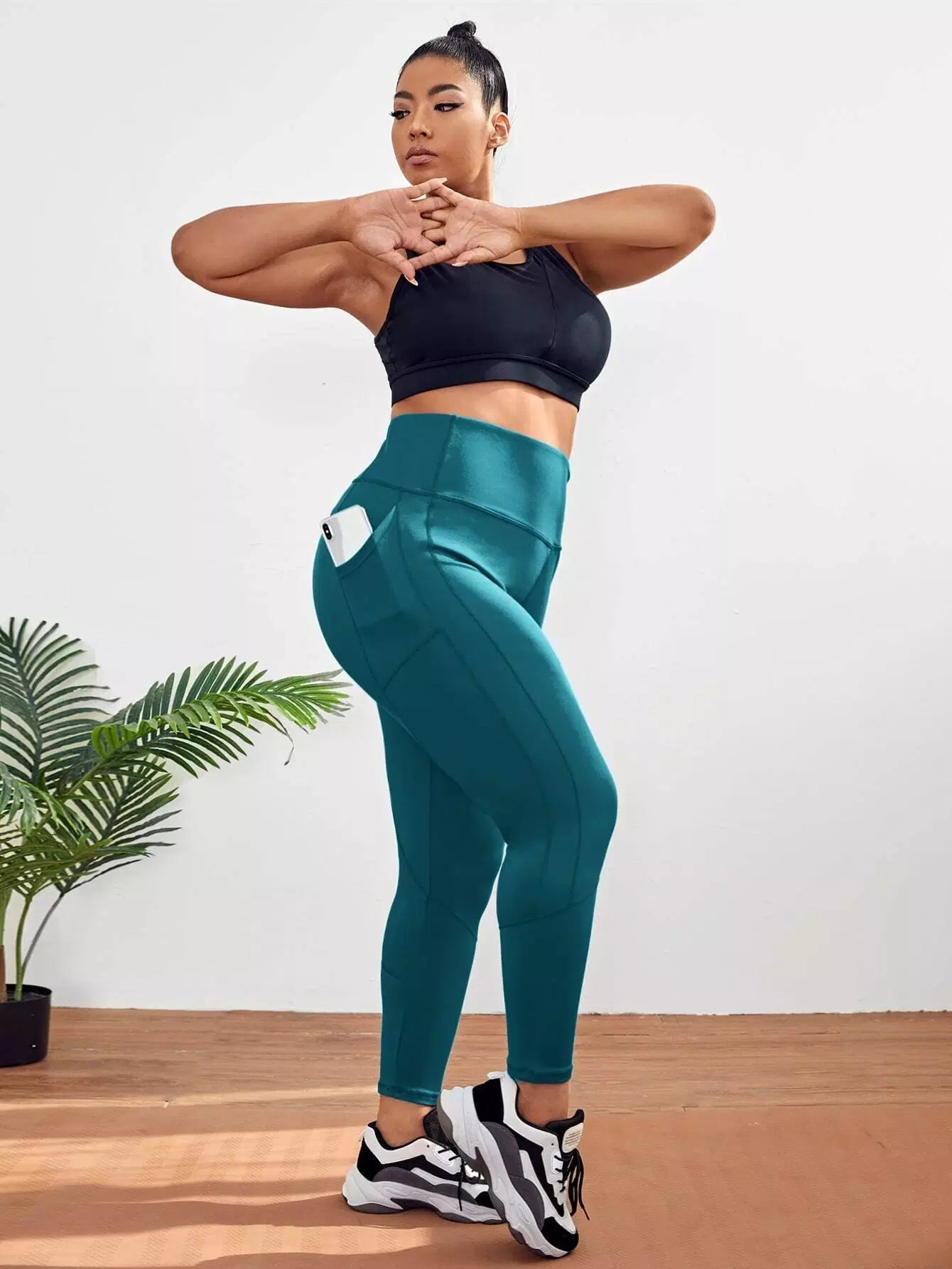 بنطلون ضيق رياضي عالي الخصر سادة بلاس مع جيب للهاتف