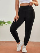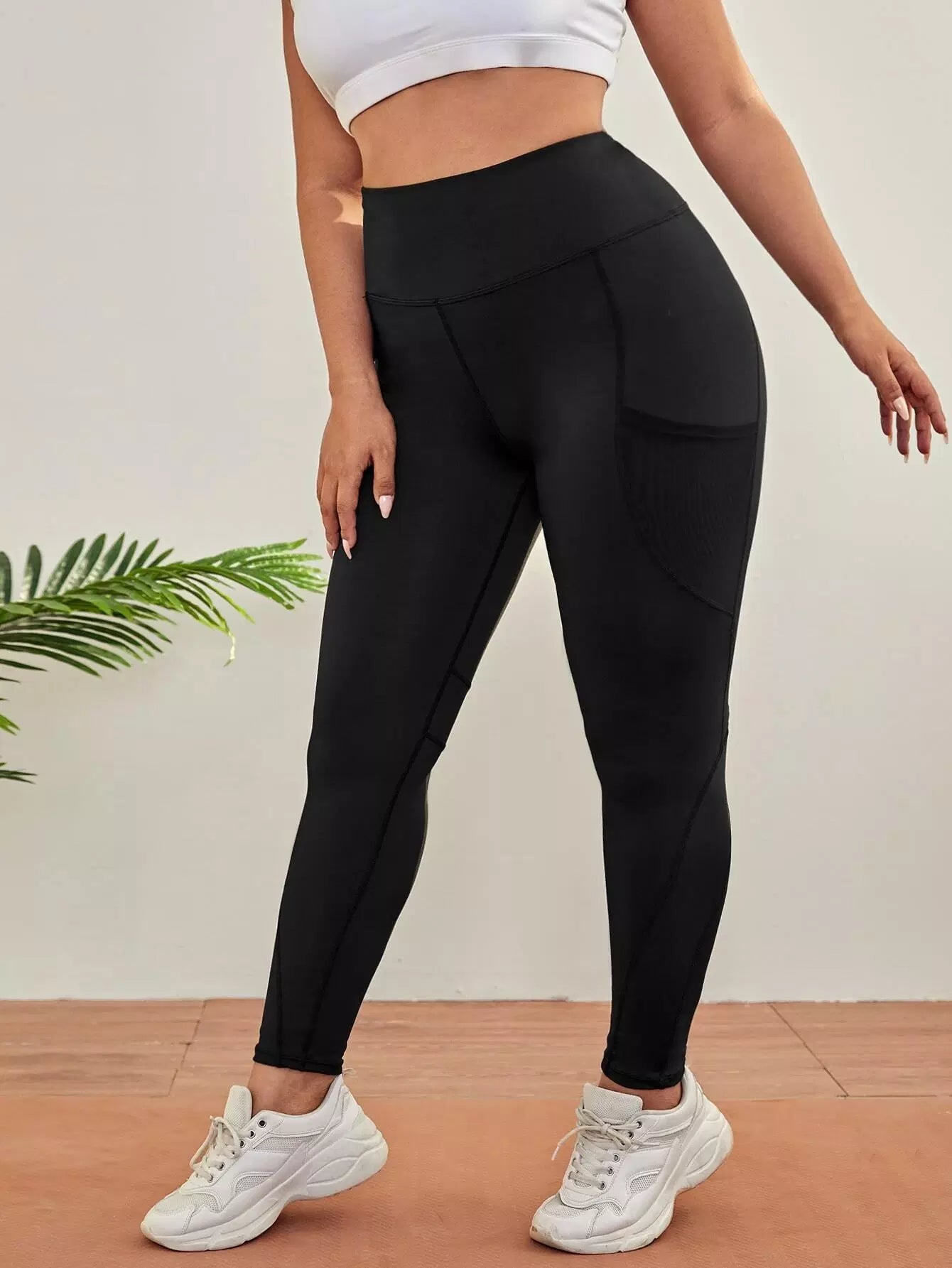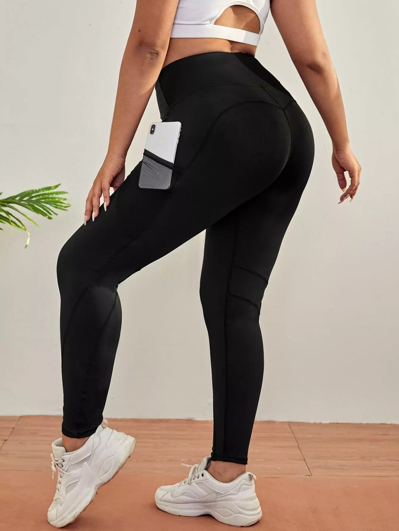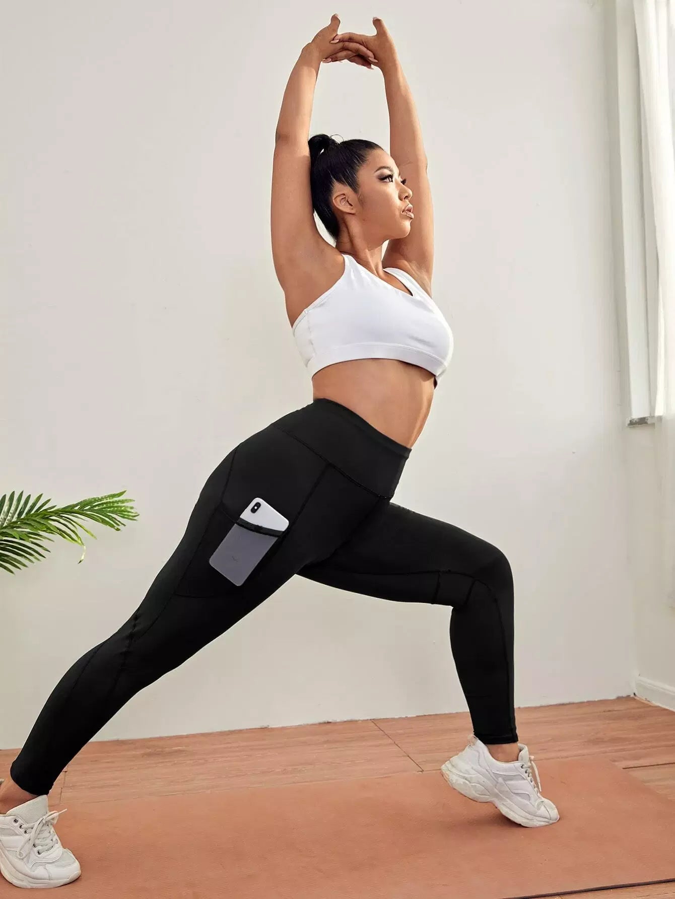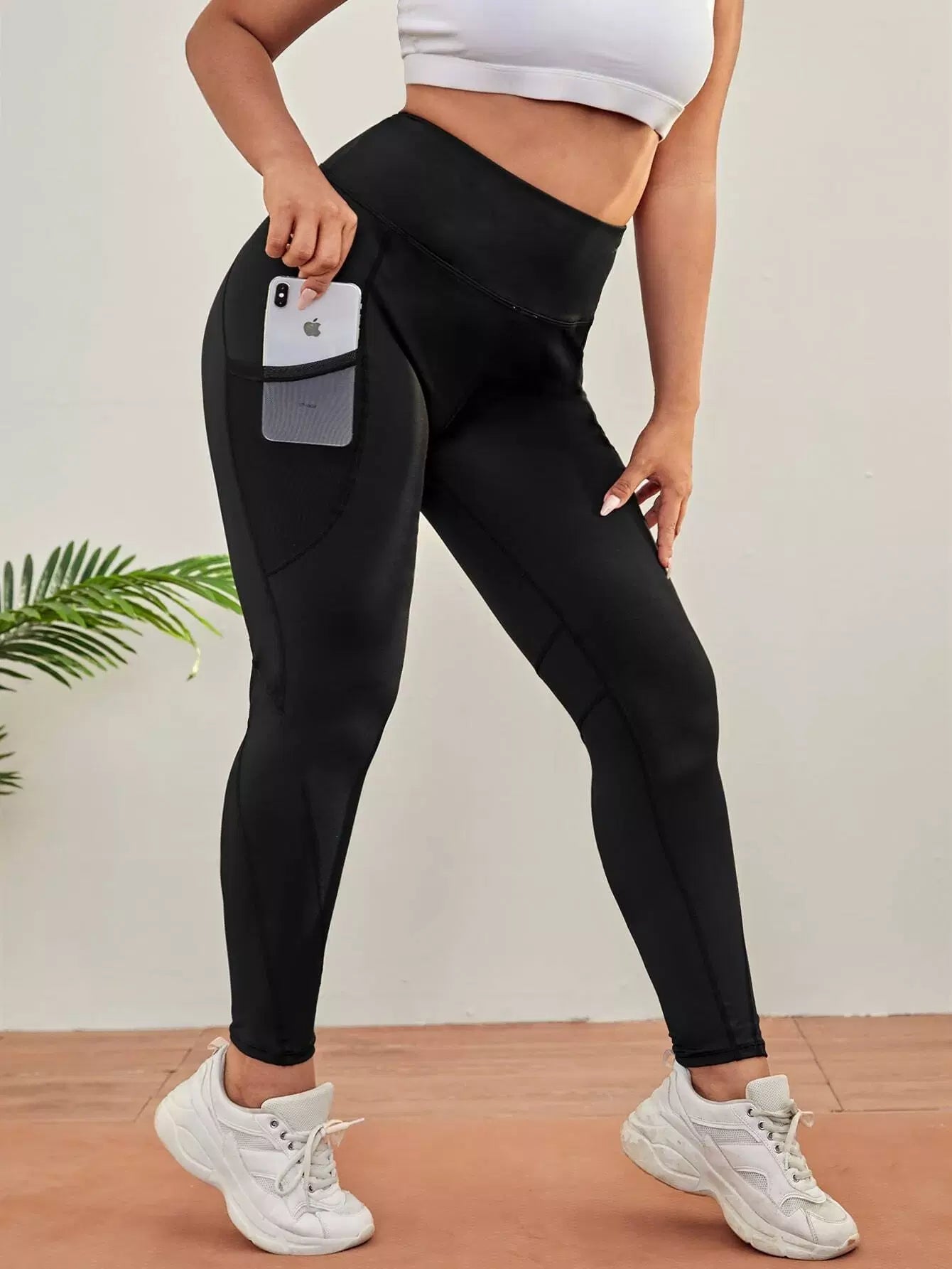 بنطلون ضيق رياضي بحزام خصر عريض بلس سادة مع جيب للهاتف