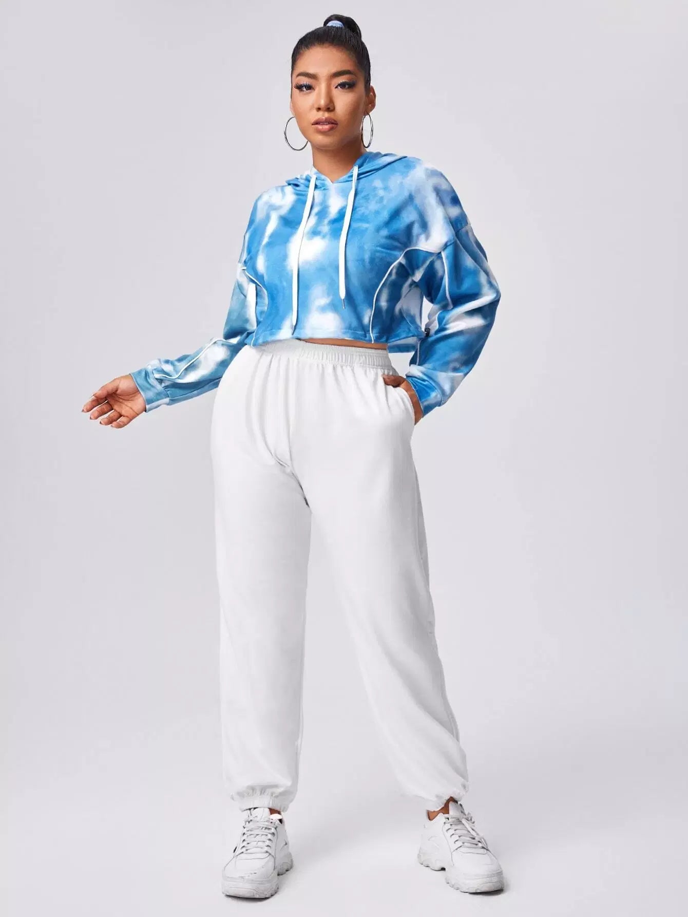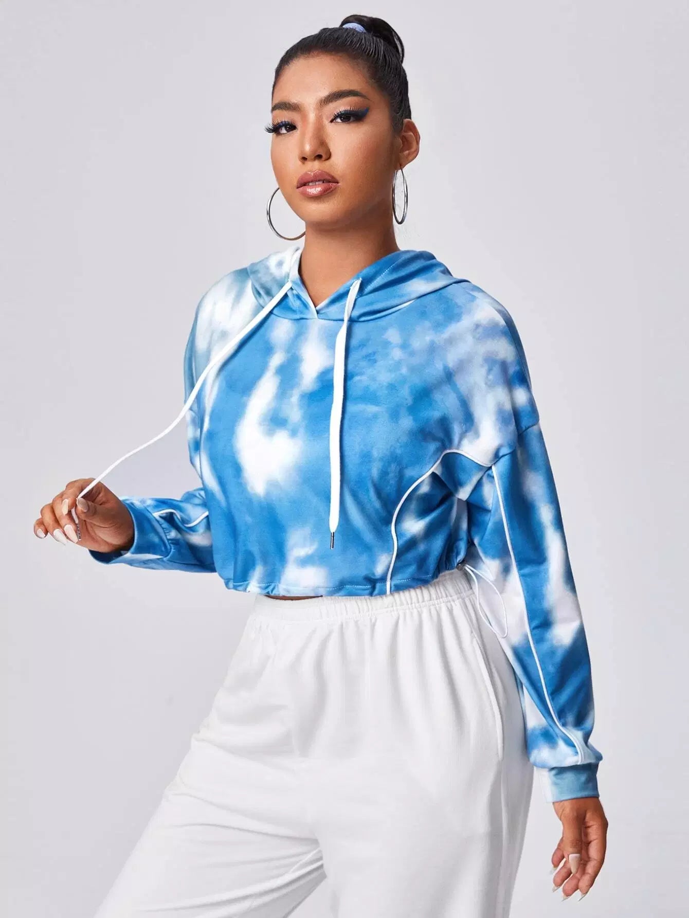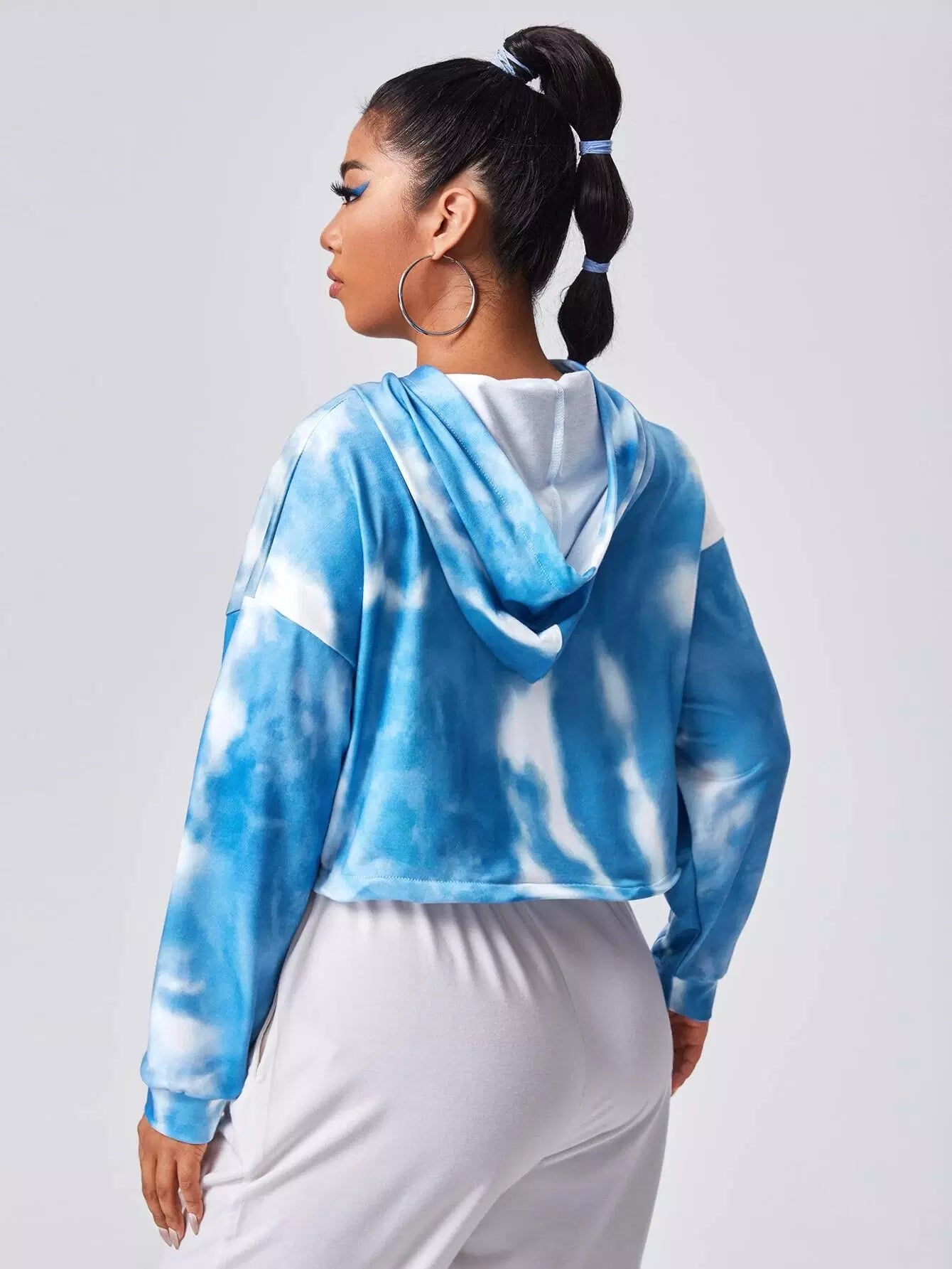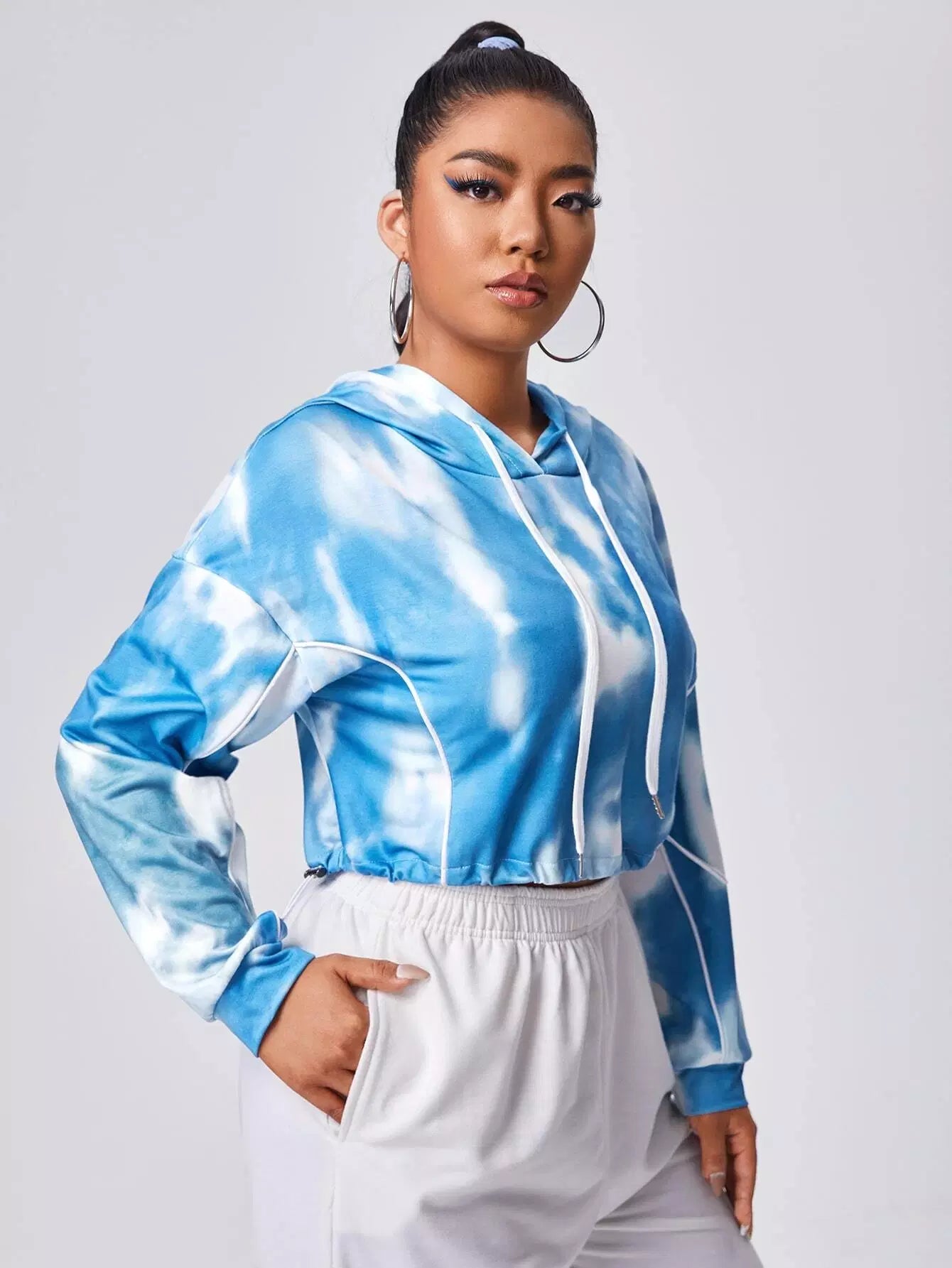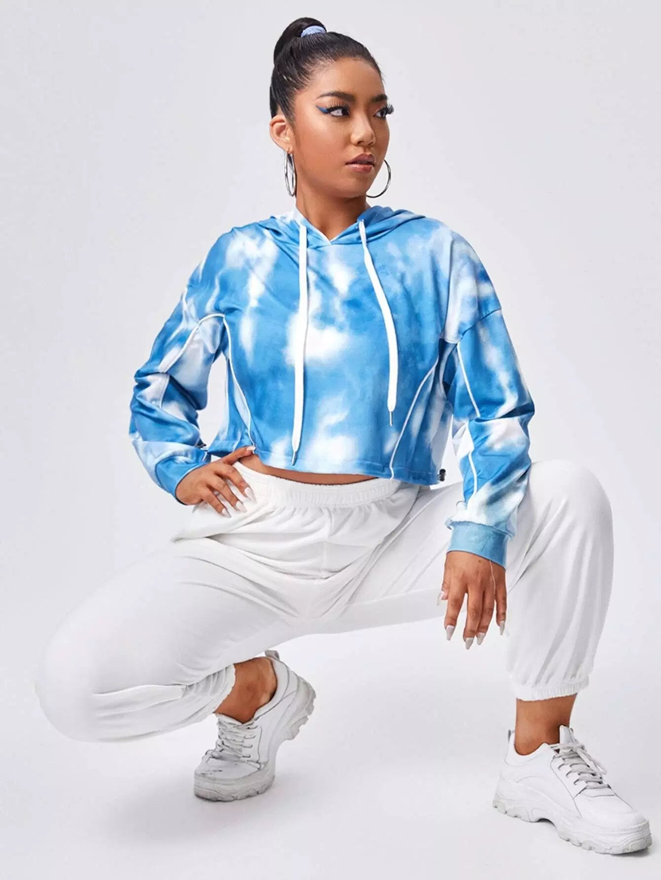 بلس هودي رياضي منسدل الكتف مطبوع عليه طبعة صبغة زائد