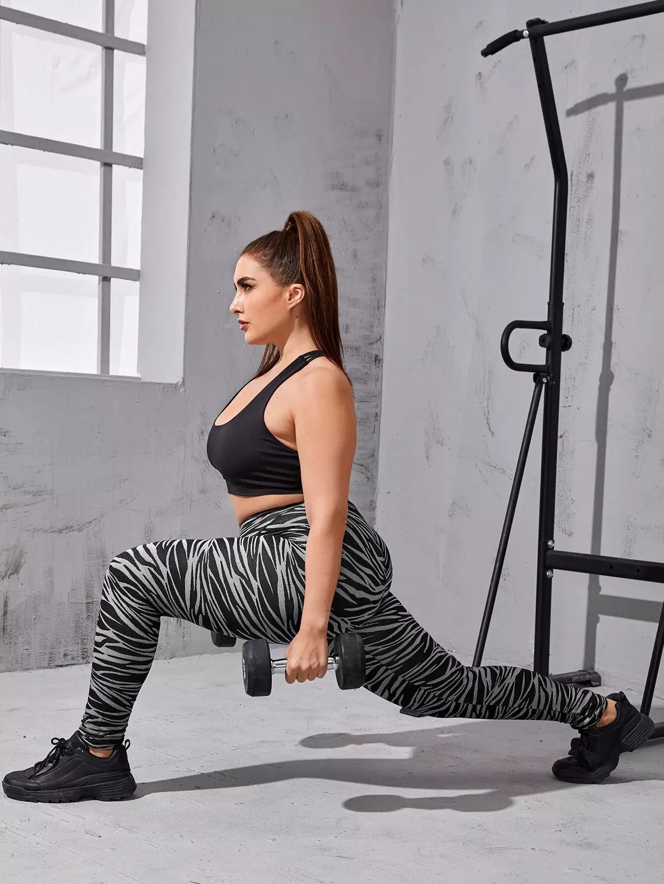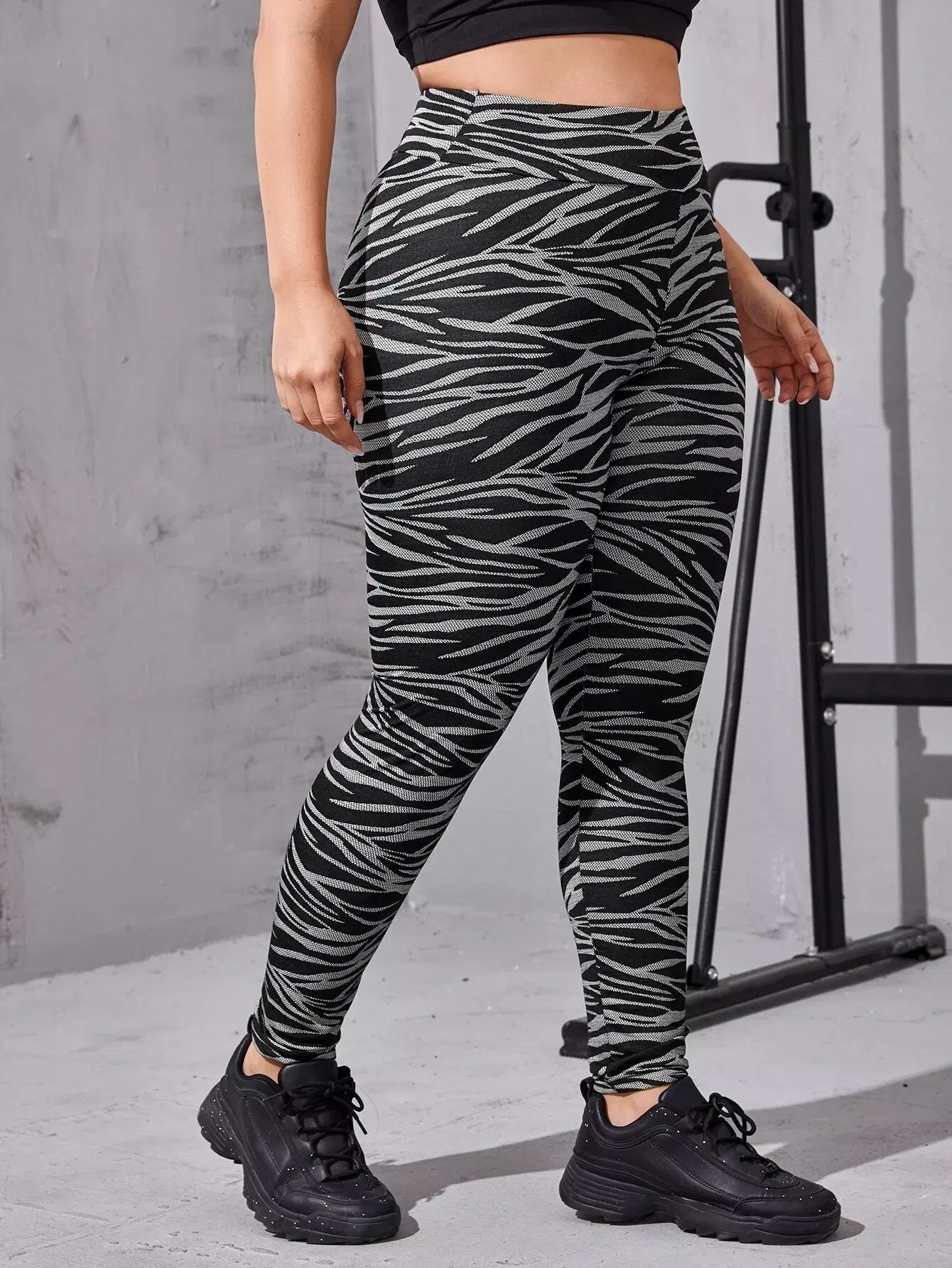 بنطلون ضيق رياضي مخطط بخط زيبرا بلس