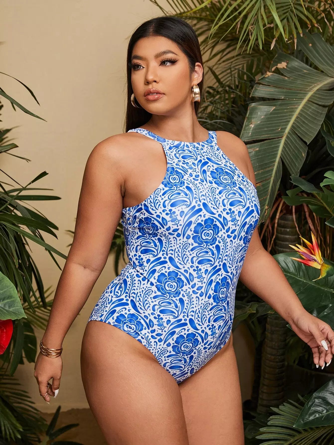 بدلة سباحة بقطعة واحدة مطبوع عليها زهور بالكامل