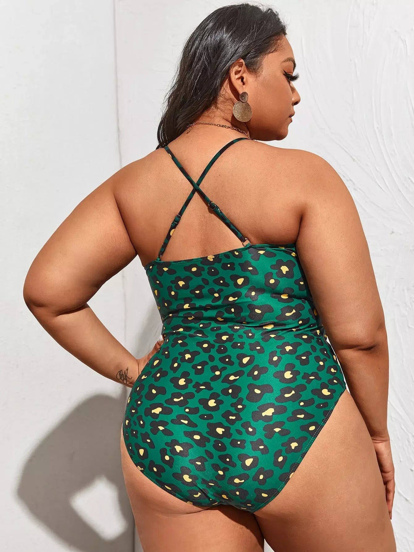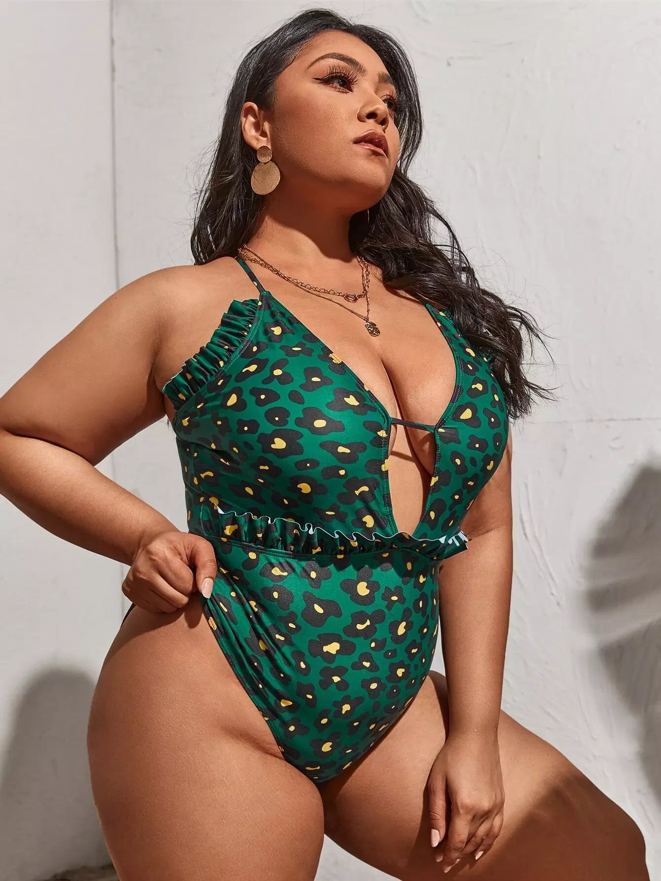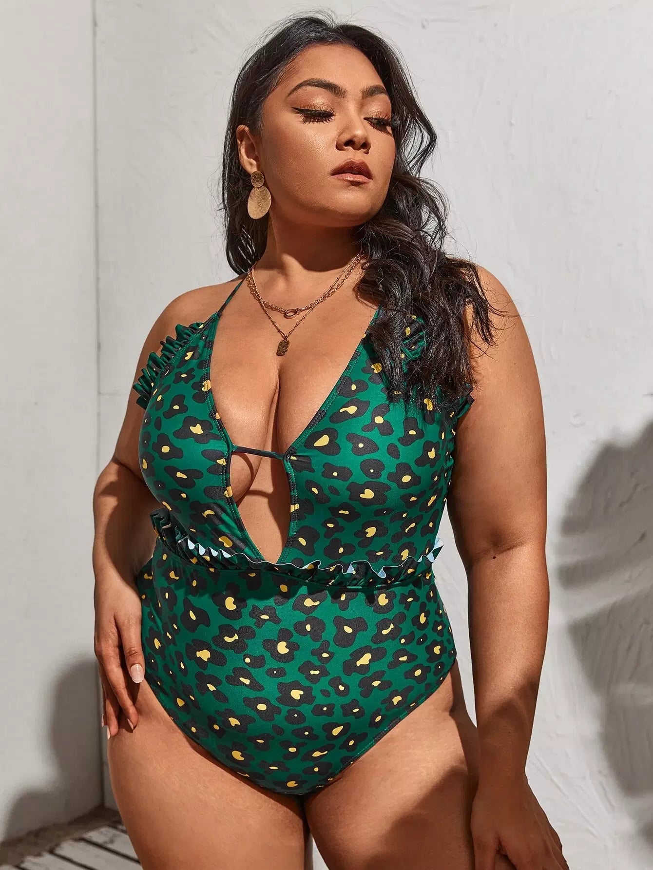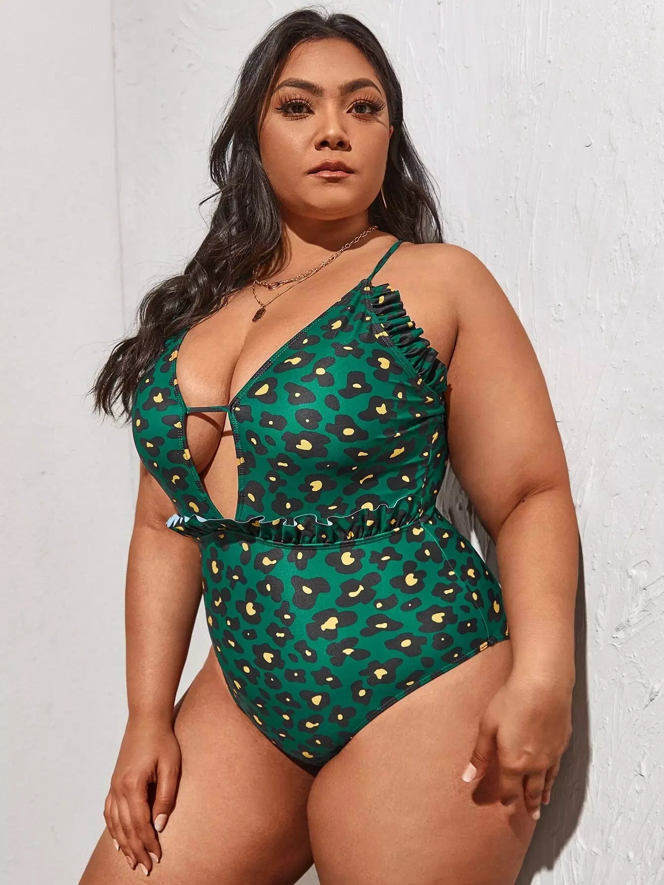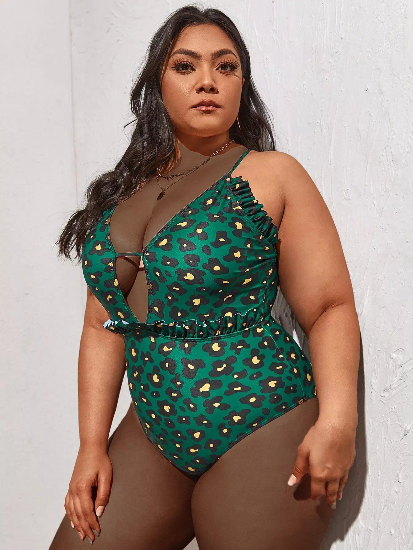 بدلة سباحة بقطعة واحدة كشكش جرافيك بلس أوفر جرافيك كشكش