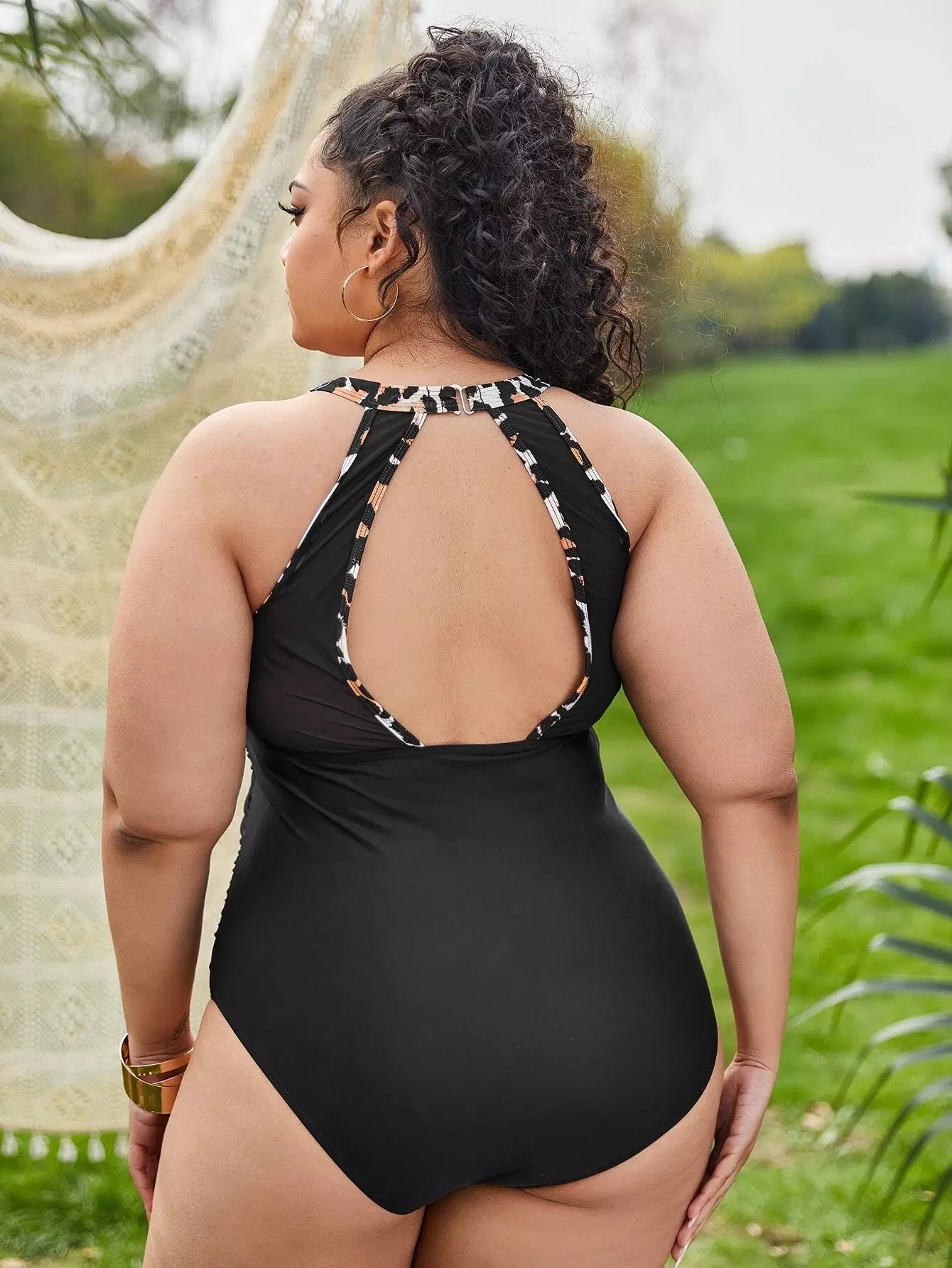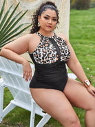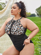 بدلة سباحة بقطعة واحدة مكشكشة بلون جلد النمر بلون مغاير